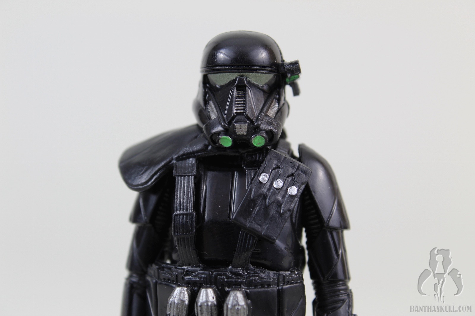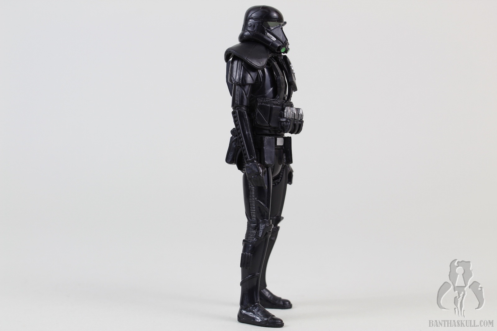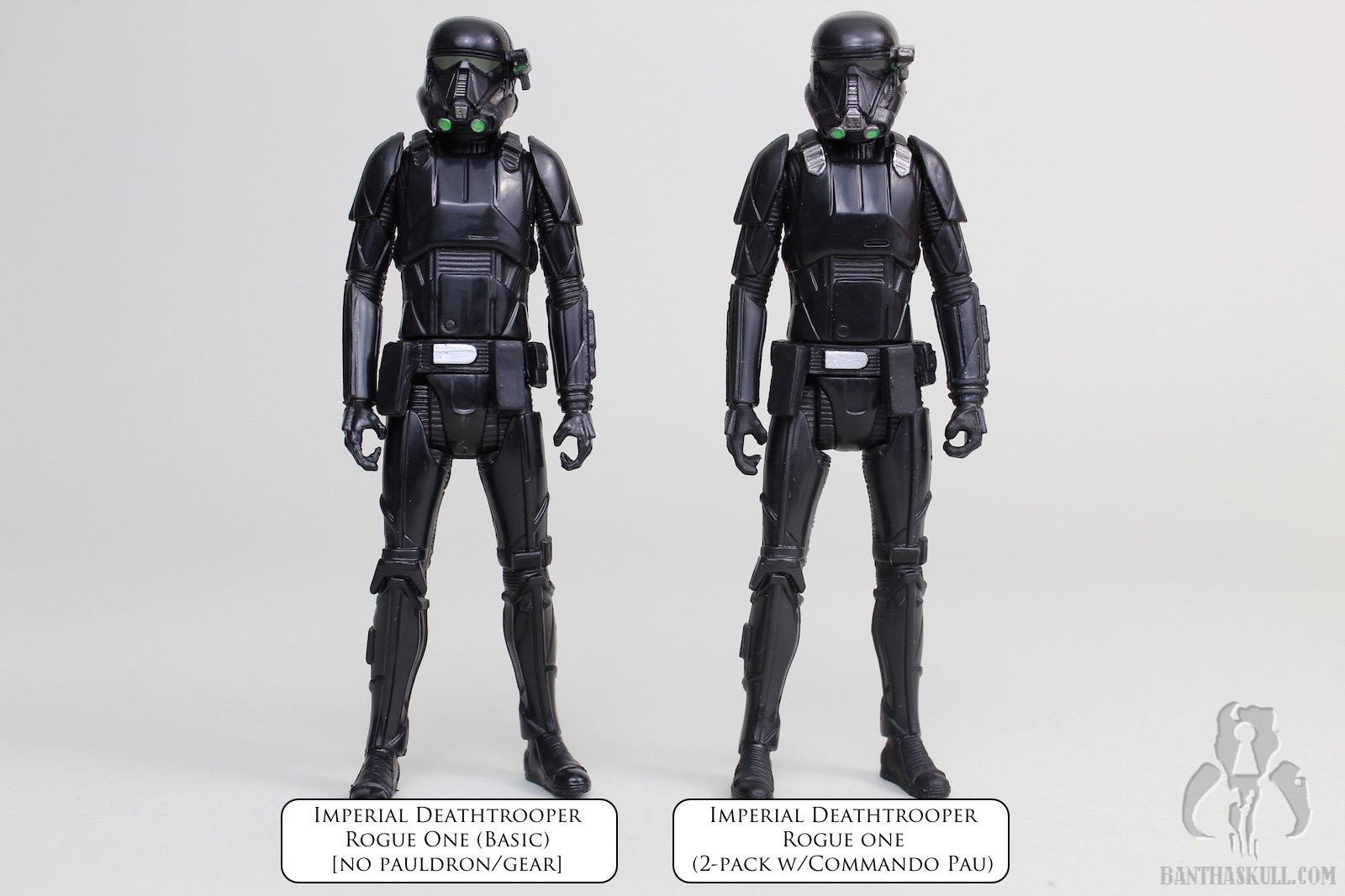One more Rogue One basic figure is immortalized in the Bantha Skull galleries. This one is the Imperial Death Trooper. Although not as hard to find some version of this character in the 3.75” scale as it has been to find the Scarif Stormtrooper / Shoretrooper, Deathtroopers could still have been a bit rare in some regions. I got this figure online. I only saw the SA version in the wild one time at Walmart, and purchased others at WM.com. I did manage to pick up the 2-pack with Commando Pau at retail.