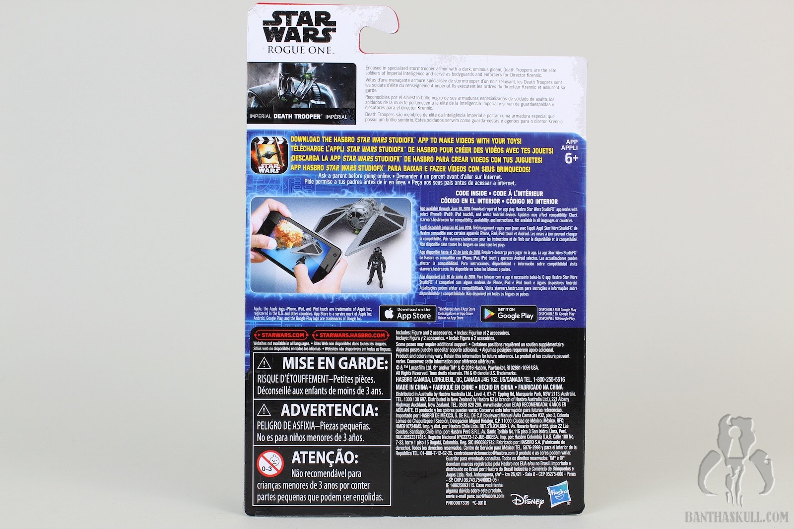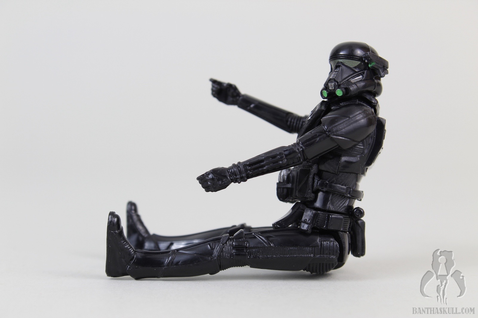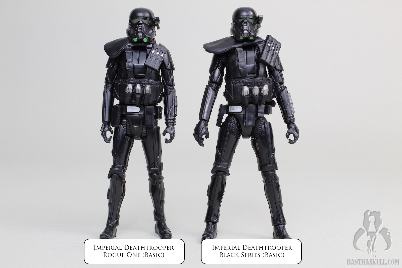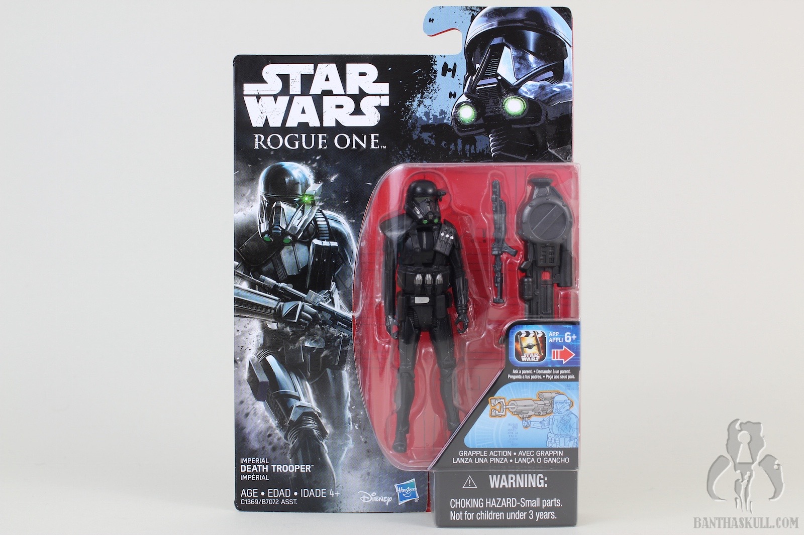 One more Rogue One basic figure is immortalized in the Bantha Skull galleries. This one is the Imperial Death Trooper. Although not as hard to find some version of this character in the 3.75” scale as it has been to find the Scarif Stormtrooper / Shoretrooper, Deathtroopers could still have been a bit rare in some regions. I got this figure online. I only saw the SA version in the wild one time at Walmart, and purchased others at WM.com. I did manage to pick up the 2-pack with Commando Pau at retail.