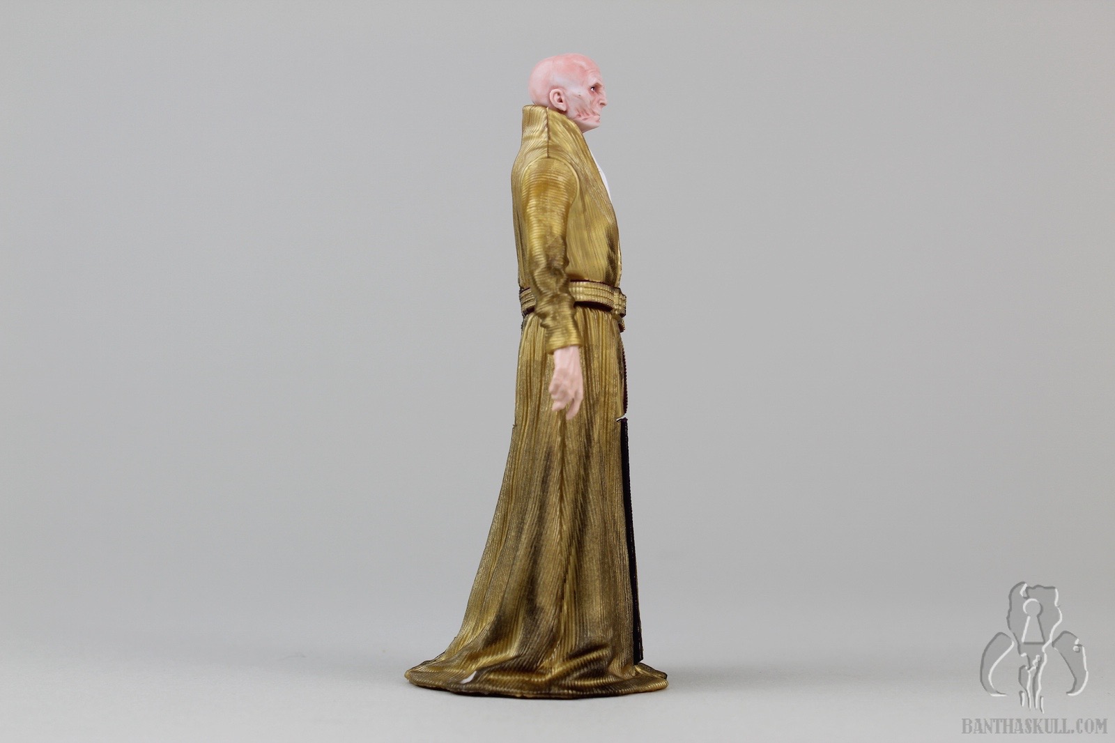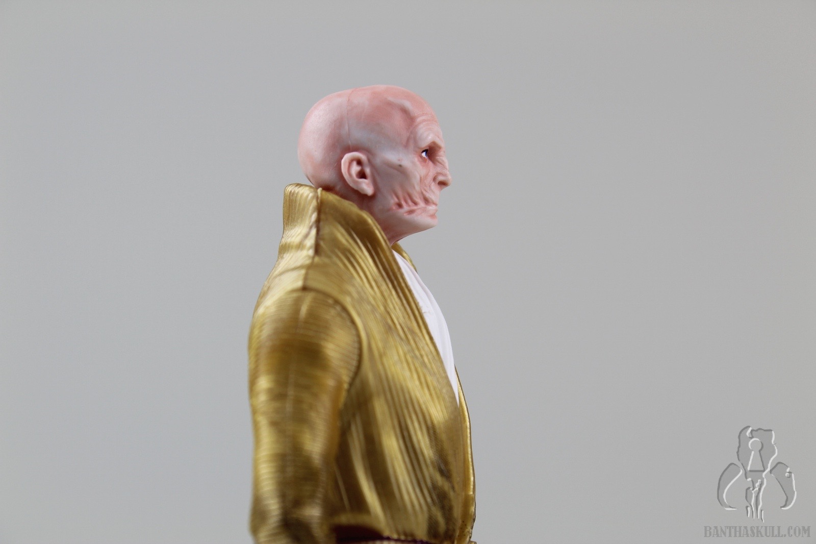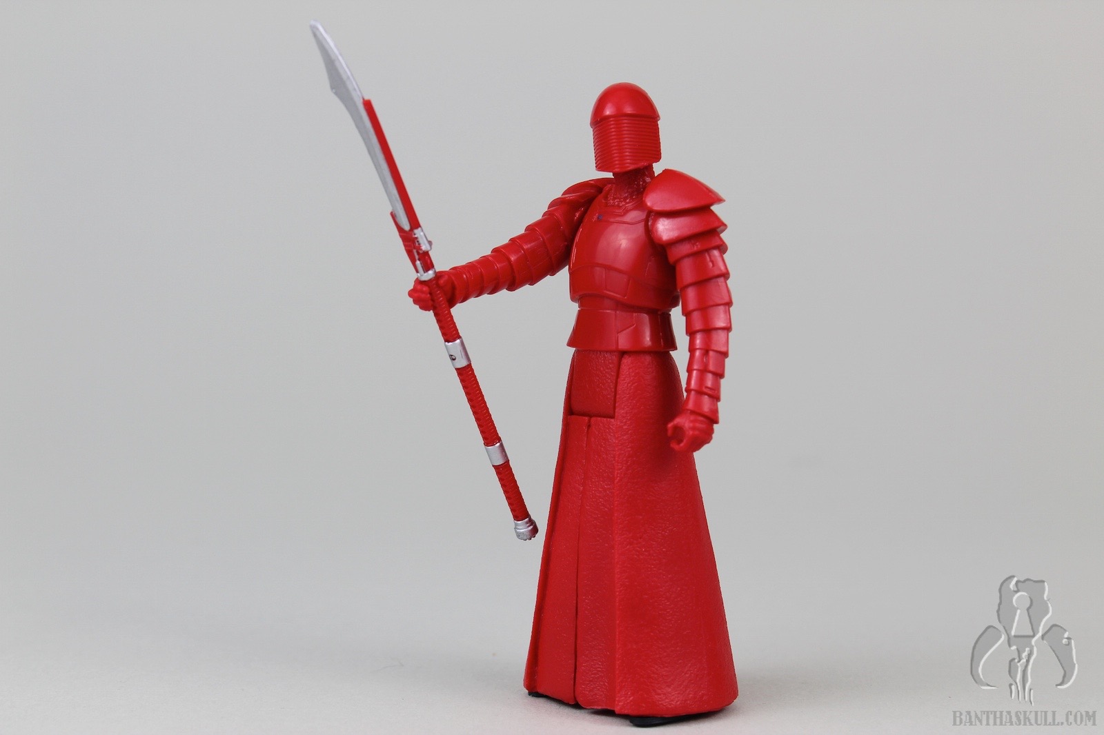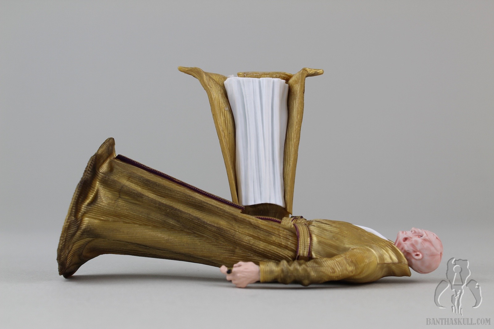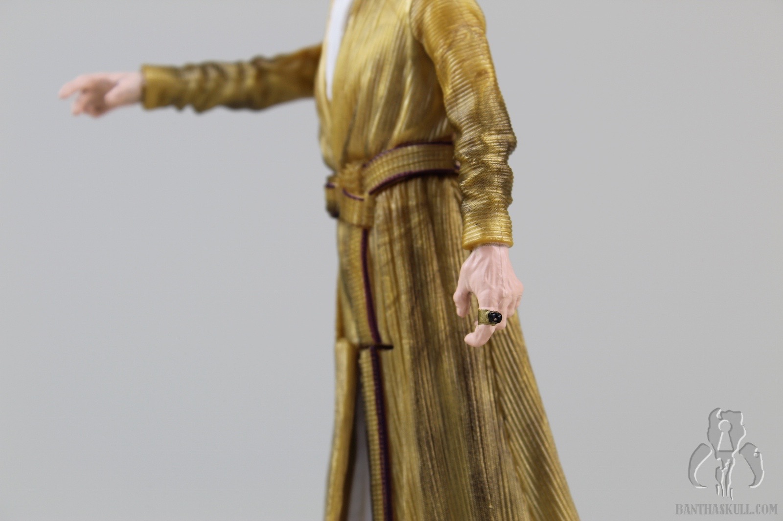The set comes with 2 5POA figures. One of 2 types of Praetorian guards currently available at launch, with the other being in the Rey 2-pack. The figure looks pretty good, stands with sturdiness, and holds his weapon tightly. It has a ball jointed head, but otherwise, has limited poseability. Force Link reveals fighting sounds. Snoke is very tall. The face sculpt is pretty impressive. Again, the 5POA limits the figure’s usefulness, and it gets low marks because he looks ridiculous sitting on his throne. Maybe he needs an ottoman. One thing that stands out is his huge black ring. We’ll see what that’s all about soon enough. The Activator reveals many phrases and sounds.