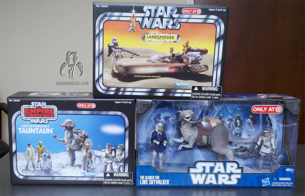 So one of the drags of being a collector in the Northeast (Massachusetts) is that we tend to be among the last region to get new items. But one of the perks is that I can sit on my butt and wait for the boys at JediTempleArchives and Yakface to tip me off when things start to hit, so I don’t waste a lot of time looking. Thanks to their tips, I checked my local Target at lunch today and voila. Two very helpful associates pulled these from the back room for me. Photo archive updates to follow soon.