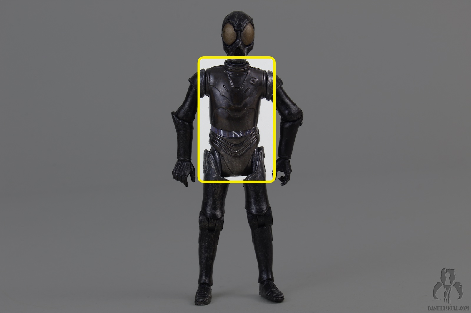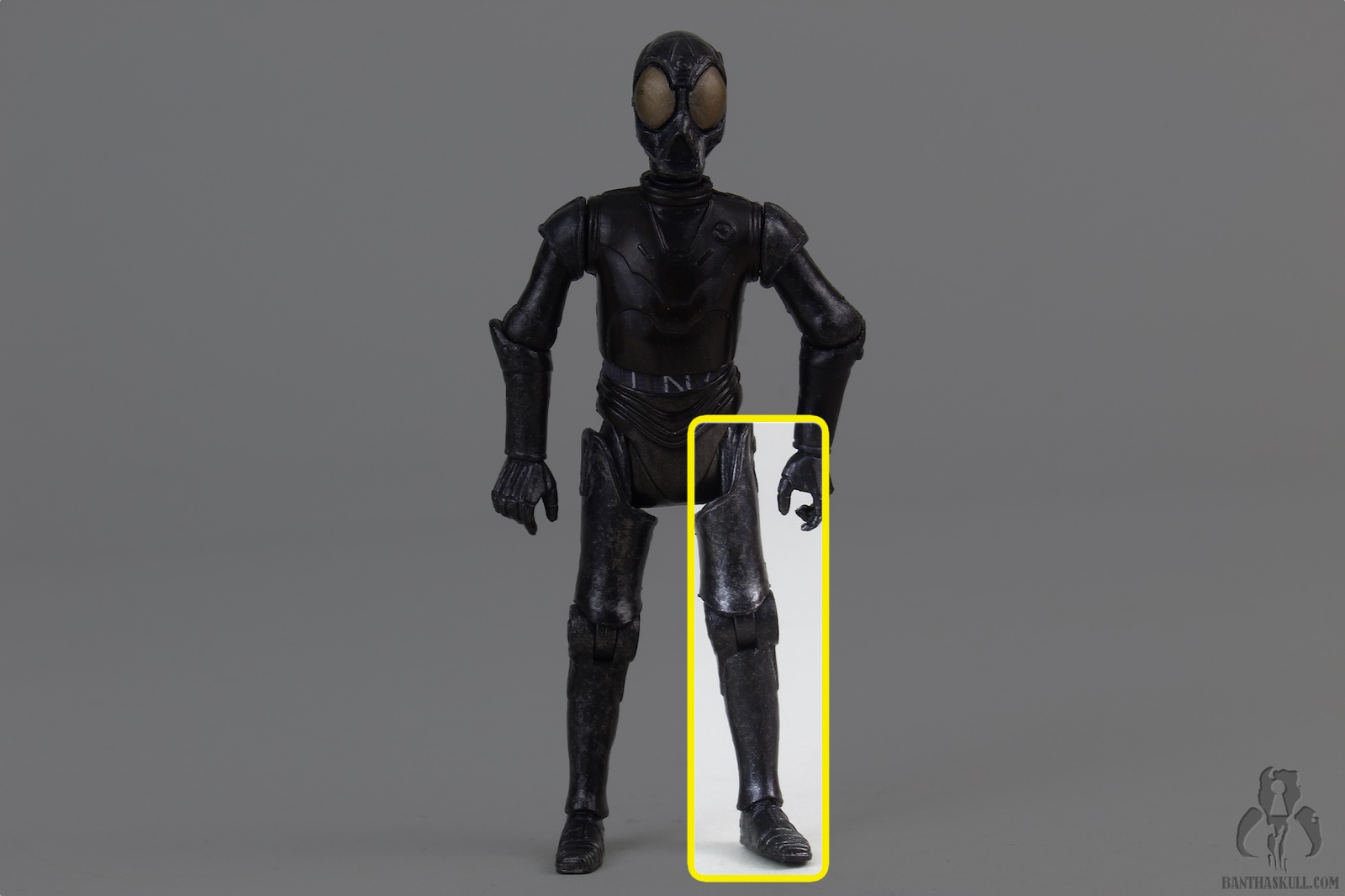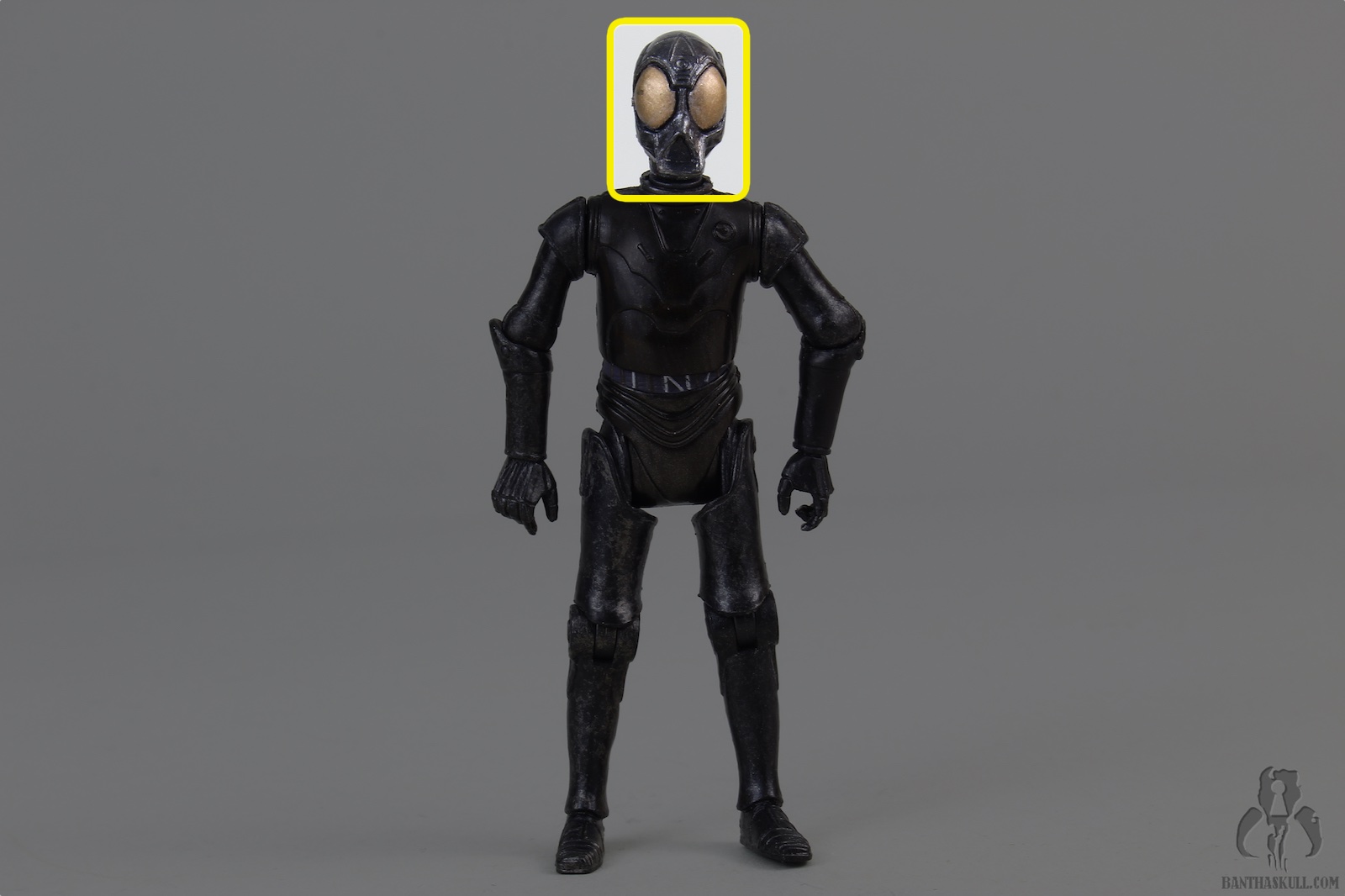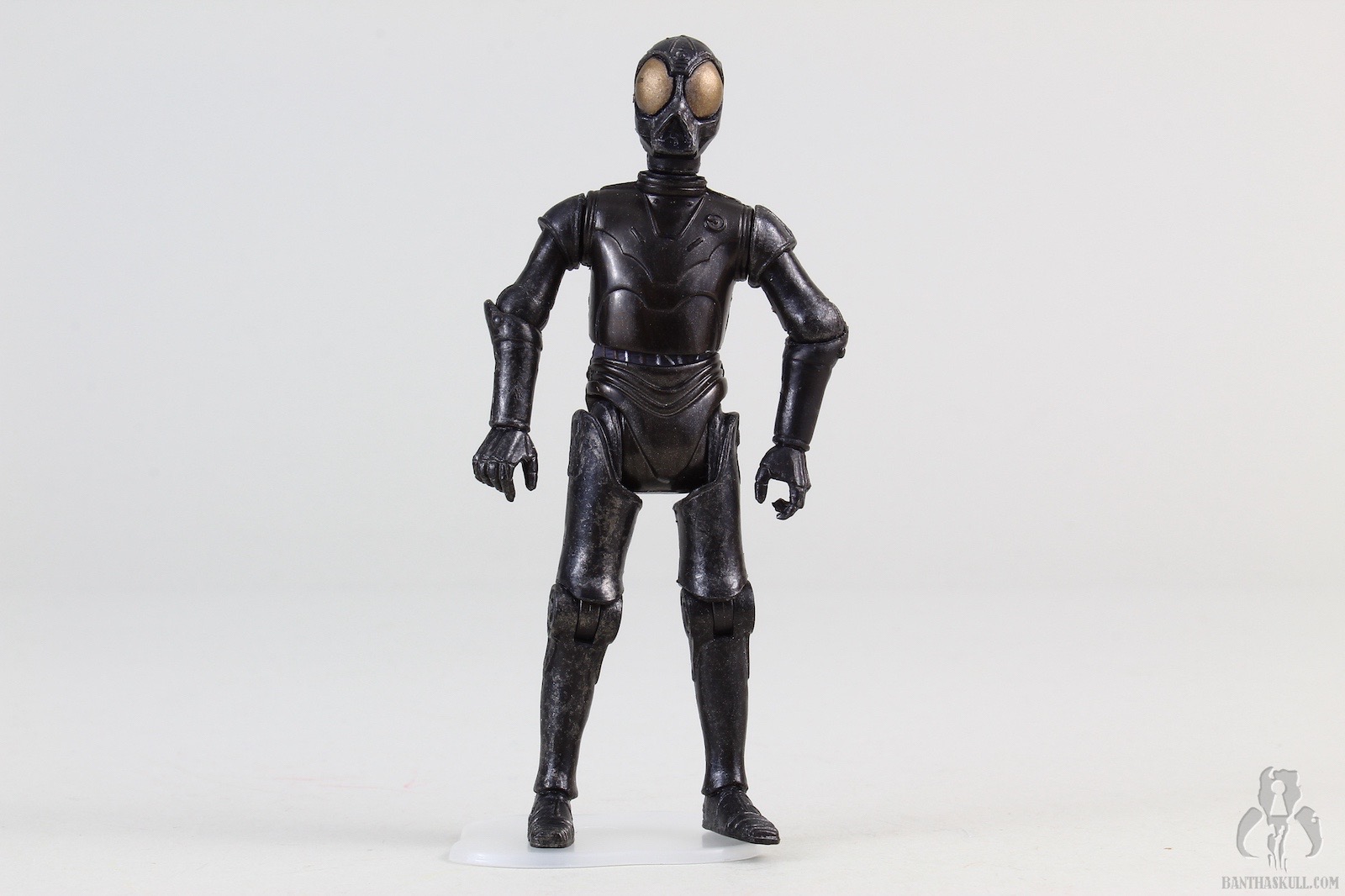 This droid is the true Death Star Droid. It was first offered as a POTF2 Fan Club exclusive, in standard 5POA. But the figure still looked pretty cool because it was vac-metallized. This build-a-droid figure Is painted with a somewhat dulled finish, but still looks great. It’s also nicely articulated, although it lacks ankles. This, as usual, negates, for the the most part, the existing lower body articulation. Unless you’re looking for a figure to sit in a chair, IT NEEDS ANKLES. I don’t understand why collector’s ever say that ankles aren’t necessary. YOU CAN’T POSE THE FIGURE UNLESS IT HAS HIPS, KNEES, AND ANKLES. To be missing any of those articulation points makes it useless.