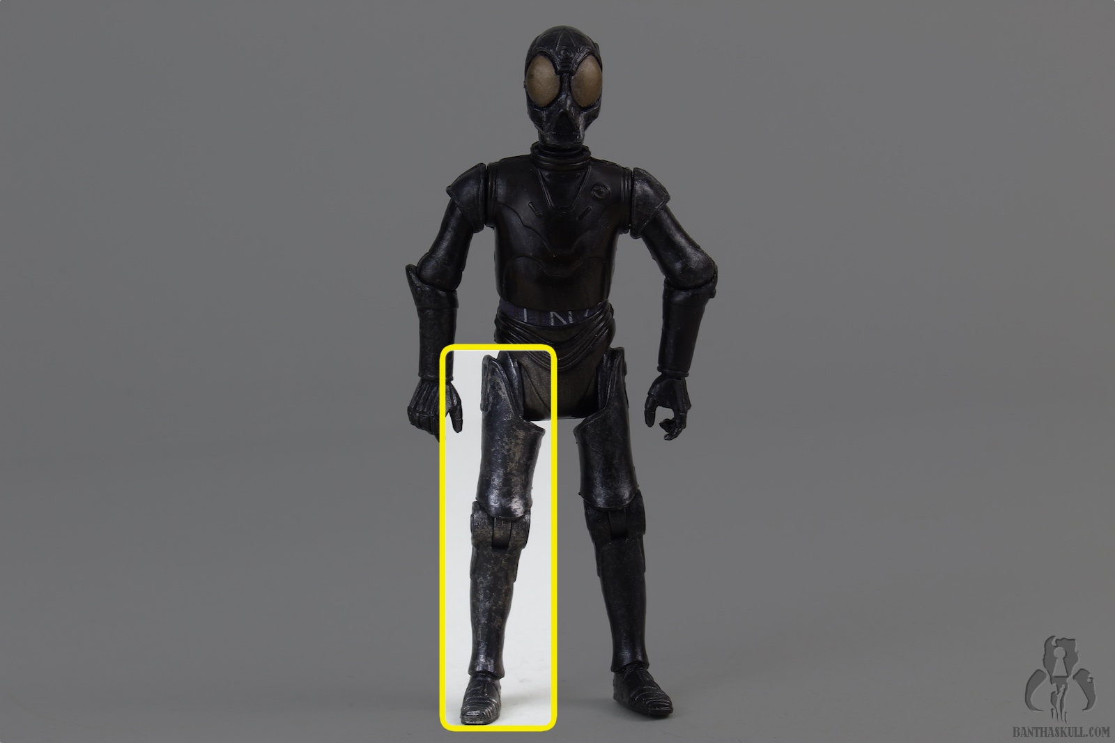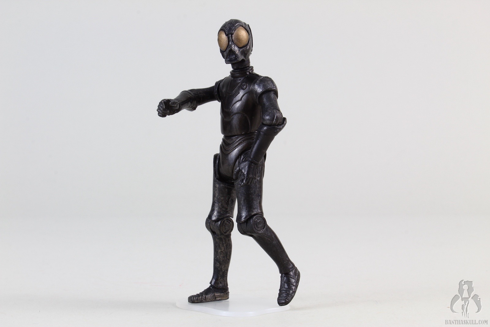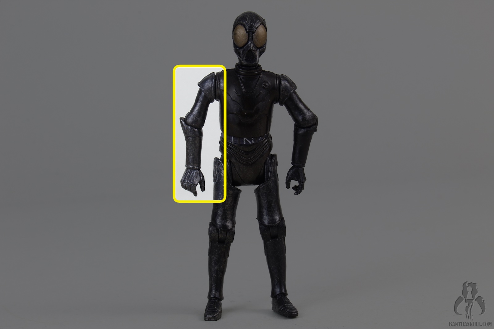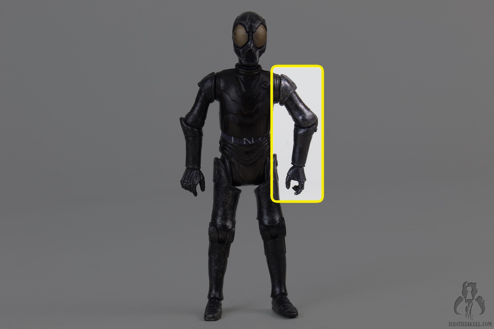 This droid is the true Death Star Droid. It was first offered as a POTF2 Fan Club exclusive, in standard 5POA. But the figure still looked pretty cool because it was vac-metallized. This build-a-droid figure Is painted with a somewhat dulled finish, but still looks great. It’s also nicely articulated, although it lacks ankles. This, as usual, negates, for the the most part, the existing lower body articulation. Unless you’re looking for a figure to sit in a chair, IT NEEDS ANKLES. I don’t understand why collector’s ever say that ankles aren’t necessary. YOU CAN’T POSE THE FIGURE UNLESS IT HAS HIPS, KNEES, AND ANKLES. To be missing any of those articulation points makes it useless.