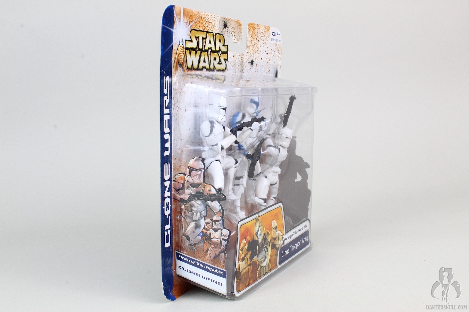 In order to help collectors quickly build their Clone Wars armies, Hasbro introduced a new-ish thing in the 2003 Clone Wars sub line of the blue Saga line. We got a series of under-articulated, but fairly well sculpted, “troopers” to help expand our display. Unless you were an army builder with money to burn, a lot of collectors were usually limited to one or maybe two of a particular basic troop figure. Basics were $5 at the time, but these 3 packs were $10.