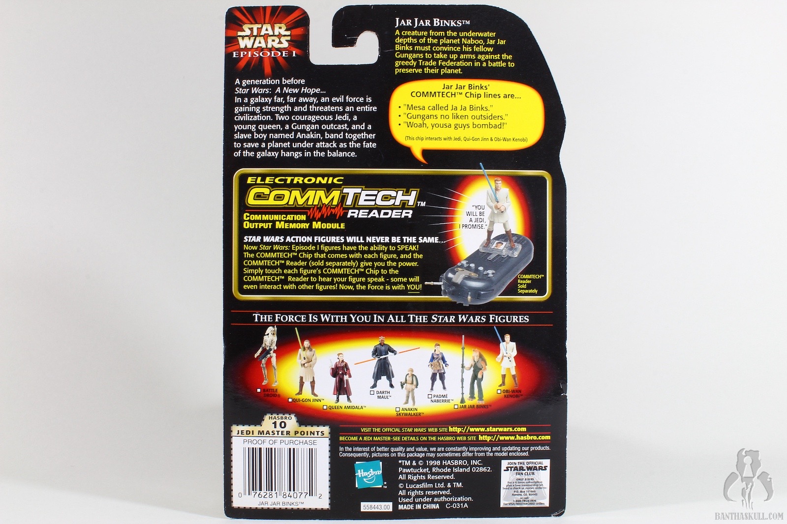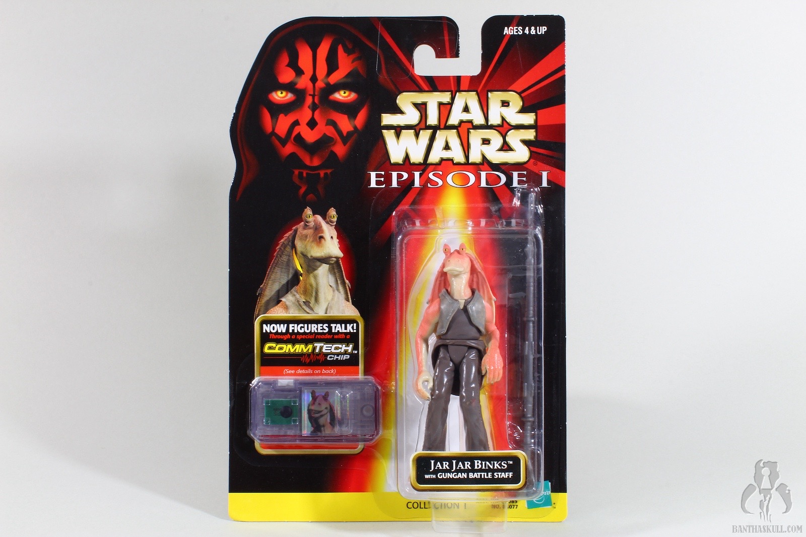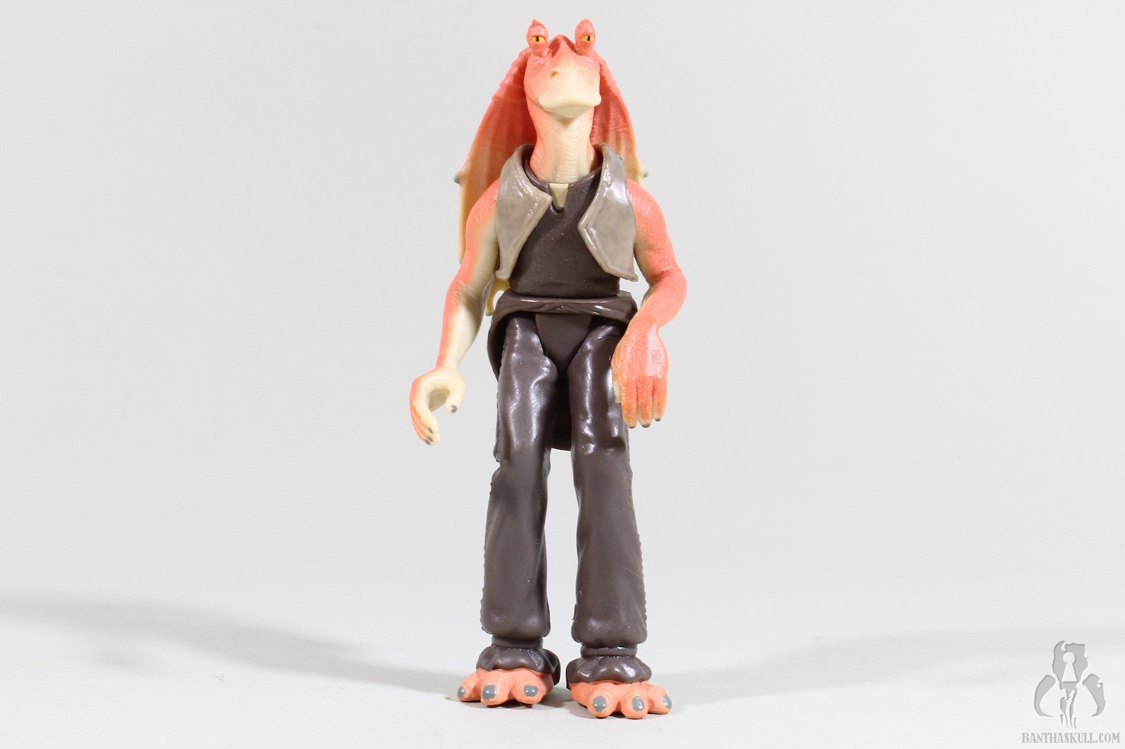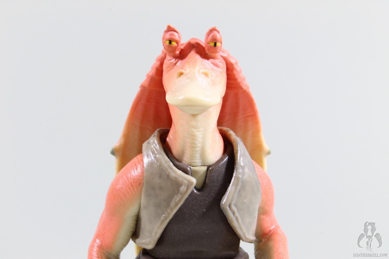 There were two versions of him released in the main line (this being the first), along with 3 other figures included in various formats (creature pack-in, cinema scene, deluxe accessory pack-in.). All of them are essentially the same, since he never changed outfits. The only differences are slight variations of the sculpt to provide some more scene specific moments (swimming, running, etc.). But this figure was the OG Jar Jar Binks, and at the time of launch, people scooped him up eagerly.