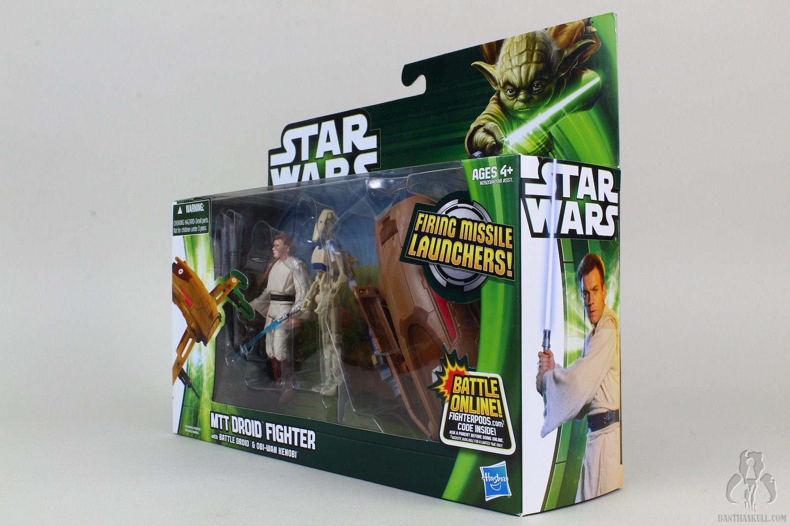 The ship was never seen in The Phantom Menace, but is designed to have the same aesthetics as the huge MTT (Multi-Troop Transport), and interacts nicely with it. I’m always a huge fan when different toys and figures are specifically meant to connect or join together. A large compartment, or hanger, exists in the back of the MTT, and this mini-rig fits inside. The opening cover also acts as a launcher, so that the fighter can join the battle. The ship features pop out wings, spring loaded cannons that rotate, and a canopy that opens to reveal a cockpit for a droid pilot.