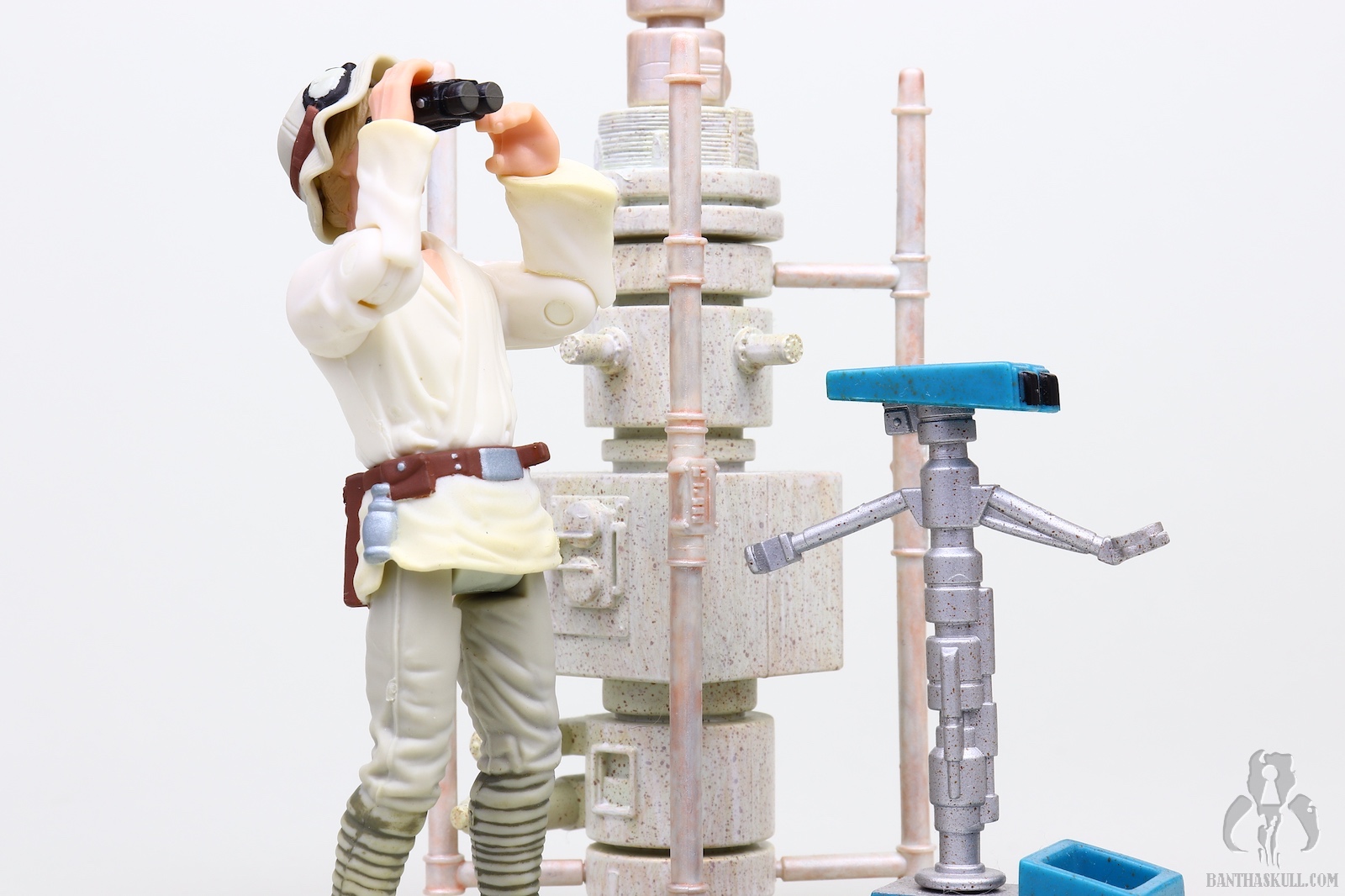In the Star Wars universe, one’s social standing was directly proportional to the stiffness of one’s hat. Luke’s floppy hat was the floppiest in all the land. It let you know he was the lowliest of peasants. Of course not a word of that is true, but when this wave was announced, the “floppy hat” was the selling point of the figure. Again, it was very difficult to take the announcement seriously. At the time, I couldn’t even fathom what this hat was. What I didn’t know, or had at least temporarily forgotten in 1998, was that Luke wore a Gilligan hat during the Tatooine deleted scenes. So in essence, this is the first deleted scene figure in the history of the line. It appears this figure is purpose built to recreate the scene where Luke is watching the space battle from the opening shot of the movie: