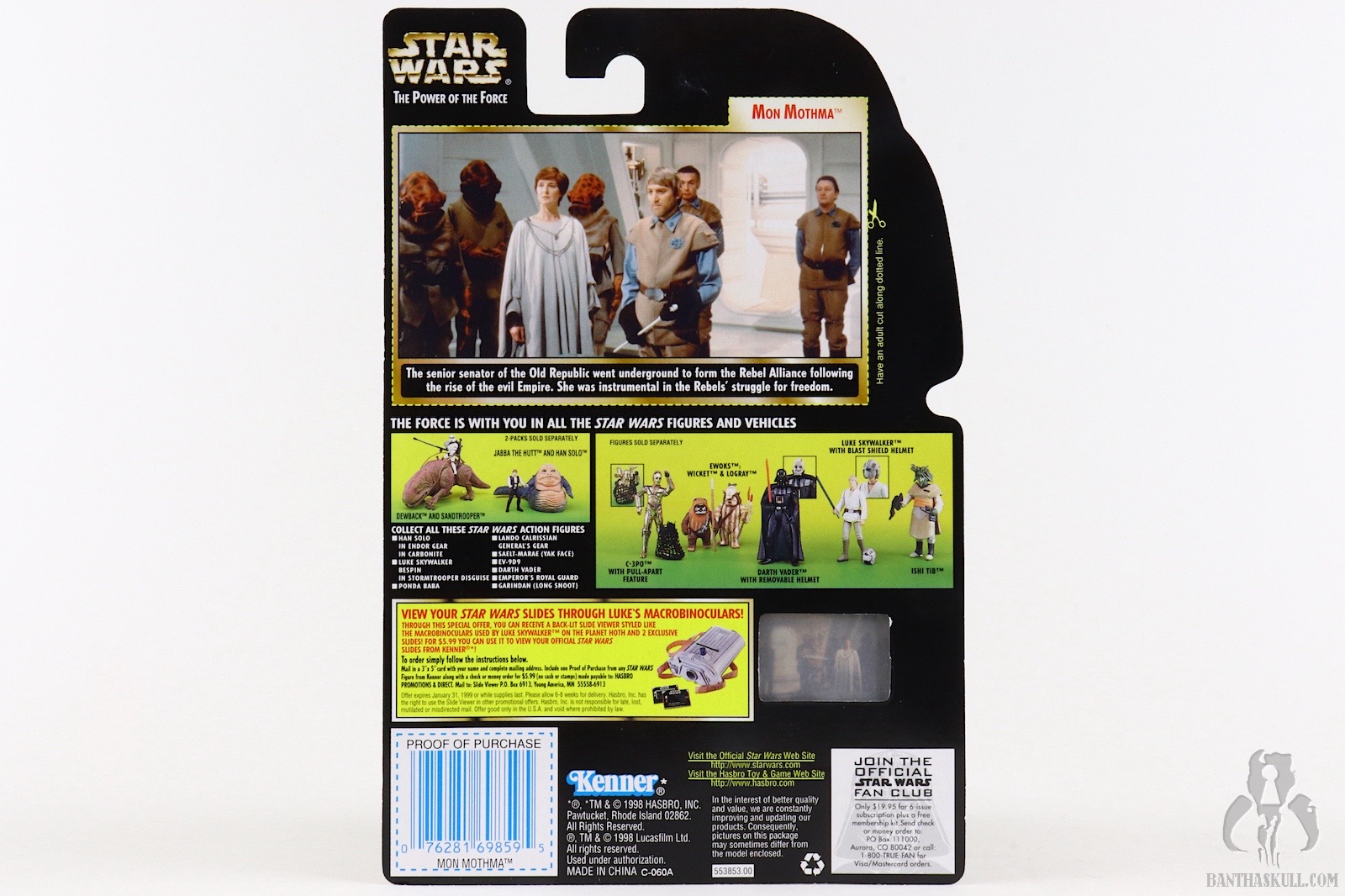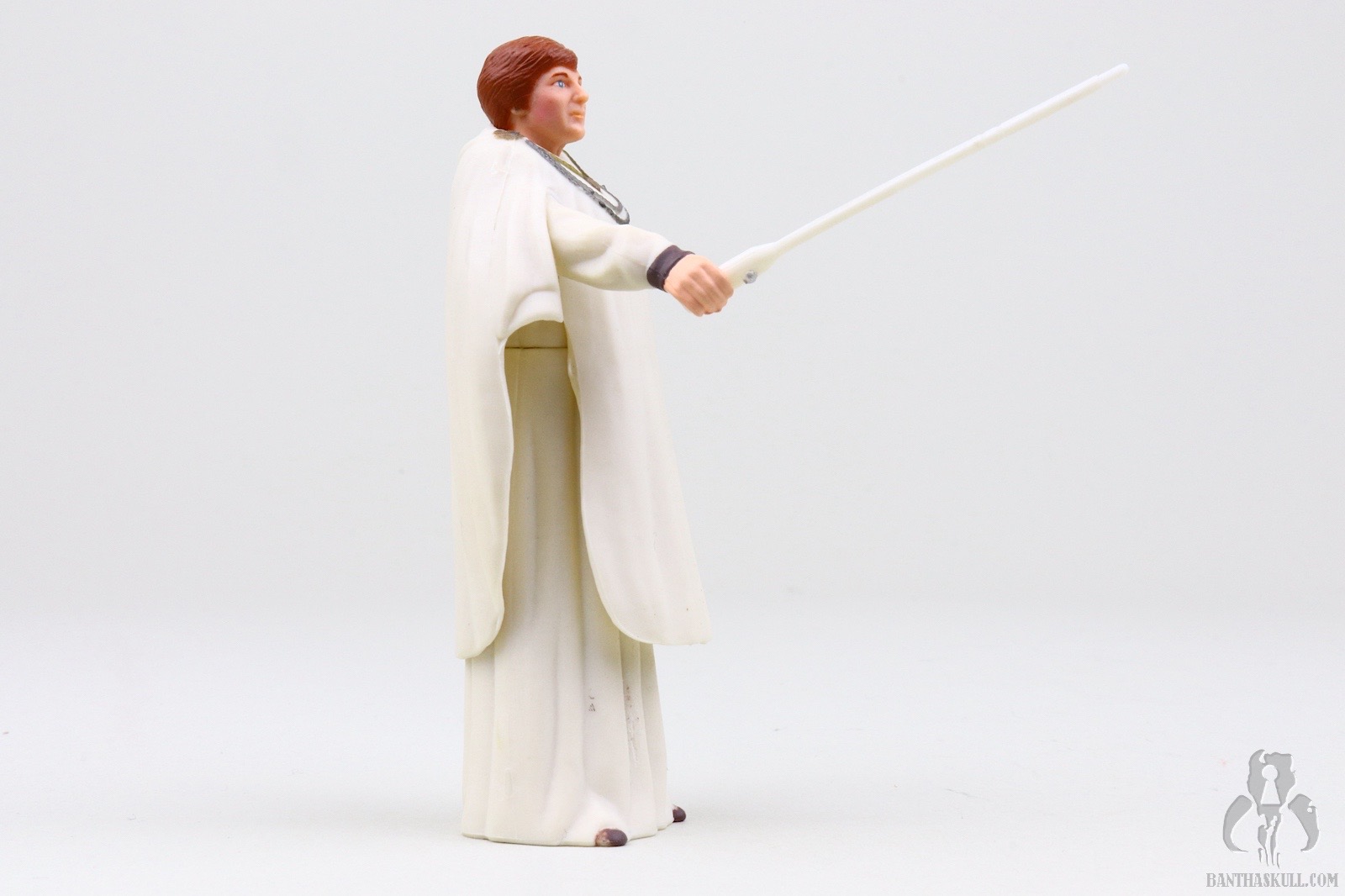 The lone accessory shows you why Mon Mothma is in charge. She has the biggest pointer in the galaxy. It’s much bigger than Madine’s. Ackbar’s is so small that he should probably be ashamed to show it. No Rebel was safe at a briefing. If they started dozing off, Mothma could poke them in the chops all the way from the lectern. Obviously I’ve been giving this figure the business so far. In reality it’s fairly standard for the era. Any figure with a floor length skirt/dress had a one-piece solid lower body. Because Mon Mothma is an administrative type of character, this is a little more forgivable. Aside from the lack of detail on the head sculpt, which doesn’t bear a terrific resemblance, you can easily sneak this into your Home One display without looking jarringly out of place. It’s a 4 out of 10.