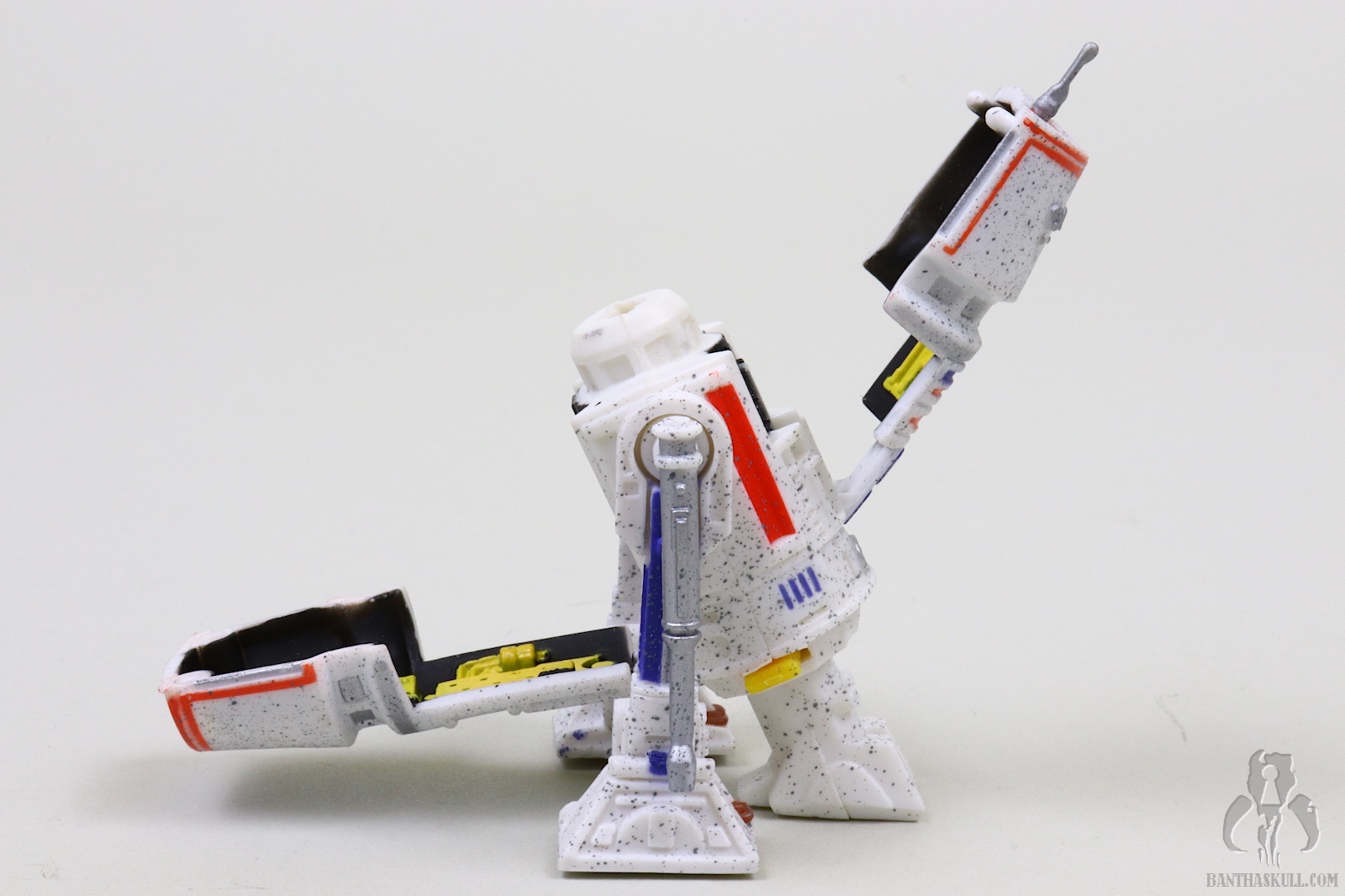 Even in the era of POTF2, it was hard to argue that this figure served any purpose aside from being a placeholder for a proper R5-D4. The figure is entirely too large. It suffers from elephantiasis of the third leg in order to accommodate the rocket launching mechanism that exactly zero people asked for. The upper half is basically the equivalent of one of those Kinder Joy eggs minus Herr Doctor Tinkletush’s schokolade num num bits. This means that the dome does not rotate (and also means no candy). The last insult is that in the days before Hasbro figured out how to execute a dirty wash, they gave this figure a good speckling of black dots instead. The only thing I will commend is the detailing on the inside of the shell. It’s a neat little splash of high contract color that could have been easily bypassed. This figure is a 1 out of 10 for no other reason than 1 is as low as our grading goes.