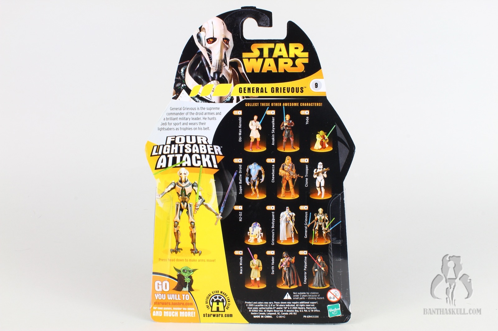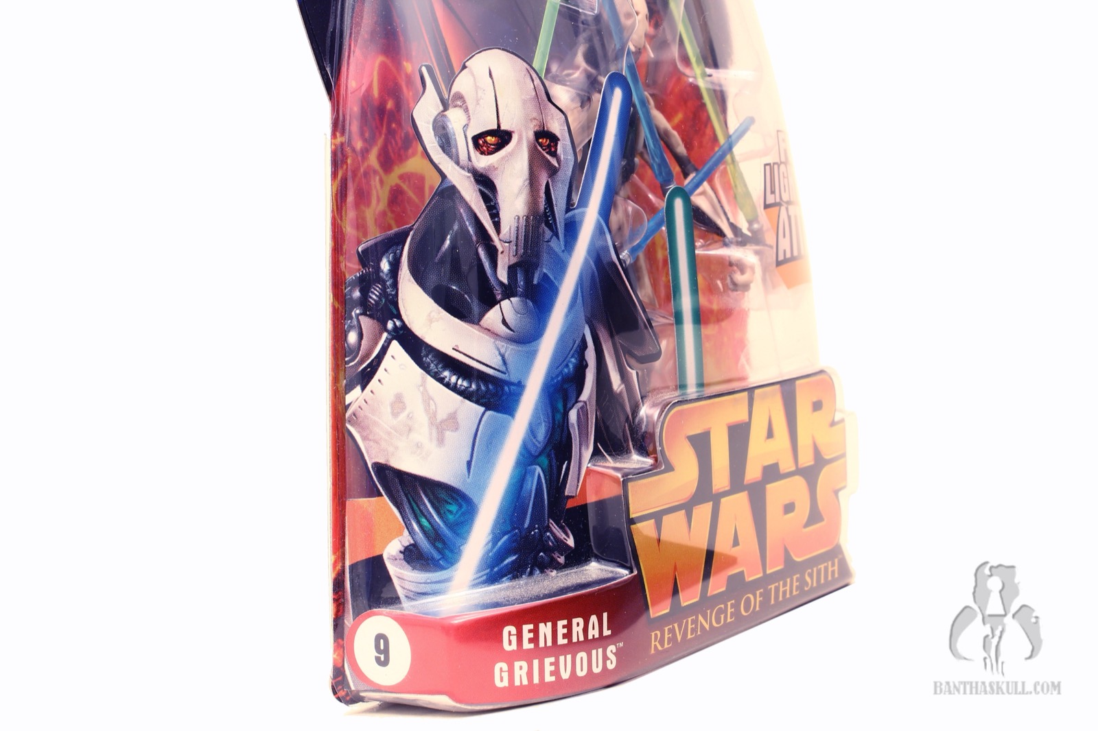 Grievous was a great character when he was introduced in the Tartakovsky Clone Wars Microseries. He was legit scary. His first scene when he was approaching from offscreen, murdering his way through the cornered Jedi was one of the more memorable scenes in the whole series. The Jedi were terrified, and so were we. Then we saw him “in real life” in ROTS, and he was suddenly a cartoon villain like Dick Dastardly (which also happened to be my nickname in college). We had already gotten a figure of him as one of the sneak preview figures. It was more or less a statue, and it skipped the “big reveal” spoiler of the multi-arm lightsaber attack.