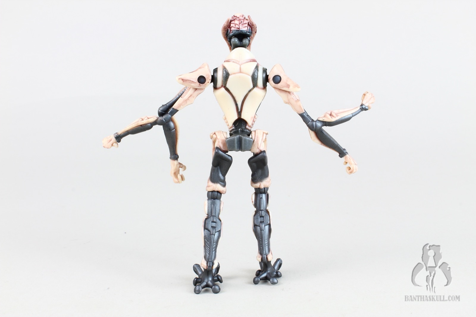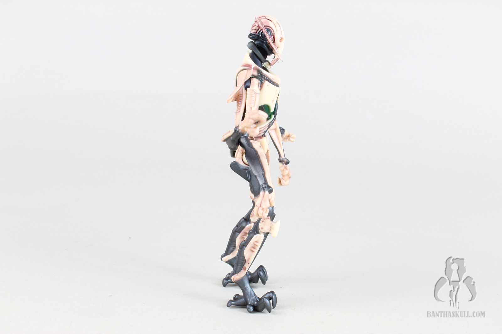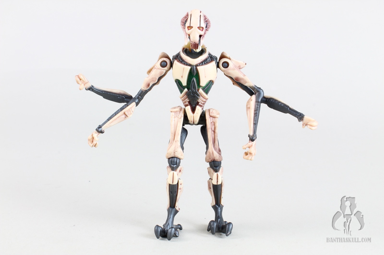 For articulation, Grievous has a ball jointed neck, ball jointed (effectively) shoulders, ball jointed knees, and swivel hips. As usual, the knees are borderline useless without ankles, and your mileage may vary when it comes to the figure standing upright if the feet are warped in any way.