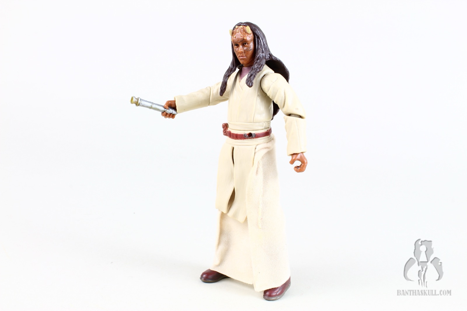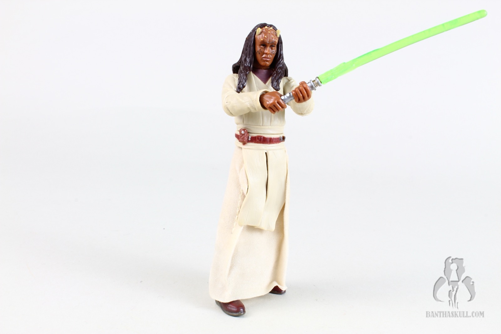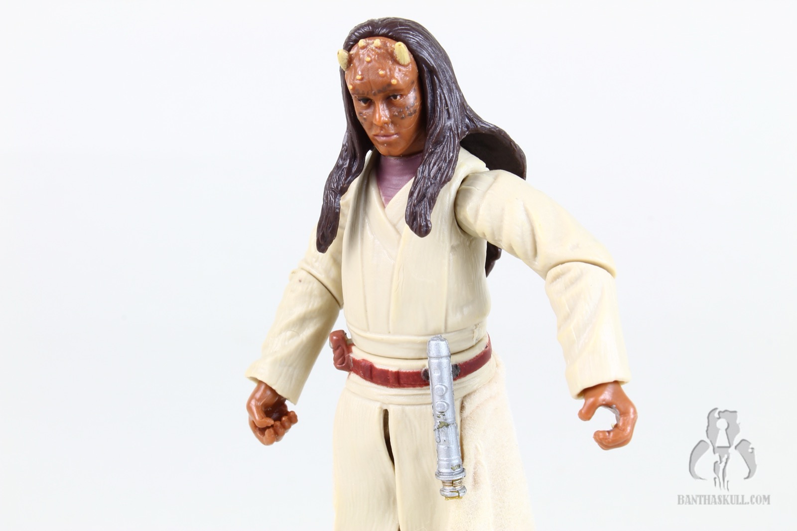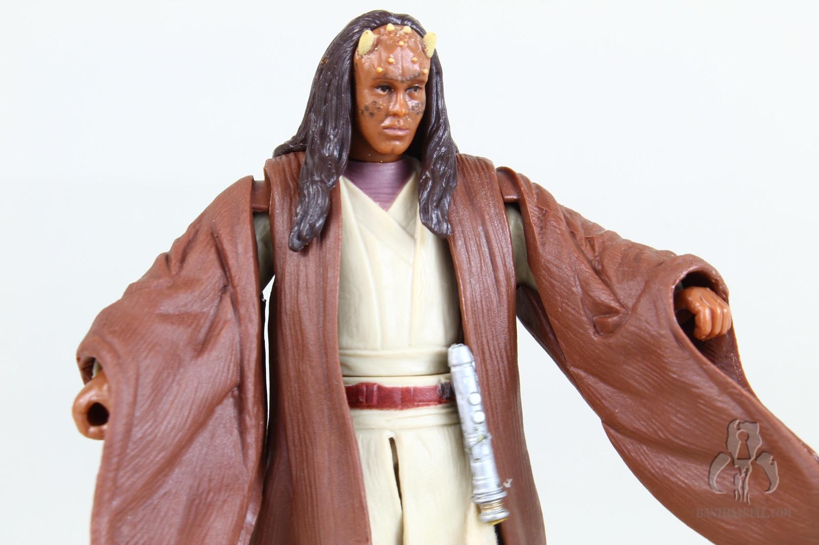 Anyway, the figure isn’t very good for a few reasons, but Hasbro definitely tried. To start, they must have approached Agen Kolar the same as most of the other background Jedi in the the line. They attempted some “cutting edge” stuff to pack more value into it. Most other such figures included additional articulation or sculpting that put it a half step above most other figures in the ROTS line. Kolar has a ball jointed neck, shoulders, and knees, along with swivel elbows, wrists, waist, and hips. Again, sadly, no ankles - something that was bestowed upon Aayla Secura.