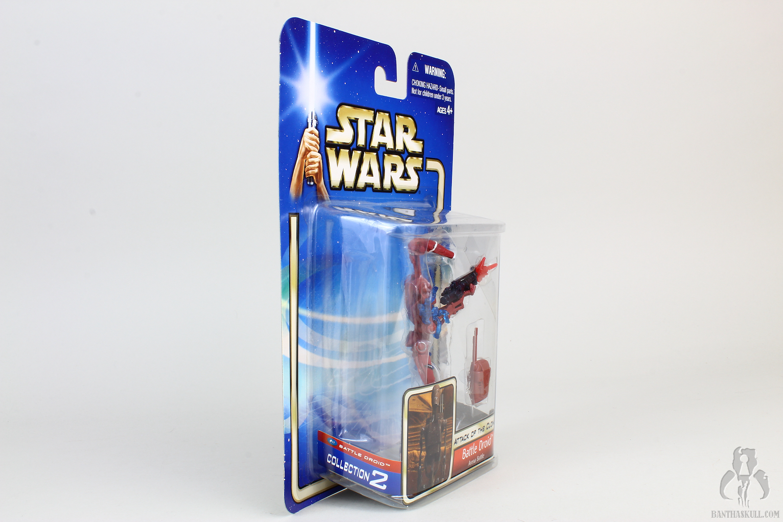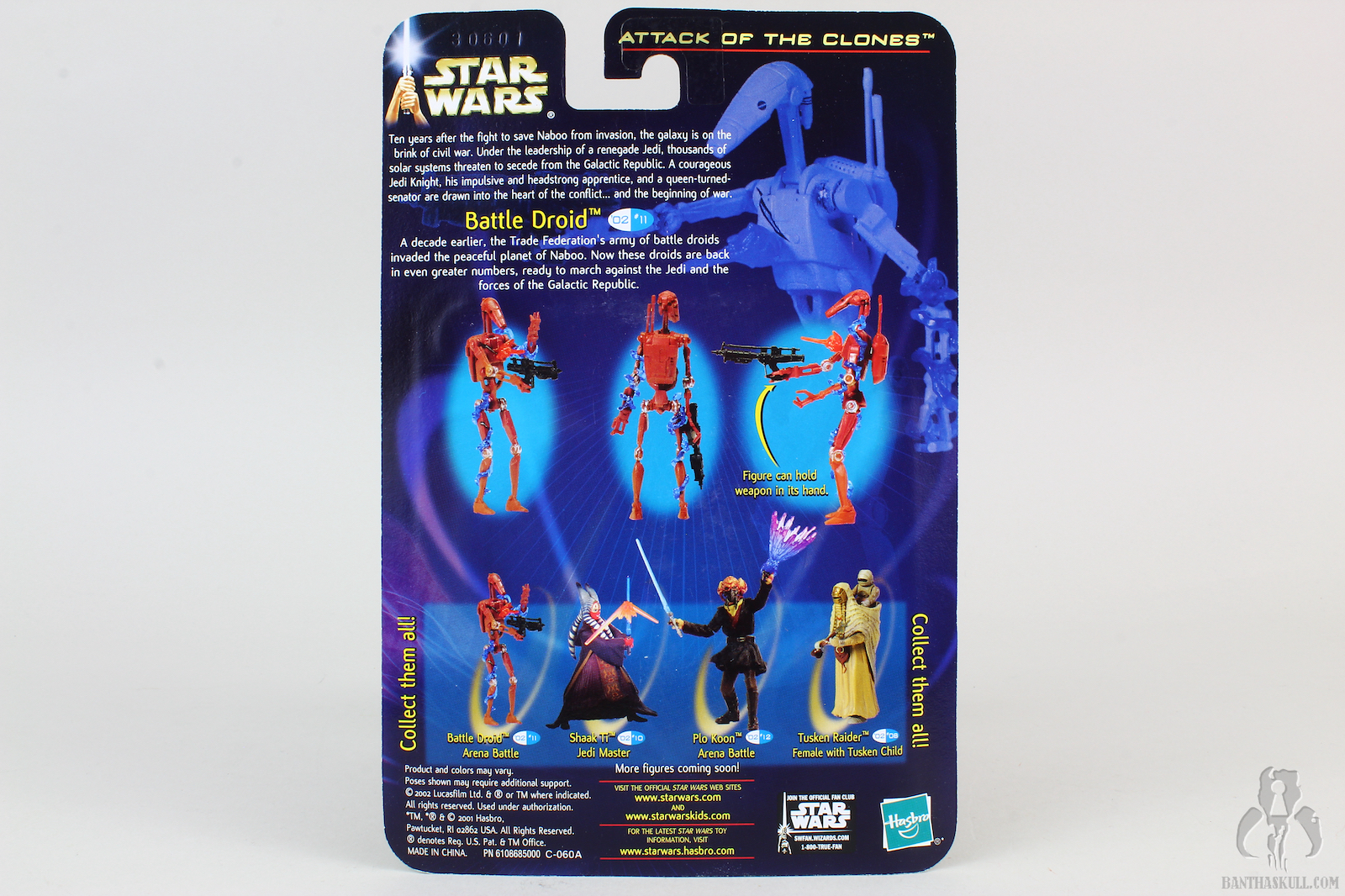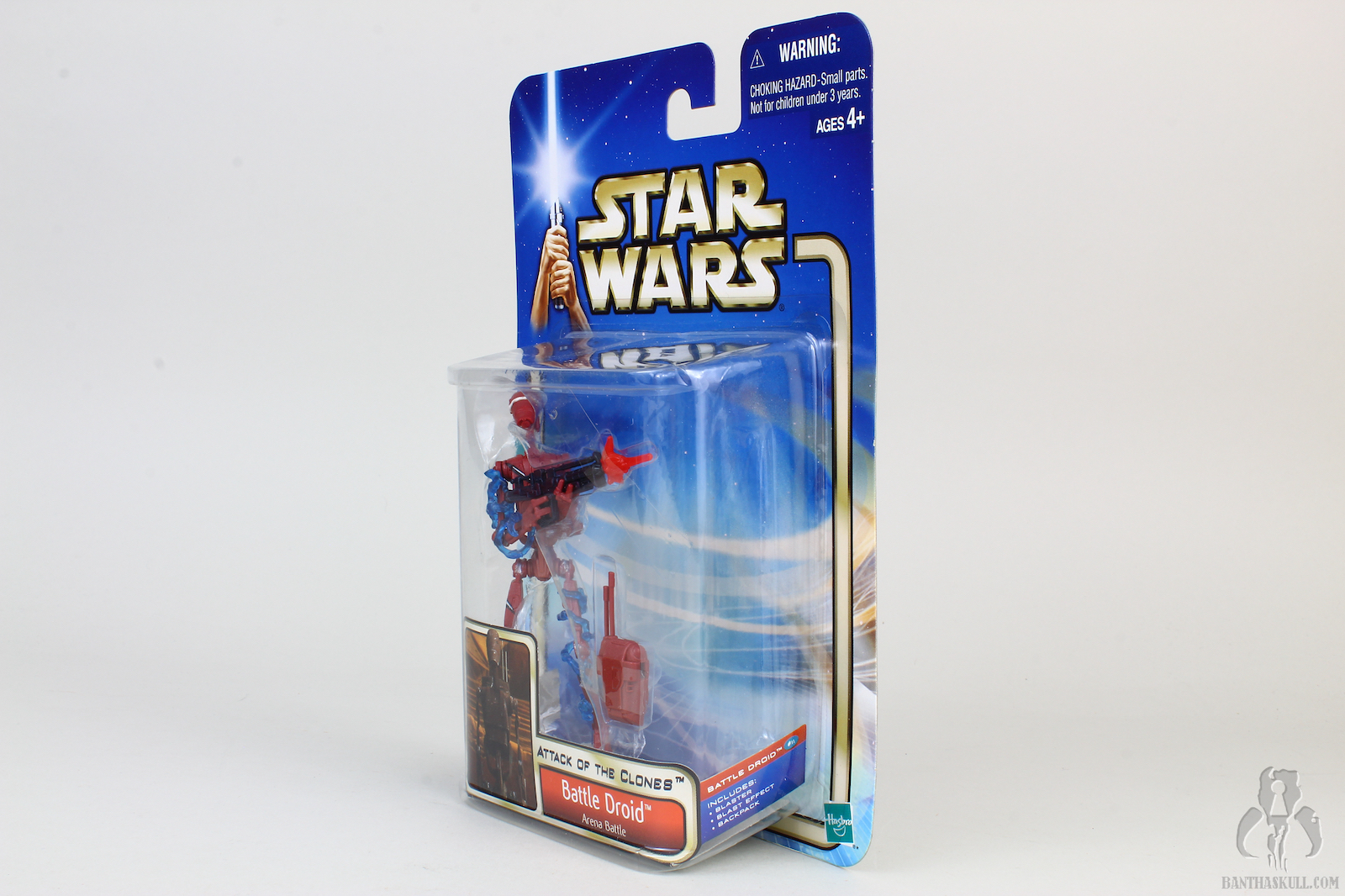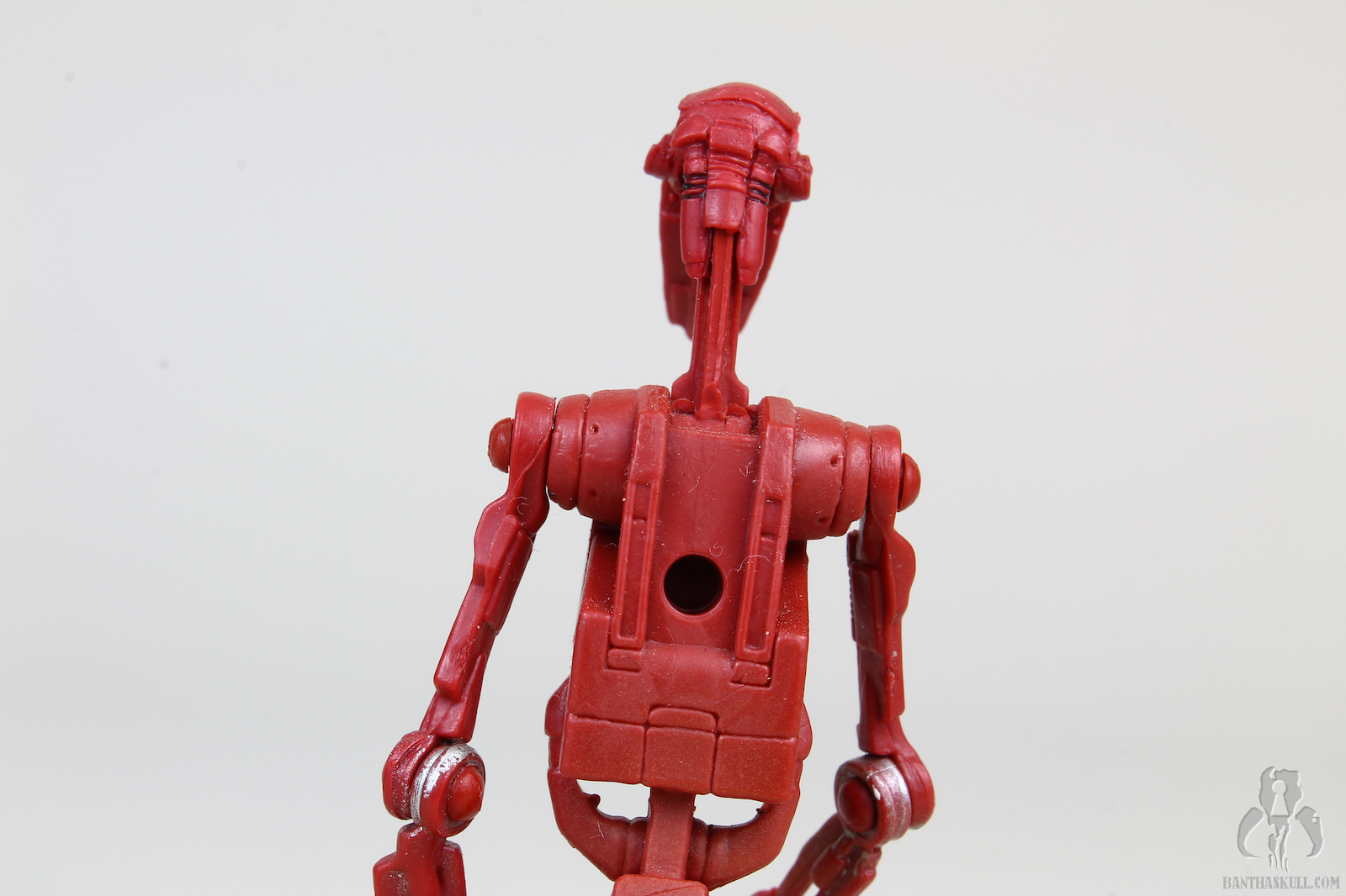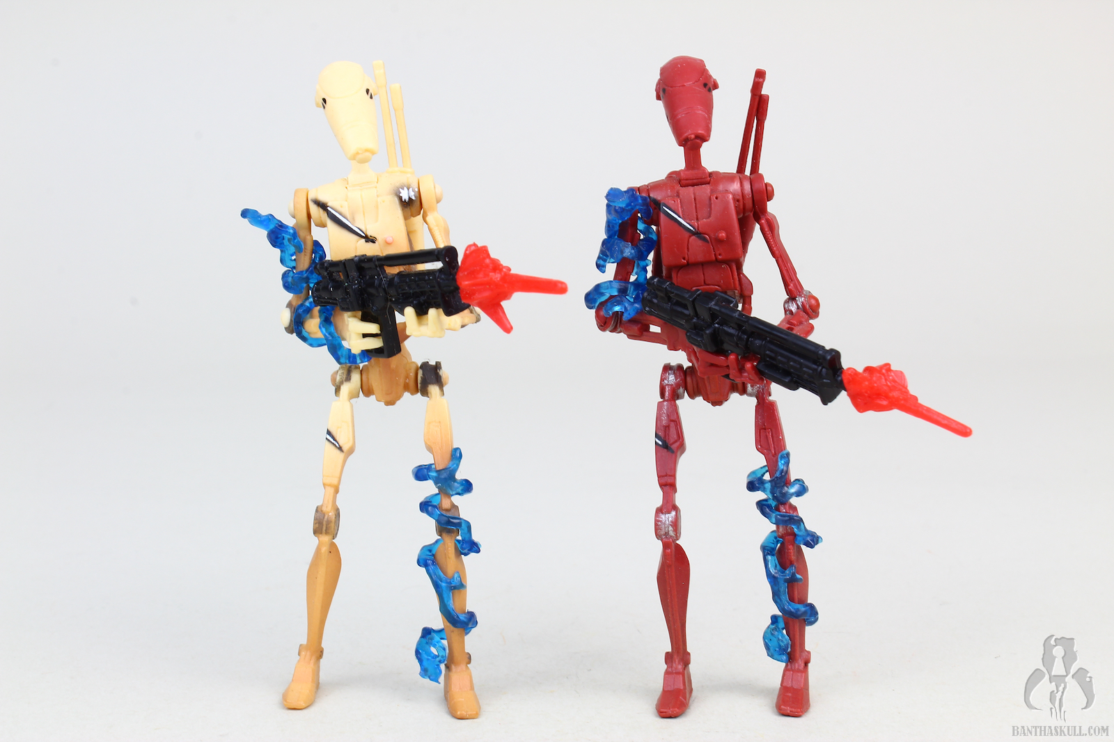 Running changes where Hasbro gives us variants of a figure are always a good thing. Sometimes a running change is a minor correction, but as is the case here, we get two different figures meant to represent two different on screen characters. The tan battle droid is, of course, from The Phantom Menace, while the red variant is from Attack of the Clones.