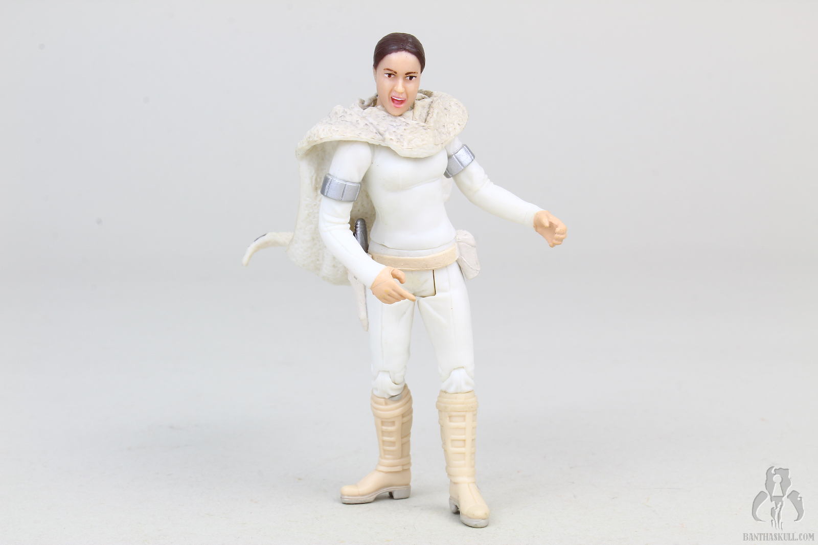 Since the face and shawl preclude you from posing this figure in a neutral stance, it might as well be preposed. Also, since the cape is not really removable (you probably could do it if you were super careful), neither this nor the previous release allow you to have a clean bodysuit/no shawl version of Padmé. That was still elusive by this point in 2003. It wasn’t until years later that we got satisfactory figures of both a pre- and post-Nexu Padmé.