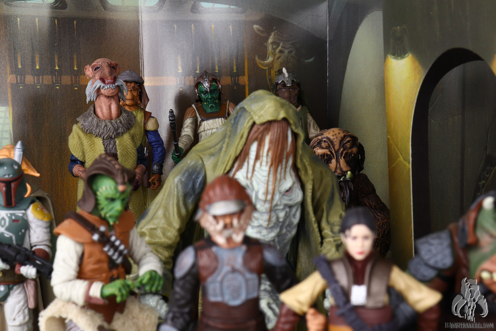 J’Quille was a member of the whipid species, just like EU fan favorite, K’Kruhk. He is barely in ROTJ, but there were enough movie stills and behind the scenes shots of him to get people interested in the character…or at least the costume. He was “seen” mostly in the palace, but there are stills of him chilling out on the sail barge as it travelled to the Pit of Carkoon, taking him to his eventual death at the hands of the Jedi Madman.