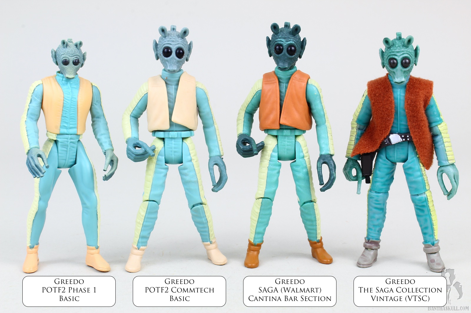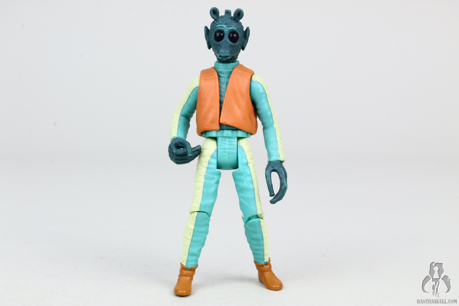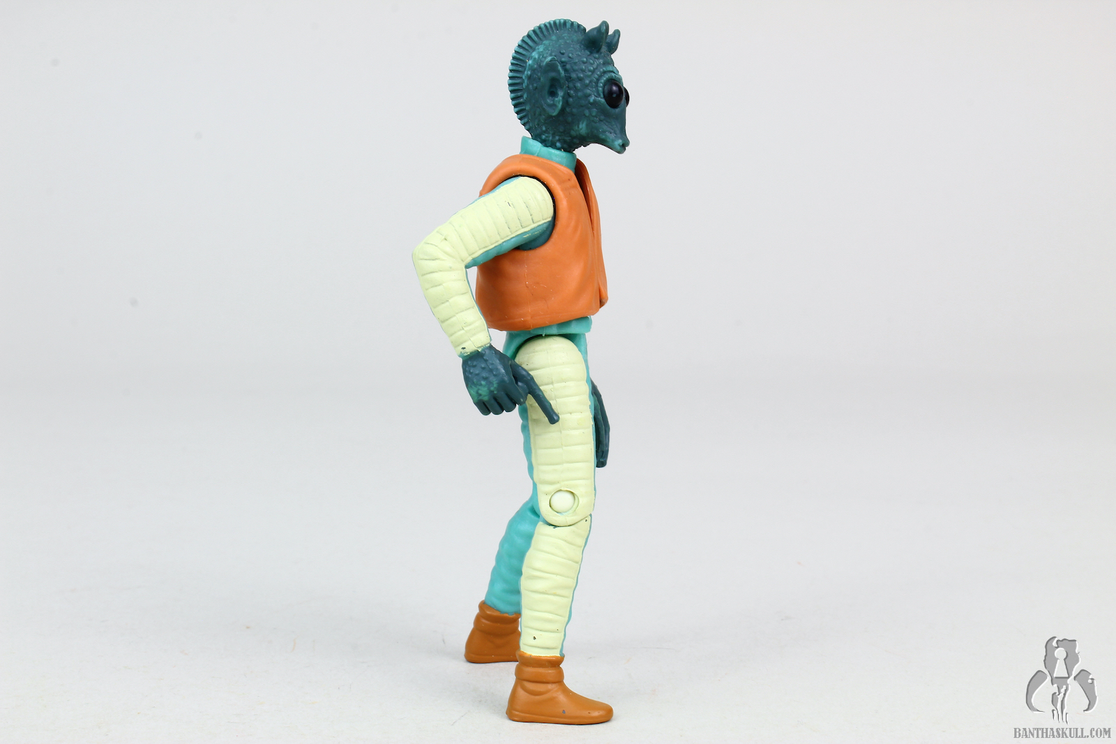 Each of the three sets included a cantina figure, 3 bar glasses, and most importantly, a cantina bar section. The Greedo figure was a repaint of the POTF2 Commtech release. It wasn’t bad for the time. It had basic articulation with added hinged knees, allowing the figure to assume a realistic seated position. The left hand is able to grasp the bar glass accessories, although the closed-grip right hand is still only good for holding his blaster (not included here). The three bar glasses are 2 different sculpts, and were included in each of the 3 cantina sets.