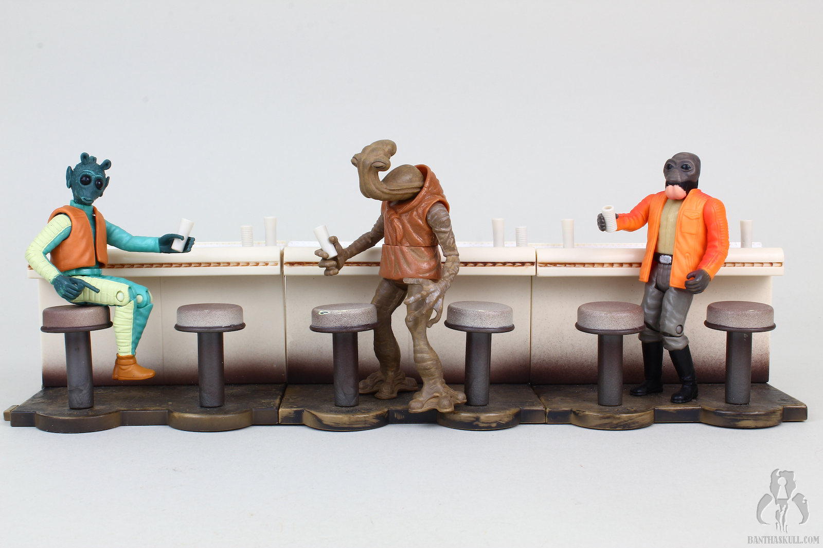 So these sets satisfied a demand, but created two more (Kitik Keed’Kak and the curved sections). Hasbro eventually came through on both, and collectors were completely satisfied, never to complain again! Now we just need to get rid of those silly stools. That’s all we need. And the distillery. That’s it. Nothing else. And some cantina alcoves. And we won’t need anything more. Except the Tonnika sisters. That’s all.