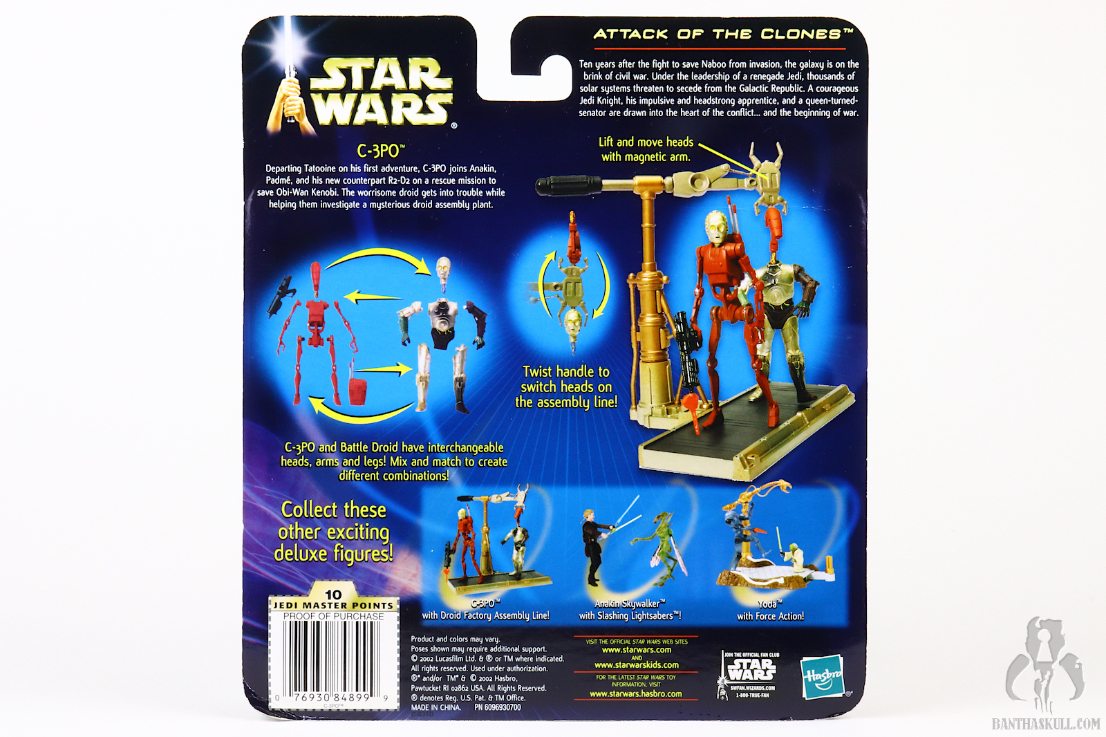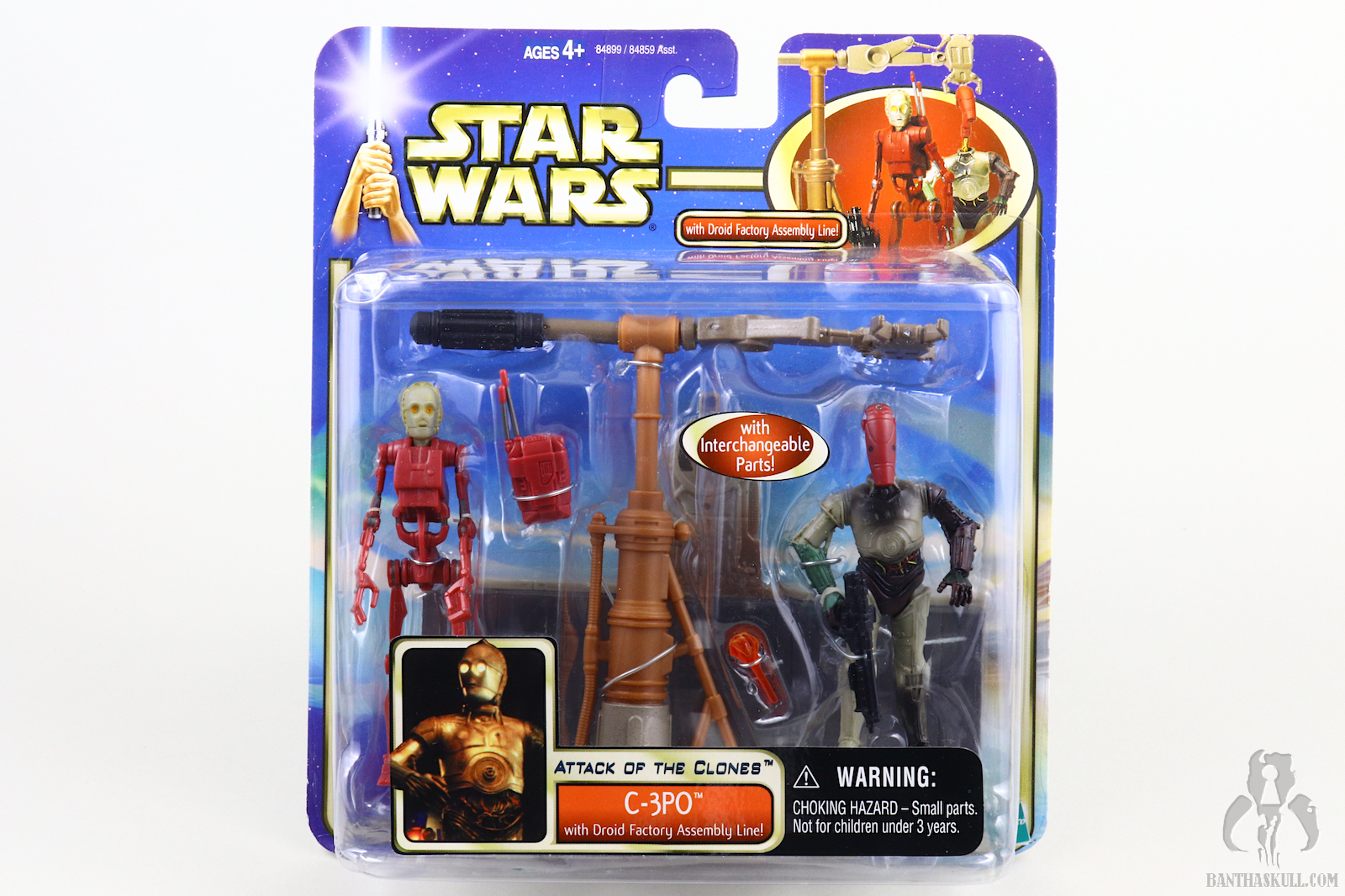 Yesterday we reviewed the odd but fun Super Battle Droid Builder. Here is yet another deluxe set from the 2002 Saga line that connects to the Geonosis assembly line. Also, Hasbro was into a few gimmicks the were prevalent in 2002. This set features 3 of them together: removable body parts, magnets, and blast effects.