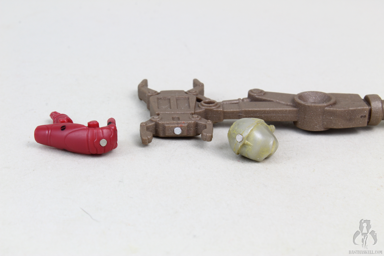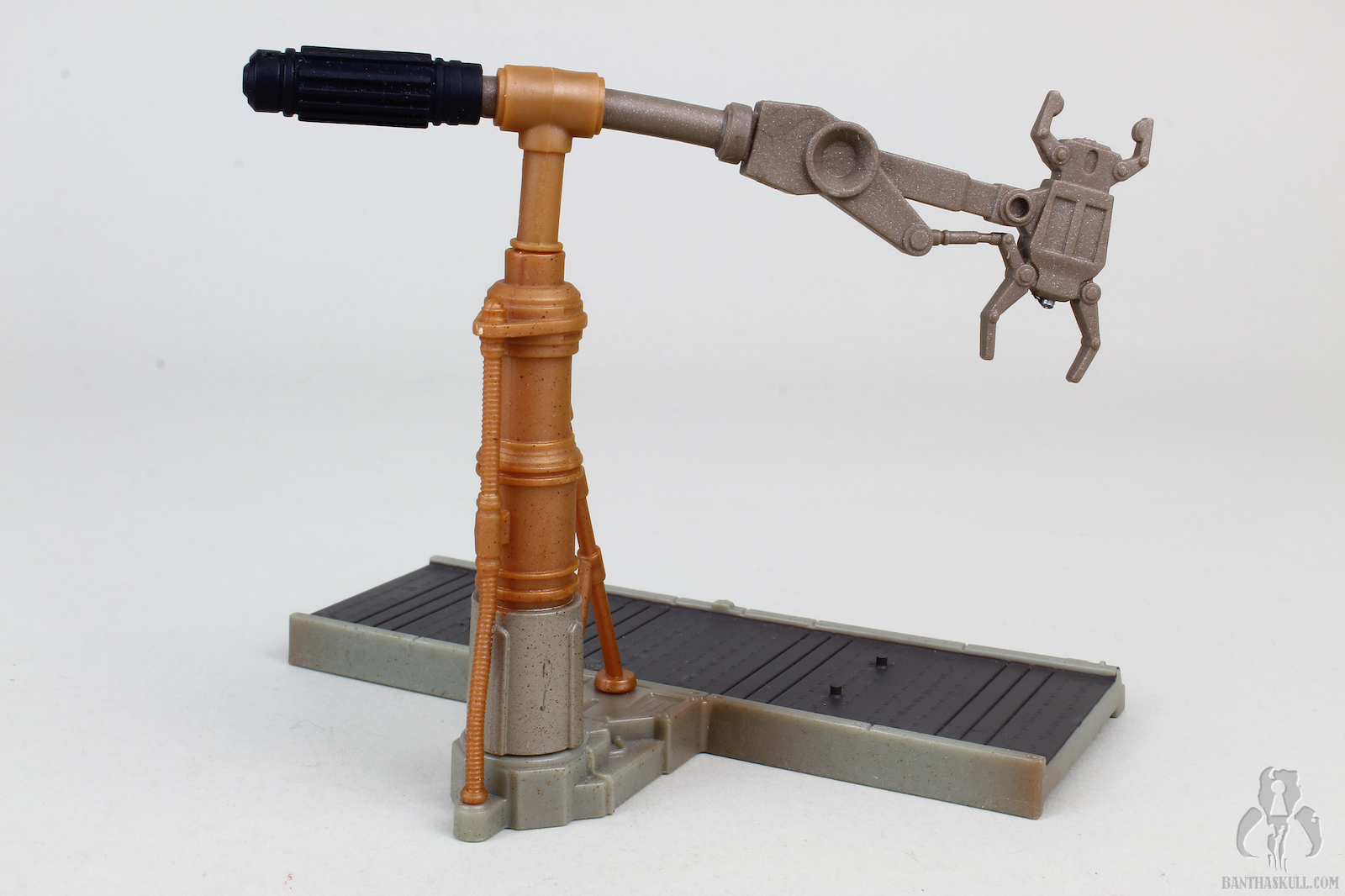 The star of the set is the environmental piece. It is a long conveyor with some machinery. If you set up both droids on the foot pegs on the conveyor - and also insert the heads loosely (don’t snap them into place) - you can use the included machinery arm to swap the heads. There is a magnet on each side of the double claw. You can manipulate the arm (up and down / back and forth), to have the magnets do their magic. Pick up each head, and then swap them on the other bodies. Fun!