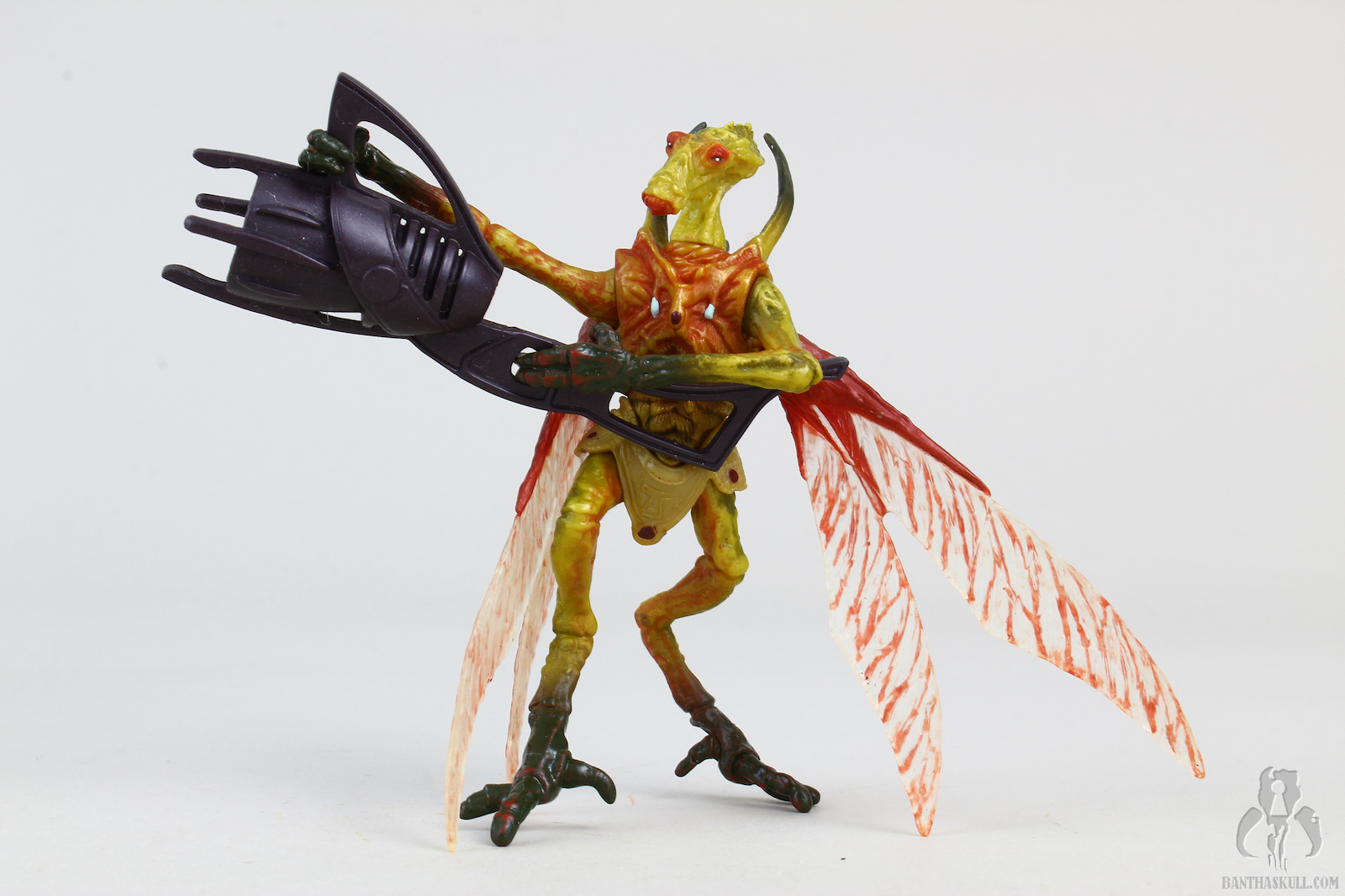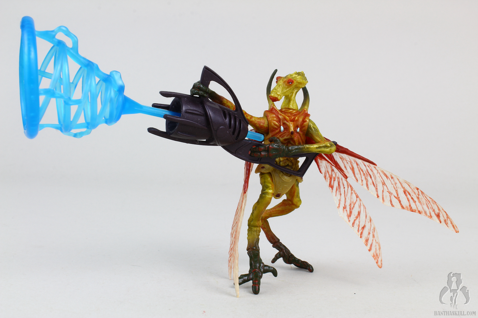 This Geonosian includes an energy blaster. He can hold it in both hands in much the same way that Jesse Ventura wielded his gatling gun in Predator. Not too bad. But despite all this, the figure can’t achieve too many different poses.