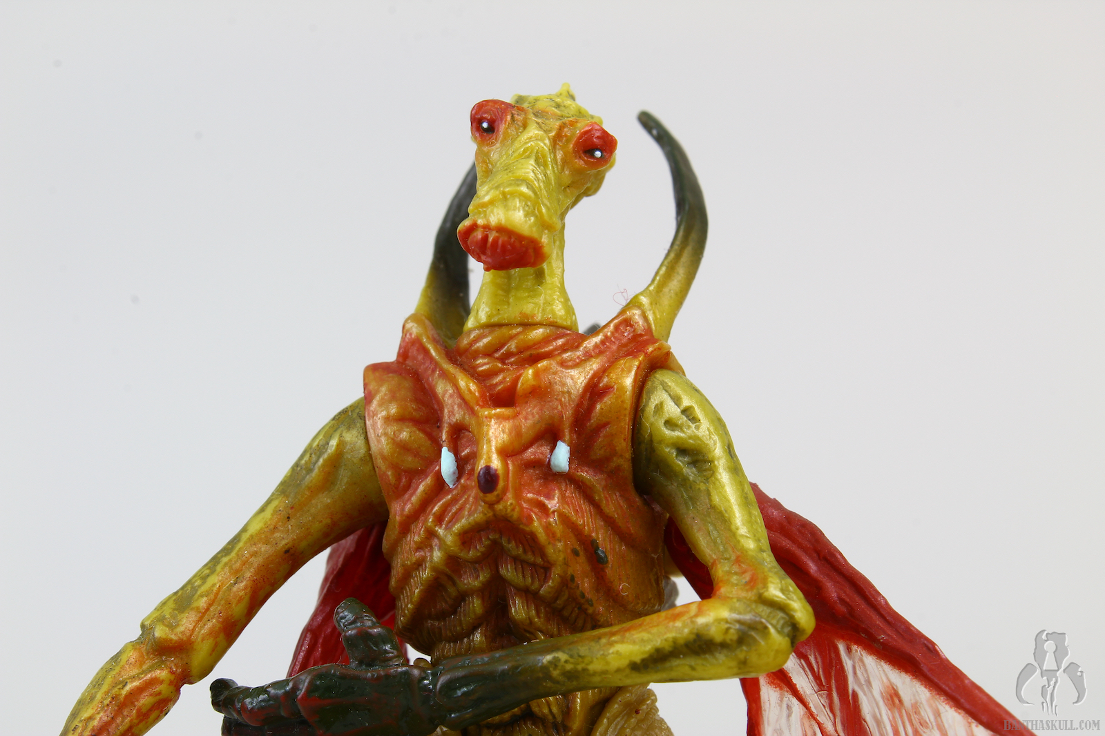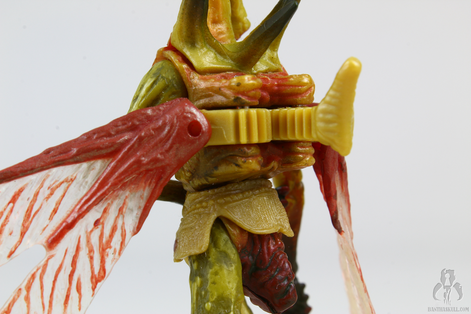 Many fans feel that Attack of the Clones was a terrible film, but served a great purpose as a 2 hour toy commercial. The Geonosian bug people weren’t a particularly toyetic design, however. Hasbro really struggled with Geonosian figures during the Saga line in 2002. They were poorly articulated, not very posable, and often struggled to stand upright unassisted. This deluxe version was no exception, however, it included something that could assist you in that endeavor. Wings! And not just any wings, but articulated wings! For whatever reason, Hasbro made Geonosians both with and without wings. According to Wookieepedia/Legends, some Geonosian worker drones had vestigal wings, as they had lost the ability to fly. But vestigial wings does not equal no wings, so I’m not sure what they were going for there.