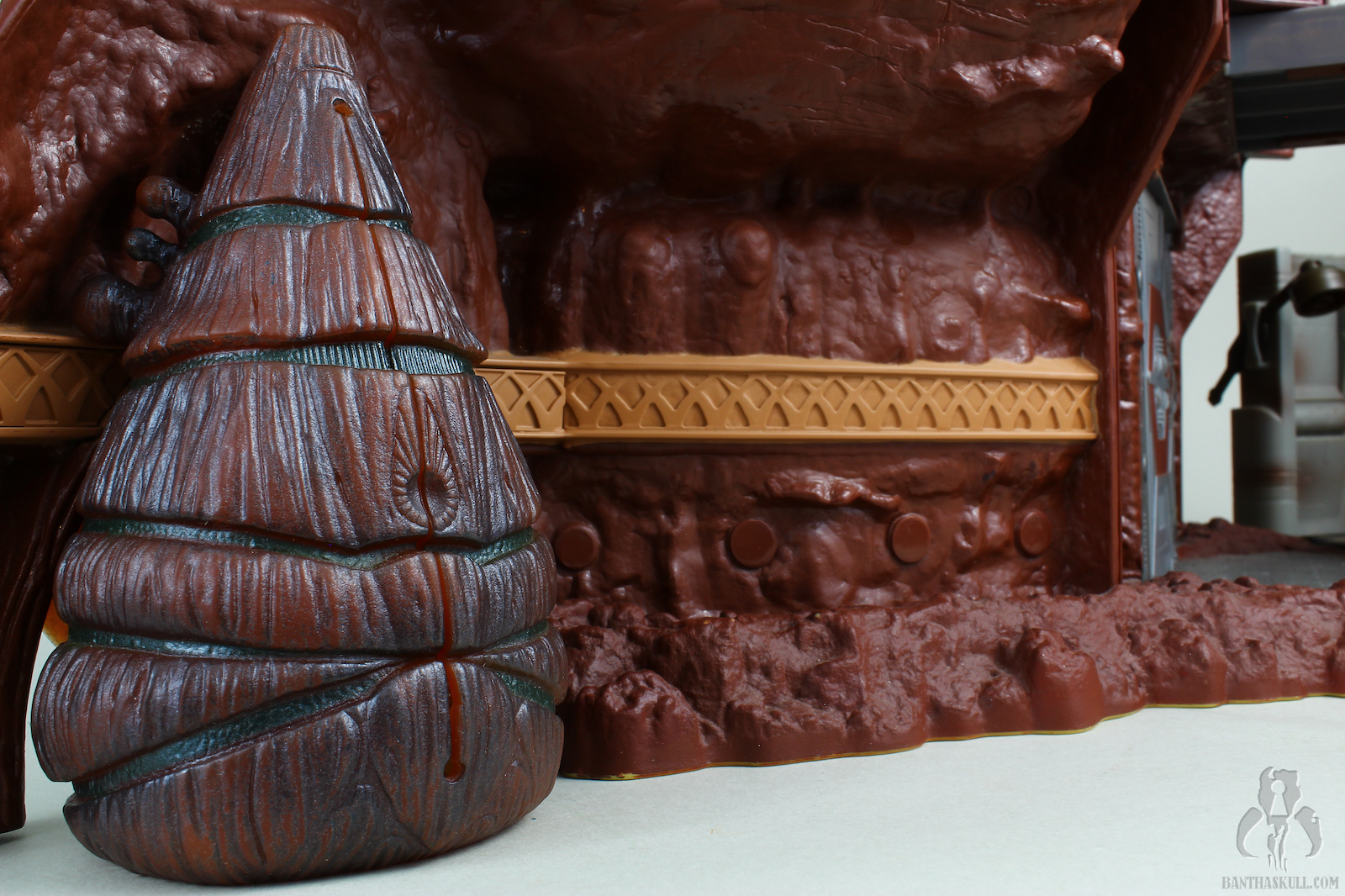The “deluxe” aspect here is the included accessory, which is a “pod”, or basically a little sleeping nook for this guy. This didn’t seem to appear in Attack of the Clones. The closest we get is when Anakin, Padmé, and the droids first enter the hive, and begin disturbing the sleeping Geonosians who are crammed into nooks in the wall. The toy fits the one included Geonosian, and keeps the figure completely enclosed until you choose to have it emerge like a creep. For added play value, the pod has a giant suction cup in the back, allowing you to affix it temporarily to a flat surface. It doesn’t exactly “interact” with the Geonosis Arena Playset, but the included environmental piece does seem at home sitting on the backside of the playset.