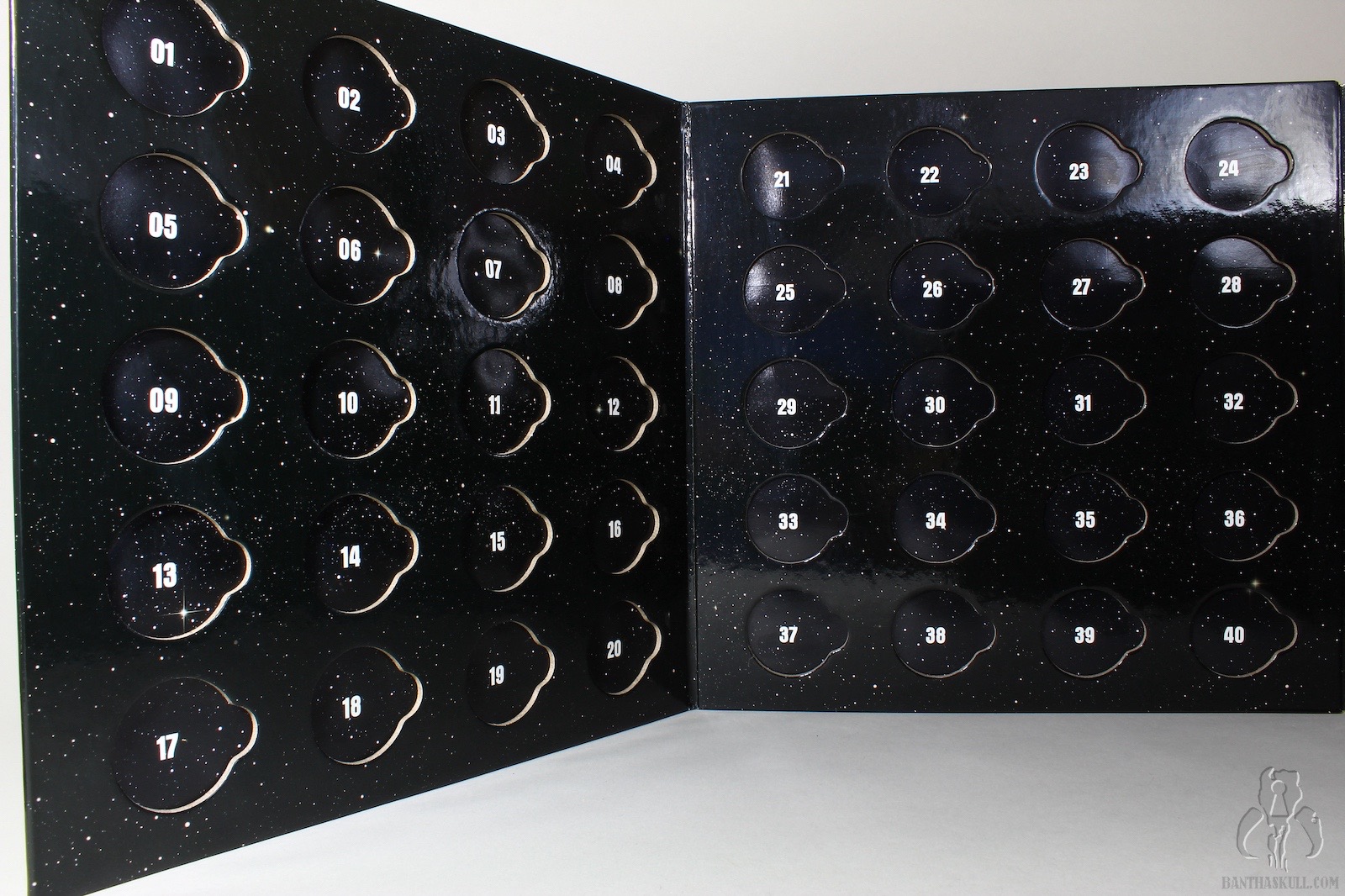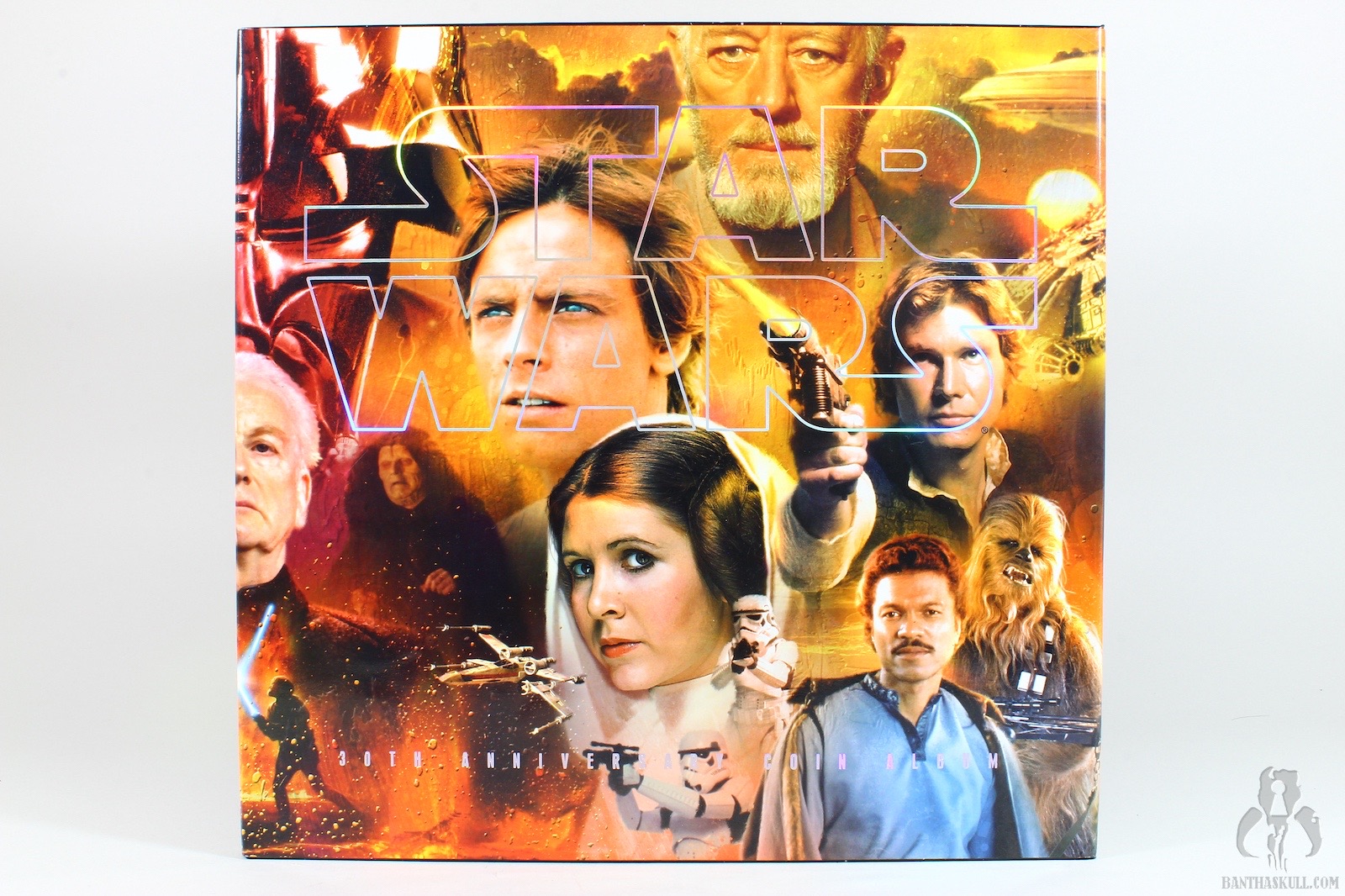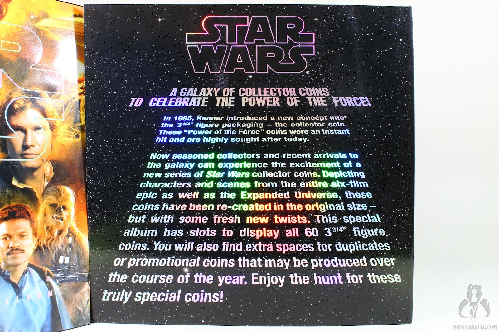The coin album included with Darth Vader…well, let’s call it what it is. Darth Vader really just came with the coin album. It’s a fantastic quad-fold book, covered in a four panel mural that depicts the entire 6 film saga (at the time). Inside, is a history of collecting, along with slots for the 60 coins that came with the basic figures released in 2007. There were another 20 un-numbered slots for whatever else you wanted. But even that didn’t actually hold all the coins that were made available. In order to do that, you needed 3 of the VTAC special mail away coin boxes.