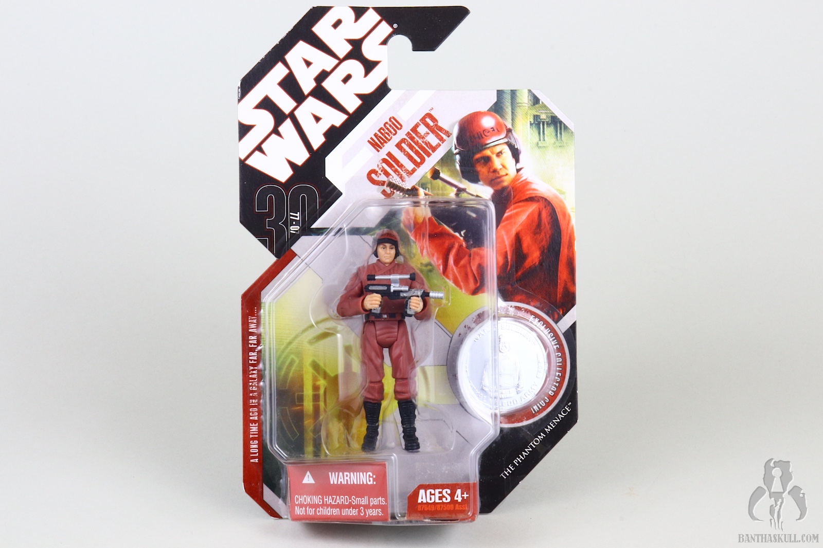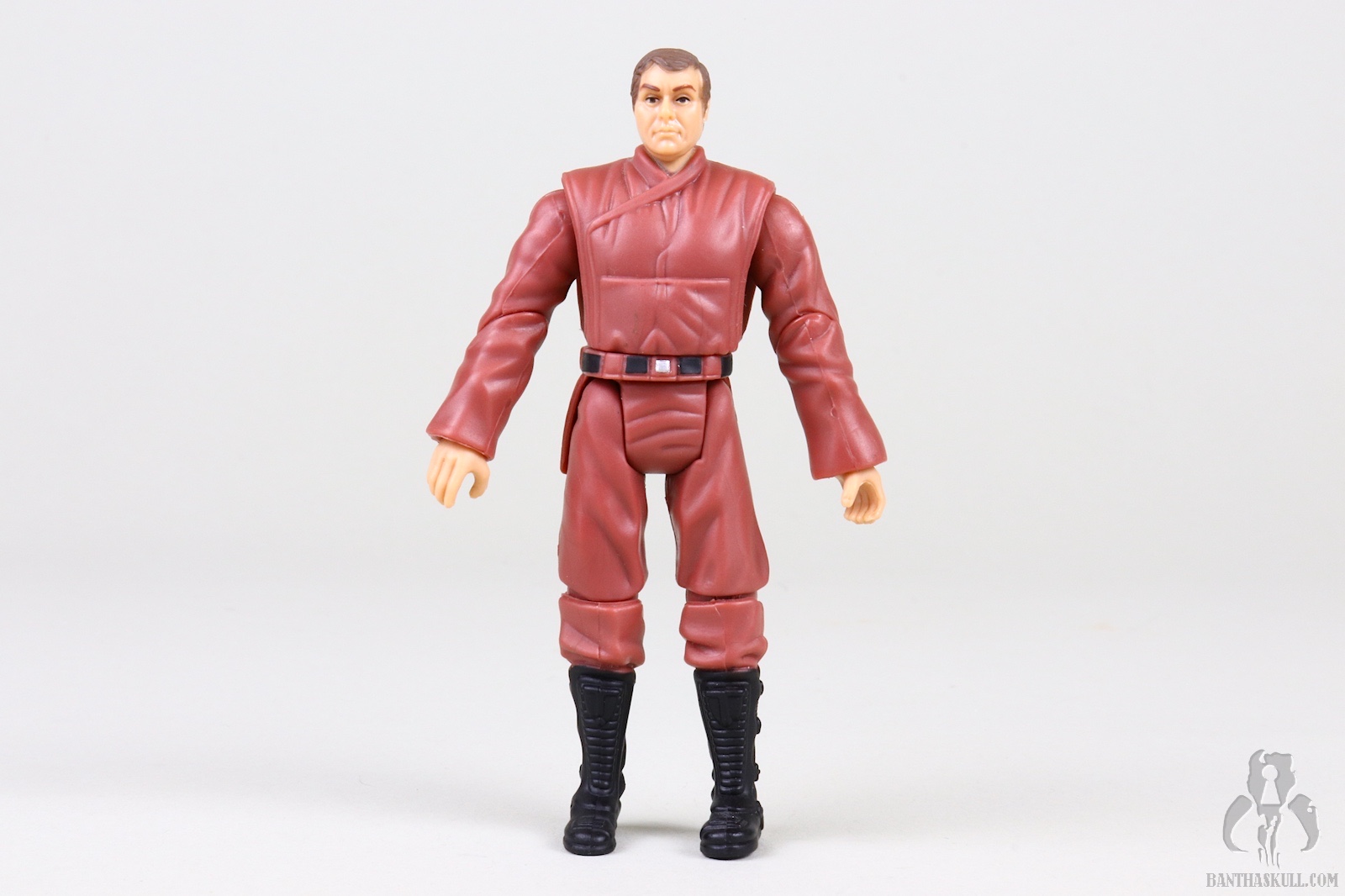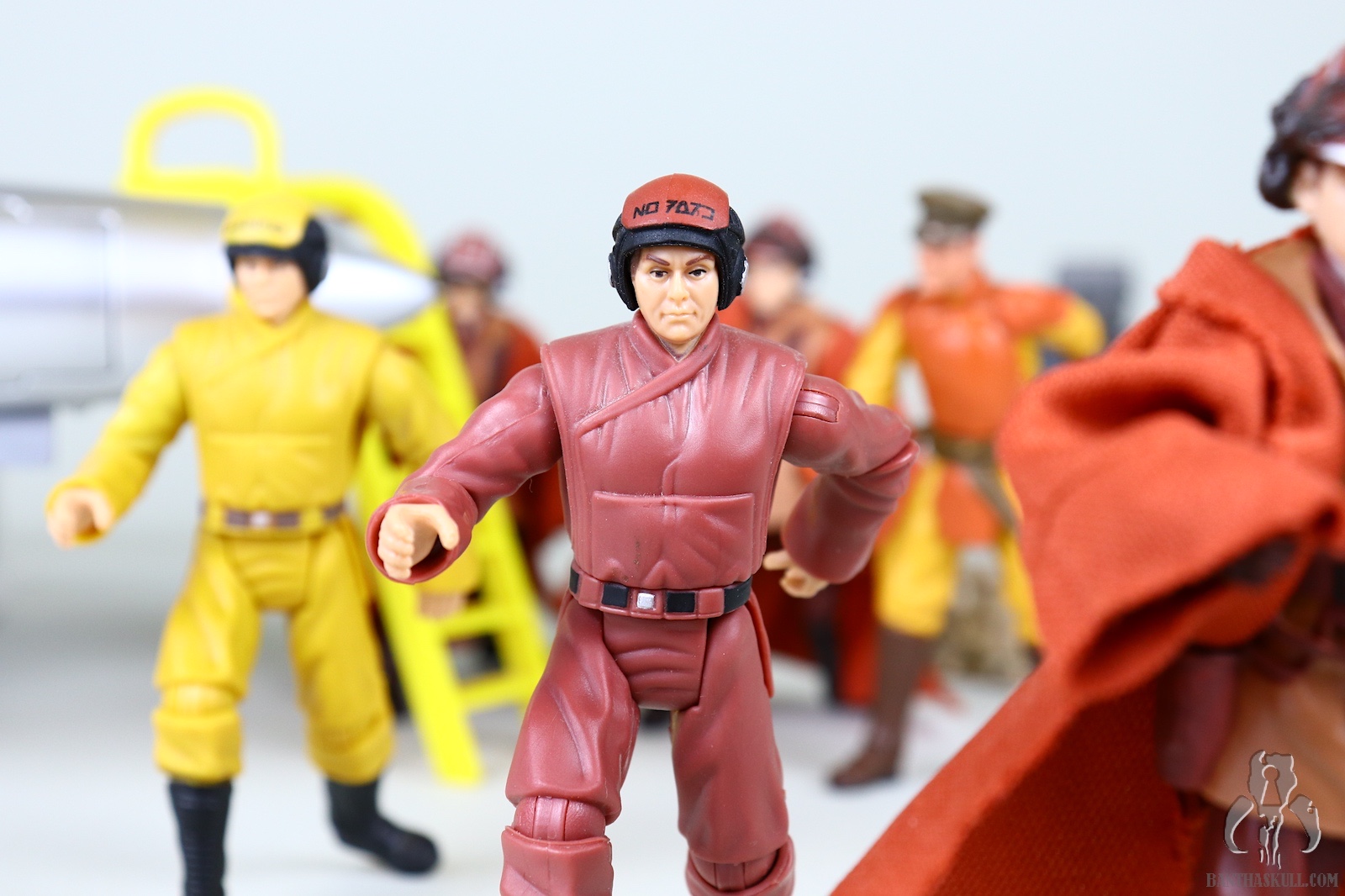 I’m not going to re-review this figure because this is a straight-up repaint of the TSC 050 Naboo Soldier figure from the previous year. If you want a more in-depth review of this figure, please consult that review as the figures are identical save for the fact that this 30th Anniversary Collection figure wears a red uniform, and that The Saga Collection (TSC) figure wears a yellow uniform. The repaint doesn’t even represent different characters. It’s just an on-screen uniform variation of the same anonymous character class. I will give a thumbnail recap of the previous review in case you’re too lazy for the clicking. As a soldier, this figure is pretty lousy, but as a generic background mechanic/technician in a Naoboo hangar display, it’s serviceable, and a 6 out of 10 overall.