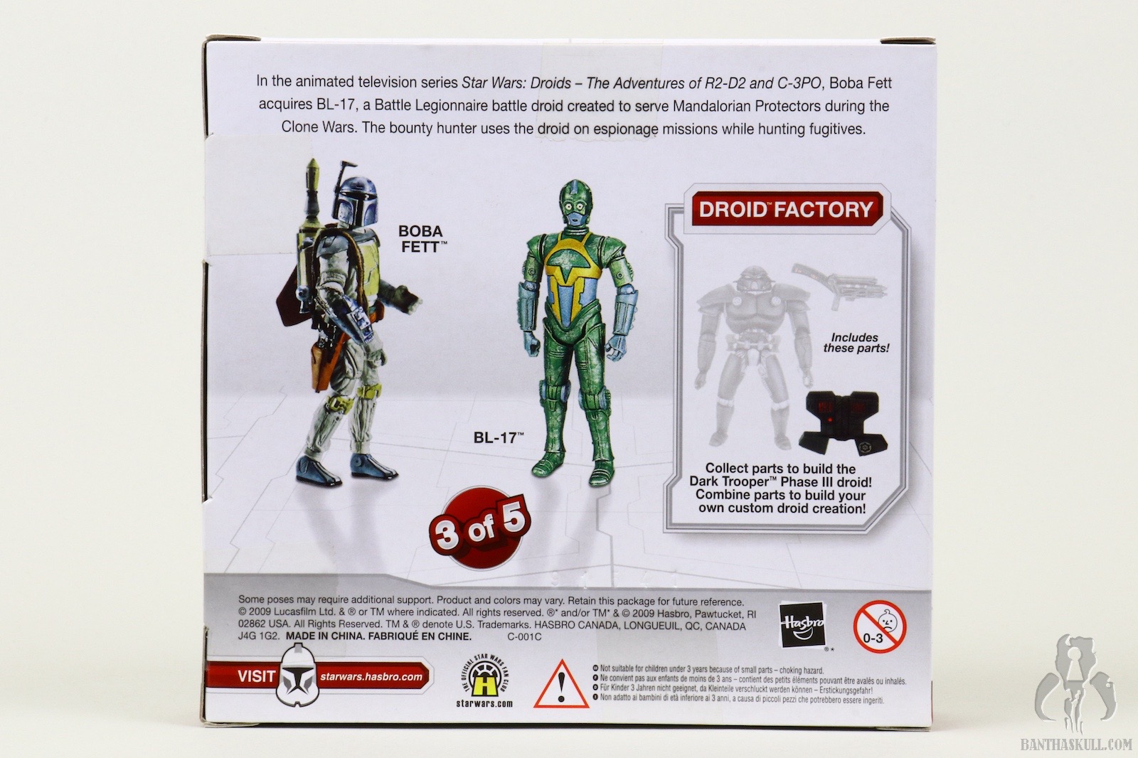 Hasbro took enormous artistic license when traslating the animated BL-17 into a realistically-styled action figure, to the point that it’s barely recognizable to the source. BL-17 was Fett’s droid, and on the show they shared a similar color pallet. BL-17 also had sinister orange eyes portending his villainy. He literally tried to murder Kea Moll (pretty dark). Of course that perpetual poor judge of character, C-3PO, immediately befriended him.