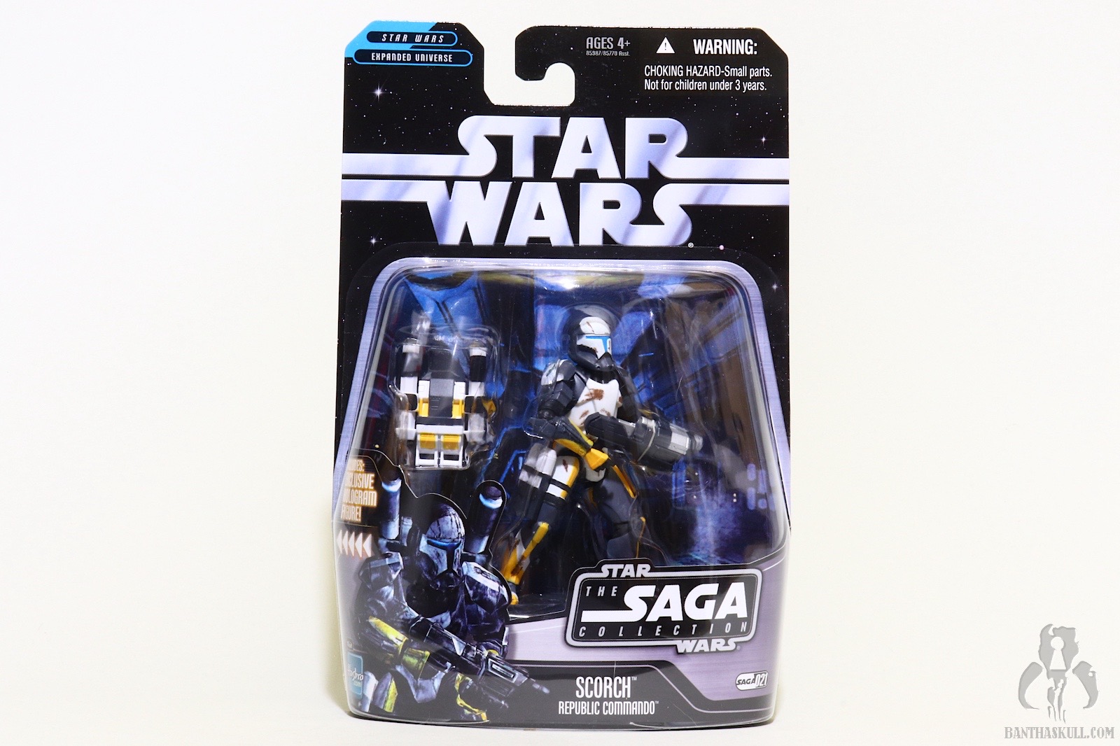 Scorch was selected to be the first member of Delta Squad to be realized in 3.75” action form. I remember thinking it was one of the more awesome figures to hunt down. To add to the fun (if you cared about such things), he was also available in the Ultimate Galactic Hunt silver chase variant. The figure seemed tricky to find at first, but if you had patience, you should have been able to find him.