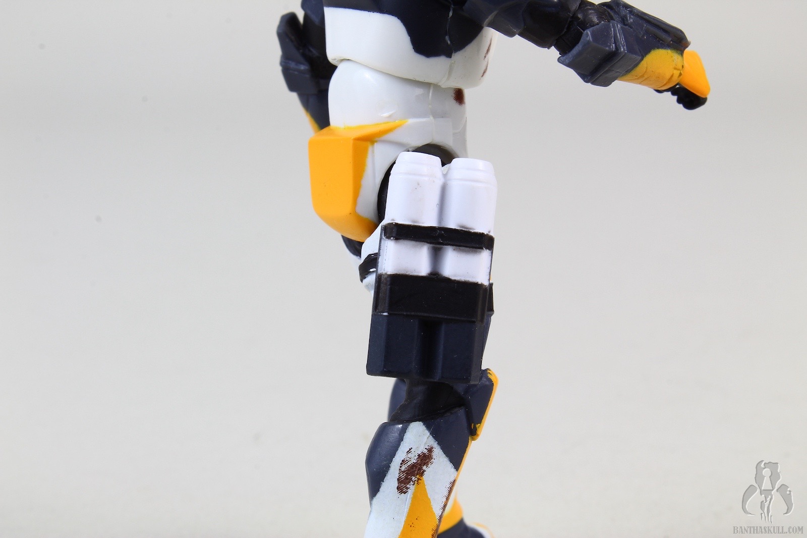 The figure has a removable back pack; a unique design to this trooper. There’s also a canister pack, perhaps for ammo or medical supplies. Like the backpack, it’s removable, but both leave holes behind should you choose to leave them off the figure. For weaponry, Scorch comes with a DC-17m Interchangeable Weapon System, which has silver parts just like some blasters that came in TVC several years later.