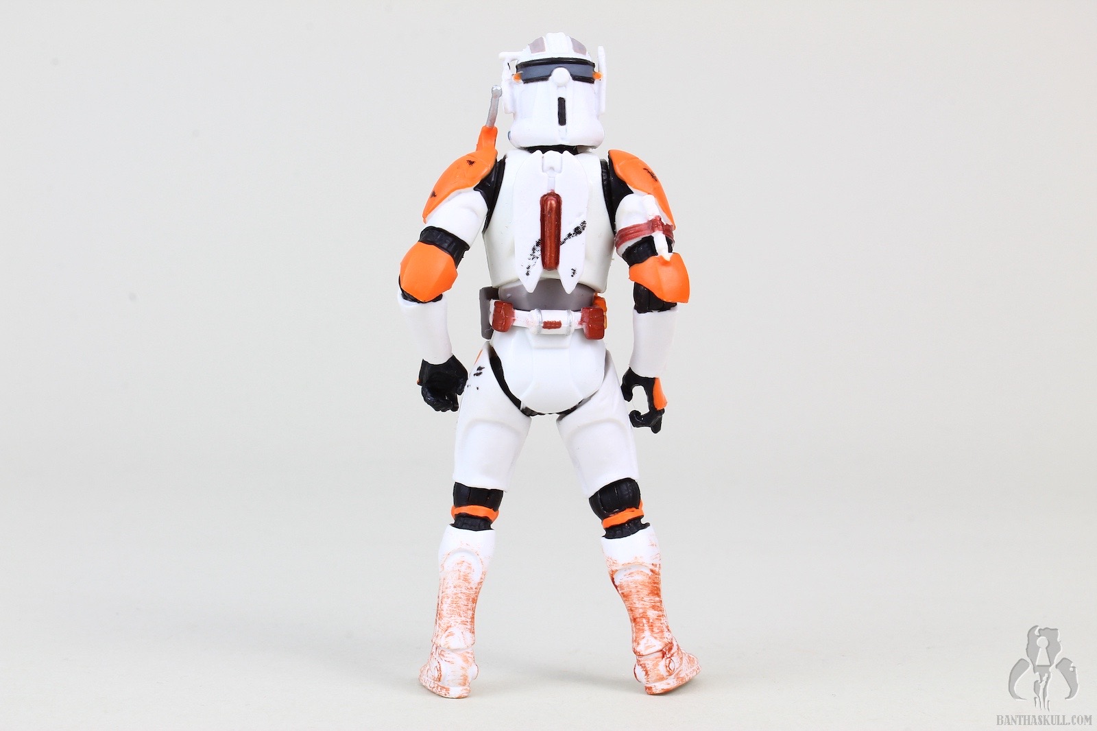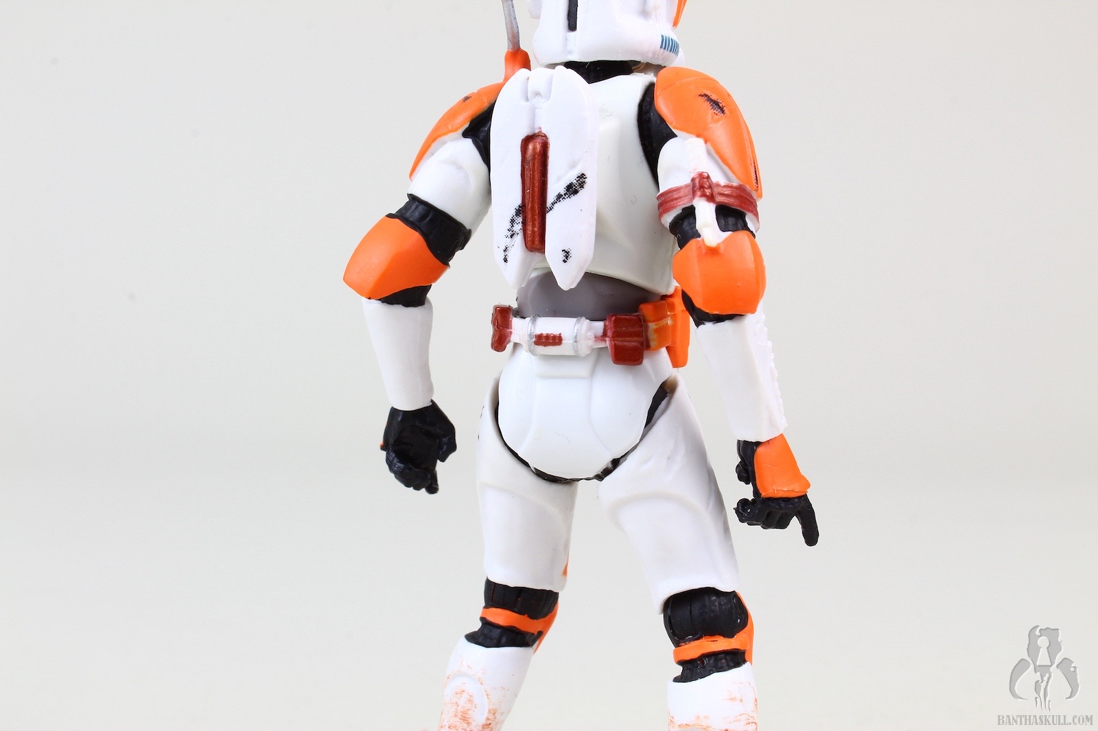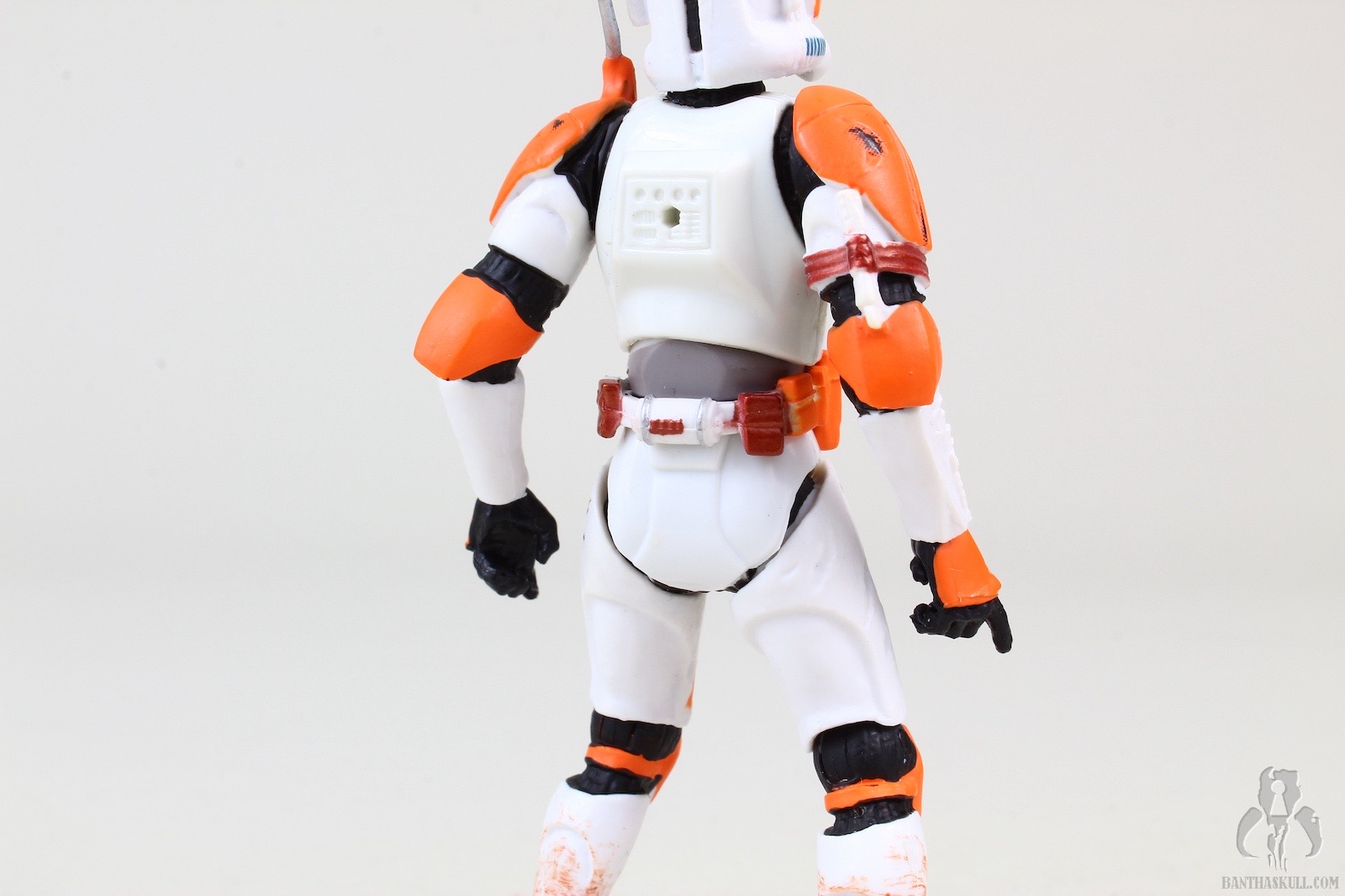 Out of the package, by 2006 standards, he was very good. He had decent articulation. Ball joints at the head, elbows, torso, and knees. He had swivels at the wrists and hips. Sadly, the real problems were that he had swivel shoulders and no ankles. These severely limited the functionality and posability of Cody. The paint applications are excellent, including nice wear on the orange markings, some carbon scoring throughout, and a dirt wash on the lower body. One small problem with the sculpt is that Cody has a somewhat non-neutral pose, which is something that Hasbro should generally avoid.