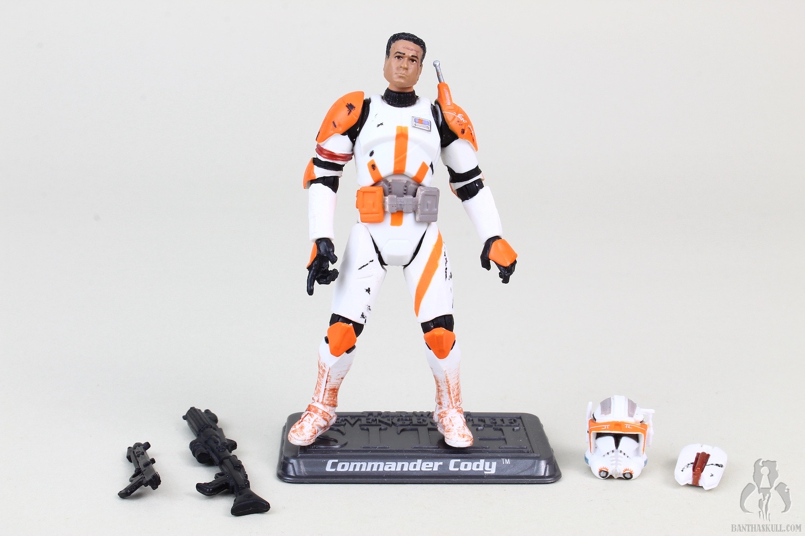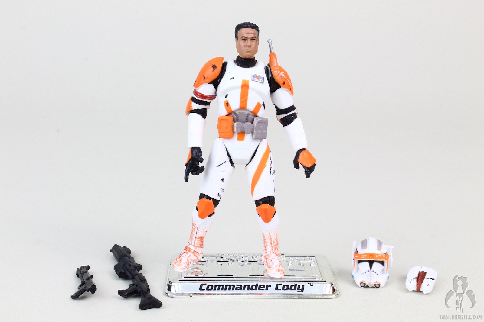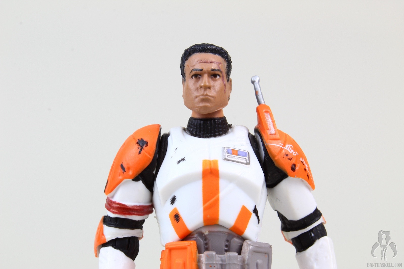 The helmet is a great design, and Hasbro executed the look very well. Unfortunately it’s a bit undersized, and Cody has a bit of a pea head underneath. The likeness to Temuera Morrison is pretty good, complete with some scarring.