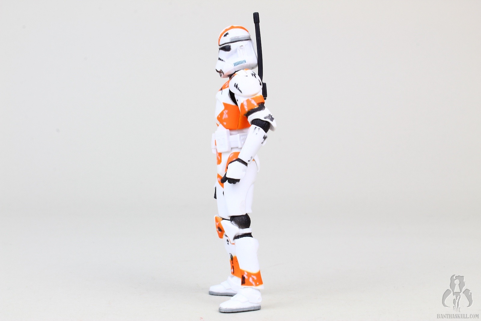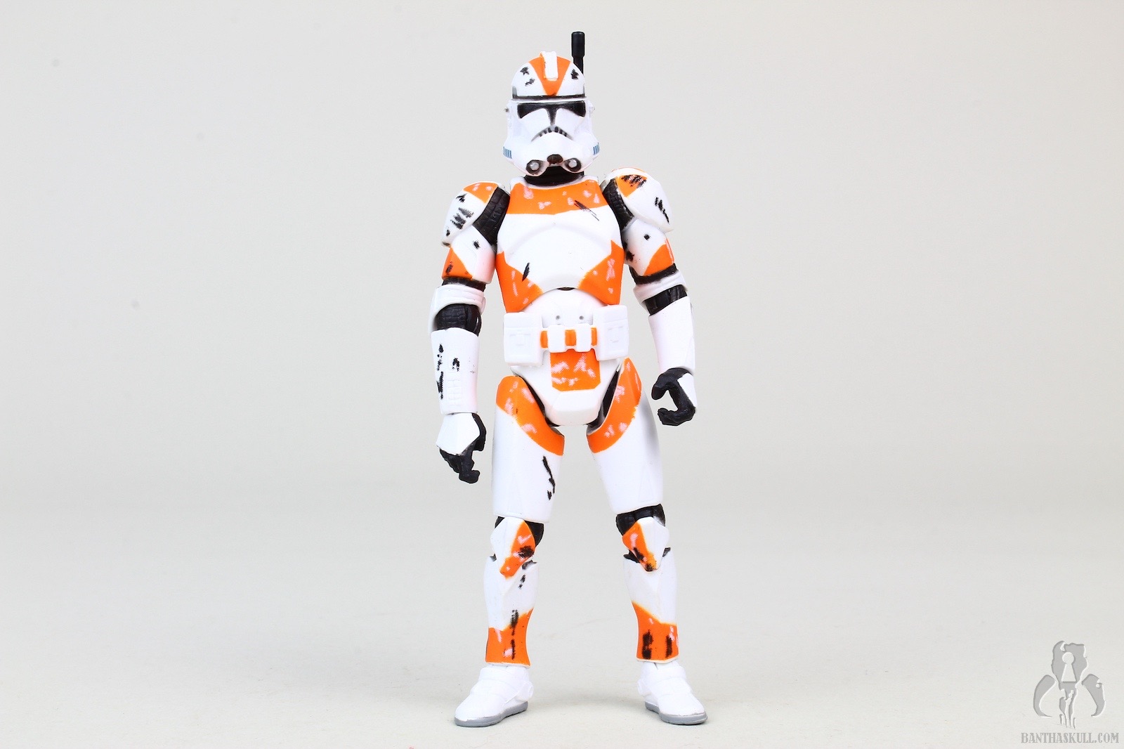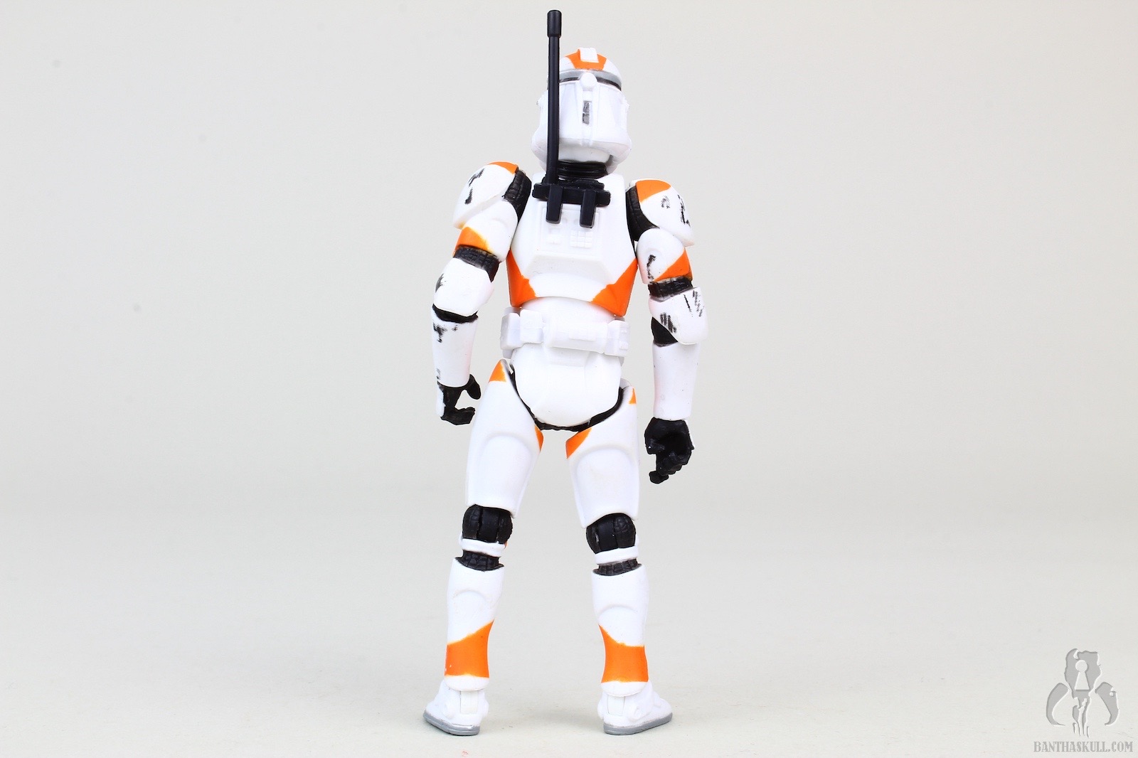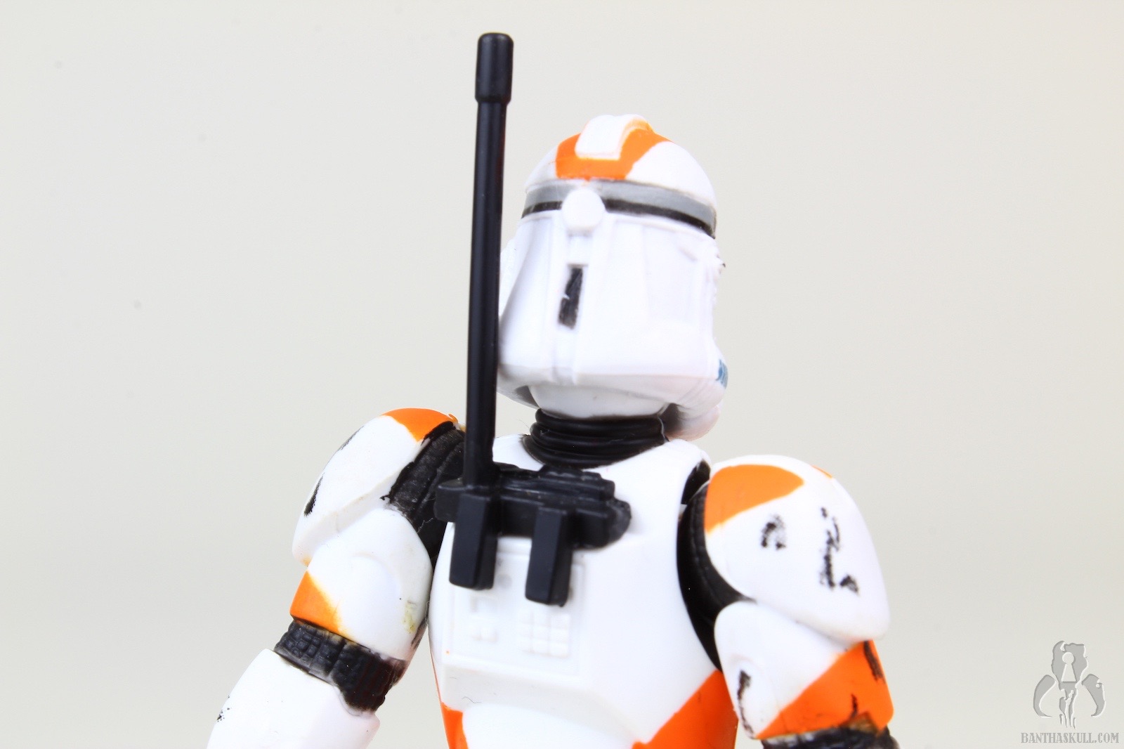 This figure uses the venerable #41 ROTS Clone Trooper mold. Is it perfect? No. It lacks the full suite of modern articulation (no ball jointed hips and wrists). The hands are a bit unforgiving. It’s got the slot in the back for the comms antenna, which wasn’t as common of an accessory as Hasbro would lead us to believe.