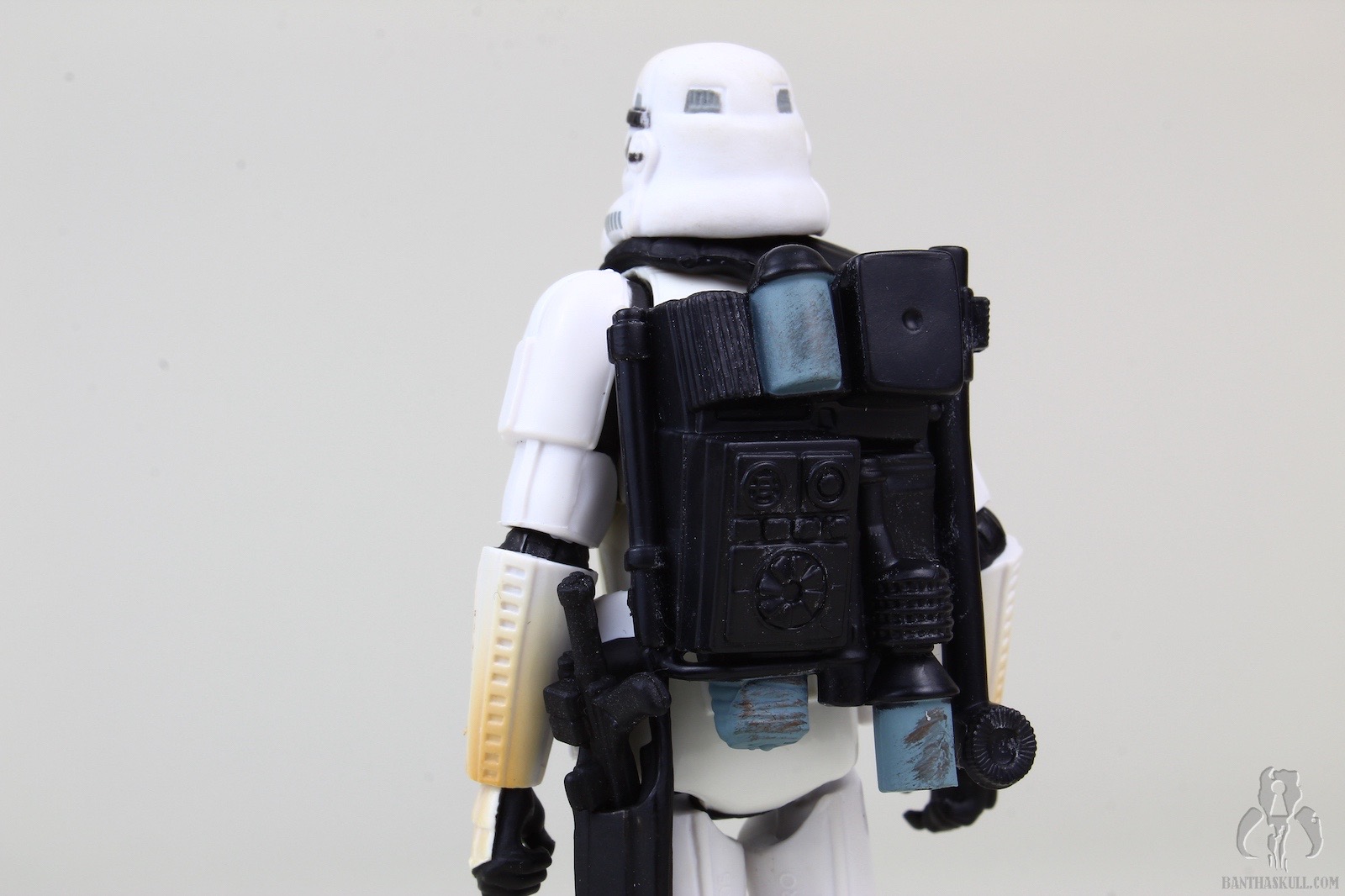 Sandtroopers, for whatever reason, seem to have had an inordinate number of releases over the years. And if you ask the über-nerds out there, they’ll tell you that most, if not all, of them are inaccurate. Typically, Hasbro has simply taken a basic stormtrooper, done a little bit of minor tooling to accommodate some accessories, and called it a day. But Sandtroopers and Stormtroopers have different armor, markings, and helmets. Or something like that. I don’t know. You’d have to ask one of them über-nerds. Also, I wanted to use a few umlauts today. I feel that the word “umlaut” should actually have an umlaut in it. But it doesn’t. Seems dumb.