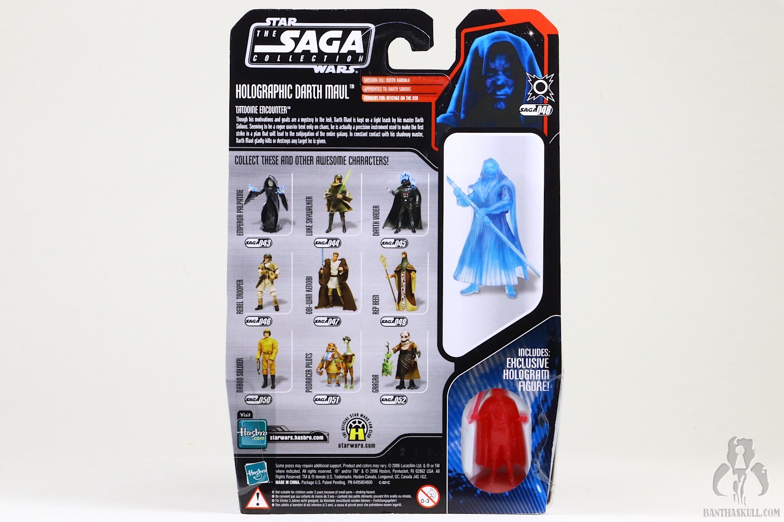 Yet another dud in The Saga Collection. This one is a “repaint” of a previous figure. I use the word loosely, because it’s really an “unpaint.” It’s a “re-plastic.” Here’s another word in “quotes.” Taking the original 7-year old Darth Maul mold, The Saga Collection provides the update of turning it into a translucent blue holographic figure. It was an okay figure in its original form in 1999, but really doesn’t pass muster, even by 2006 standards.
