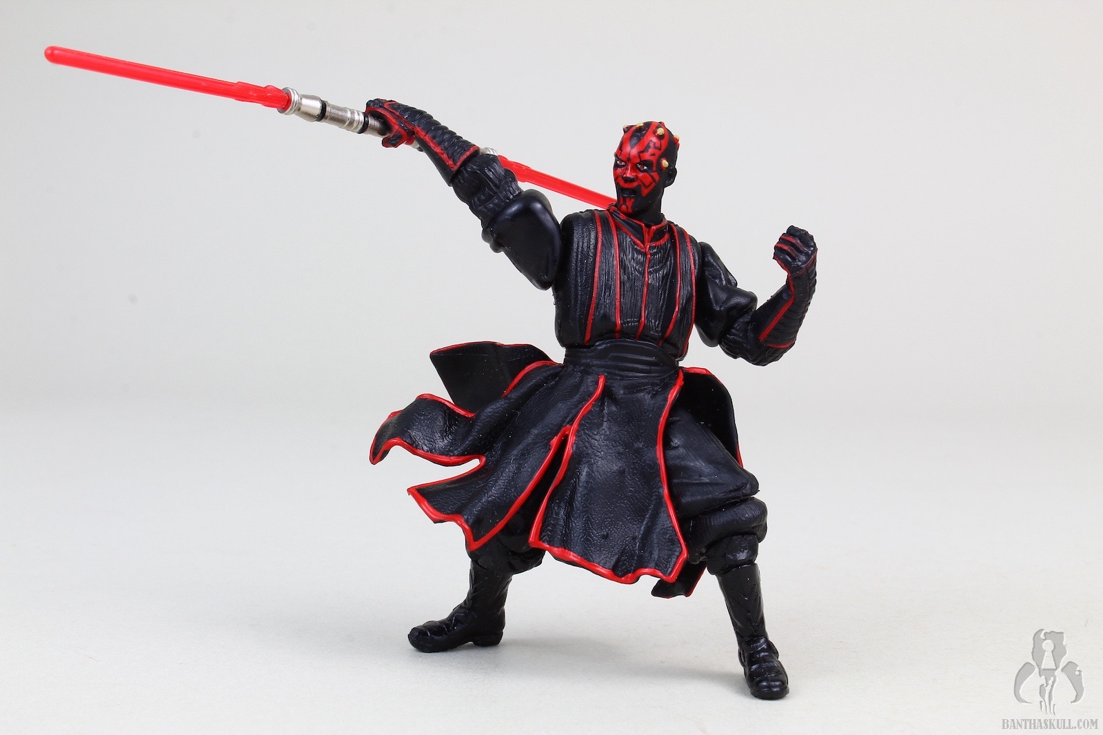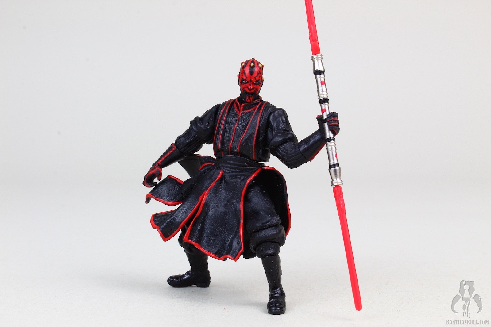 This figure is a repack of the 2002 Saga figure. As such, you get the trifecta of the preposed action stance, a built in action feature, and an embedded magnet. You’d think those things would doom this figure right off the bat. Well, somehow, they don’t. It’s certainly not what we’d be looking for in 2020, but I have to say that even though this Darth Maul is packed with things we hate, it somehow executes them well enough that it manages to be a decent addition to your collection