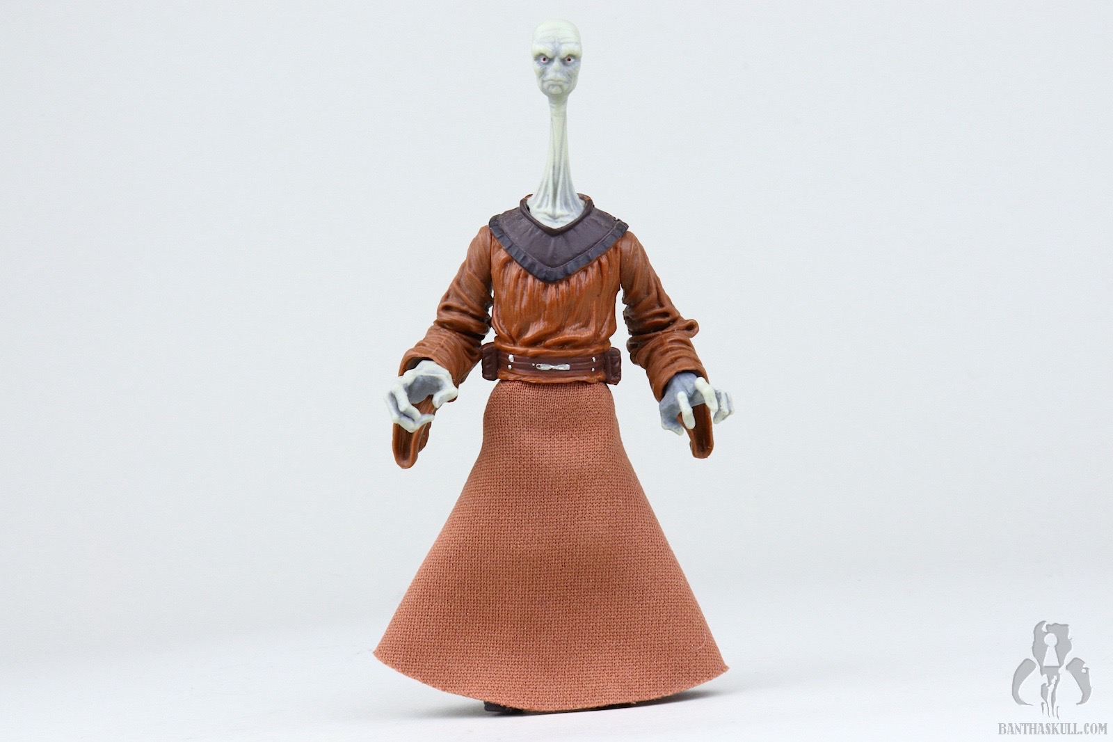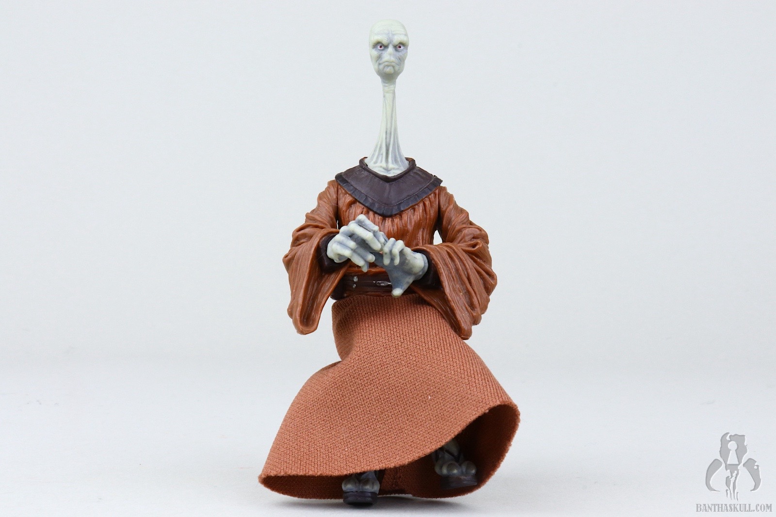 There’s good reason that the figure neither stands well nor grips the saber securely. It wasn’t designed to. This figure is a repack, as are all figures at the end of The Saga Collection run. It was originally released in 2003’s Jedi High Council Cinema Scene. In that release, Yarael came with a chair because that’s what this figure is designed to do. It’s purpose built to sit and pass judgement on 7 year old little boys for being afraid. And I don’t blame Anakin for being afraid. Look at this guy. He’s creepy. To that end, this figure sits quit well, especially considering its age. That is facilitated by a single hinge at the waist and two hinged knees which bend to a full ninety degrees. Given that its primary job is to simply sit there while looking exotically strange, it’s not a terrible figure despite the inability to stand assuredly. Even today, I feel this is a 5 out of 10 figure.