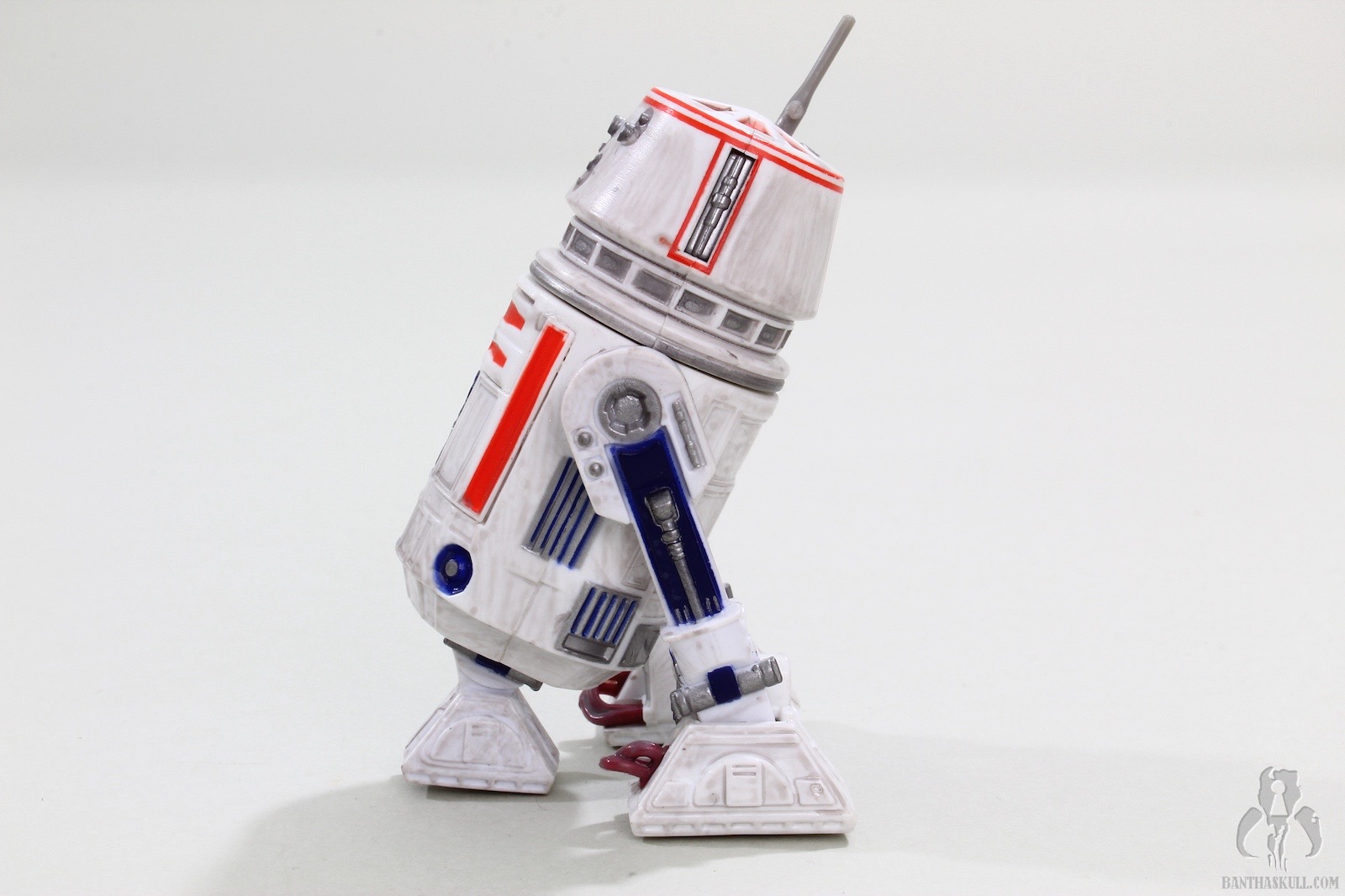 Not being the BAD mold means there is one additional advantage here over the TVC figure: it lacks those extra holes on either side of the barrel body, towards the bottom. Interestingly, this was FINALLY rectified recently with the TLJ (5POA basic line) R2-D2. Such a fix to the mold back in 2011 would have likely made the TVC release more palatable. On the negative side, there is one missing paint detail that was actually added to VC40: The blue horizontal stripe just below the dome, and above the red chest panels. It’s one minor detail where this TSC figure loses out to its TVC successor.