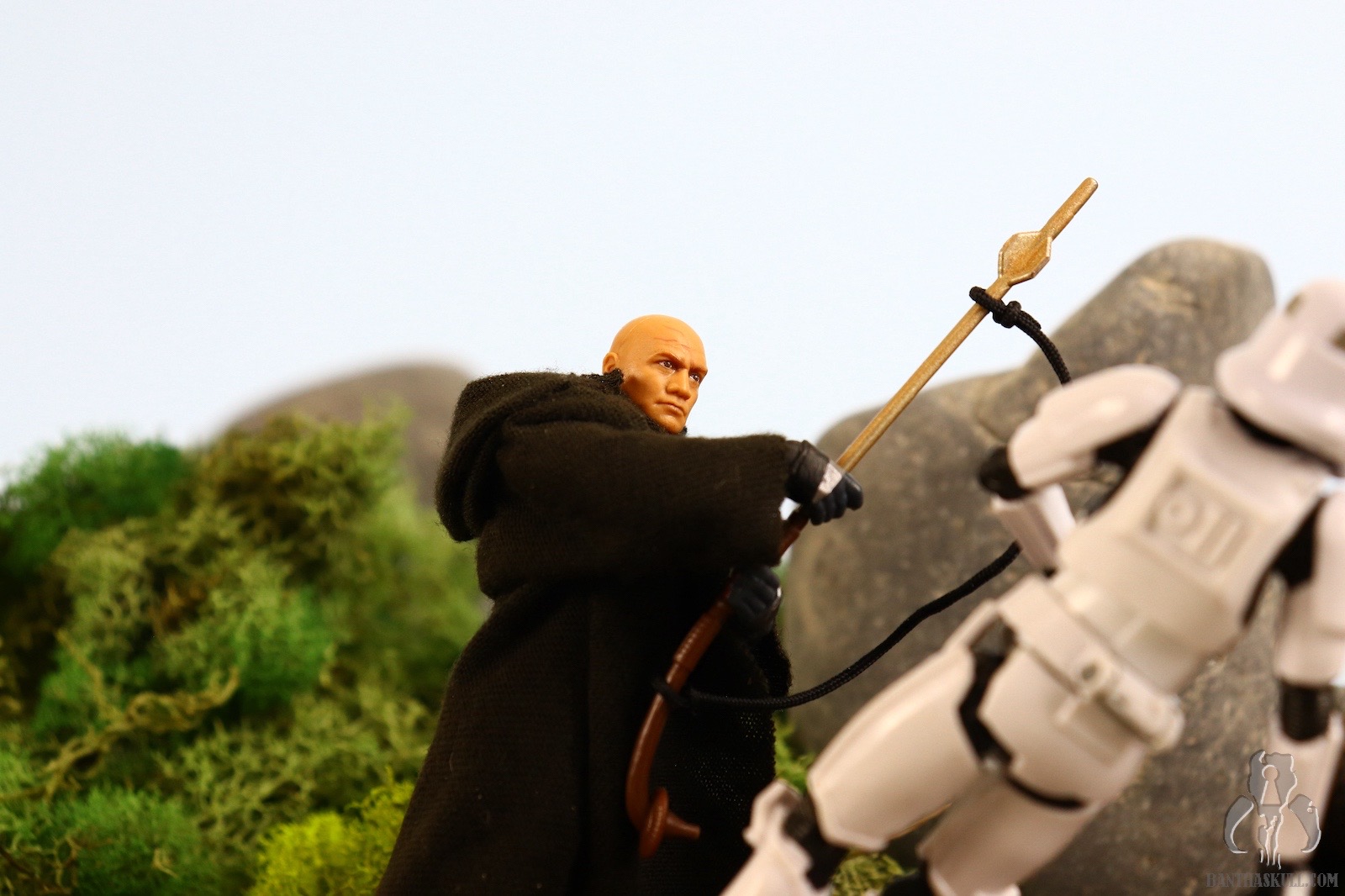 The rifle sling is sculpted plastic, which stays very securely on the figure’s back. The gaffi stick sling is a piece of black string that can slide up and down almost like a cinch, but it doesn’t stay in place nearly as well as the rifle. It tends to sag. This “nomad” Fett interacts much better with the gaffi stick than it does the rifle. Realistic and dynamic fighting poses are easily achieved. It makes me wish that the figure came with a swappable head to capture some of Morrison’s more manic facial expressions when he was shattering helmets on Tython. My only complaint is that the grip is a little loose, which can result it the the gaffi stick sliding, spinning, or dropping entirely. Overall though, I love this figure, and it’s a 9 out of 10.