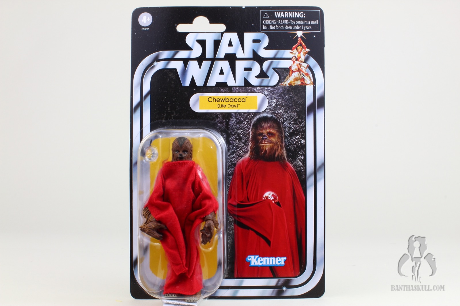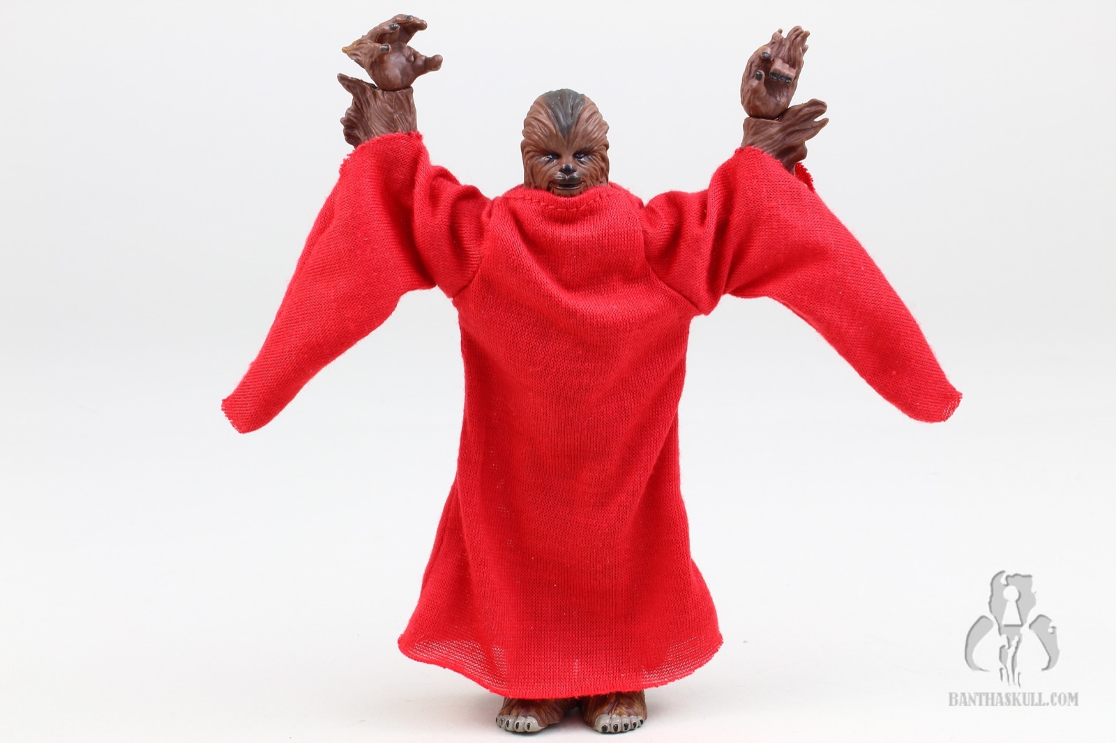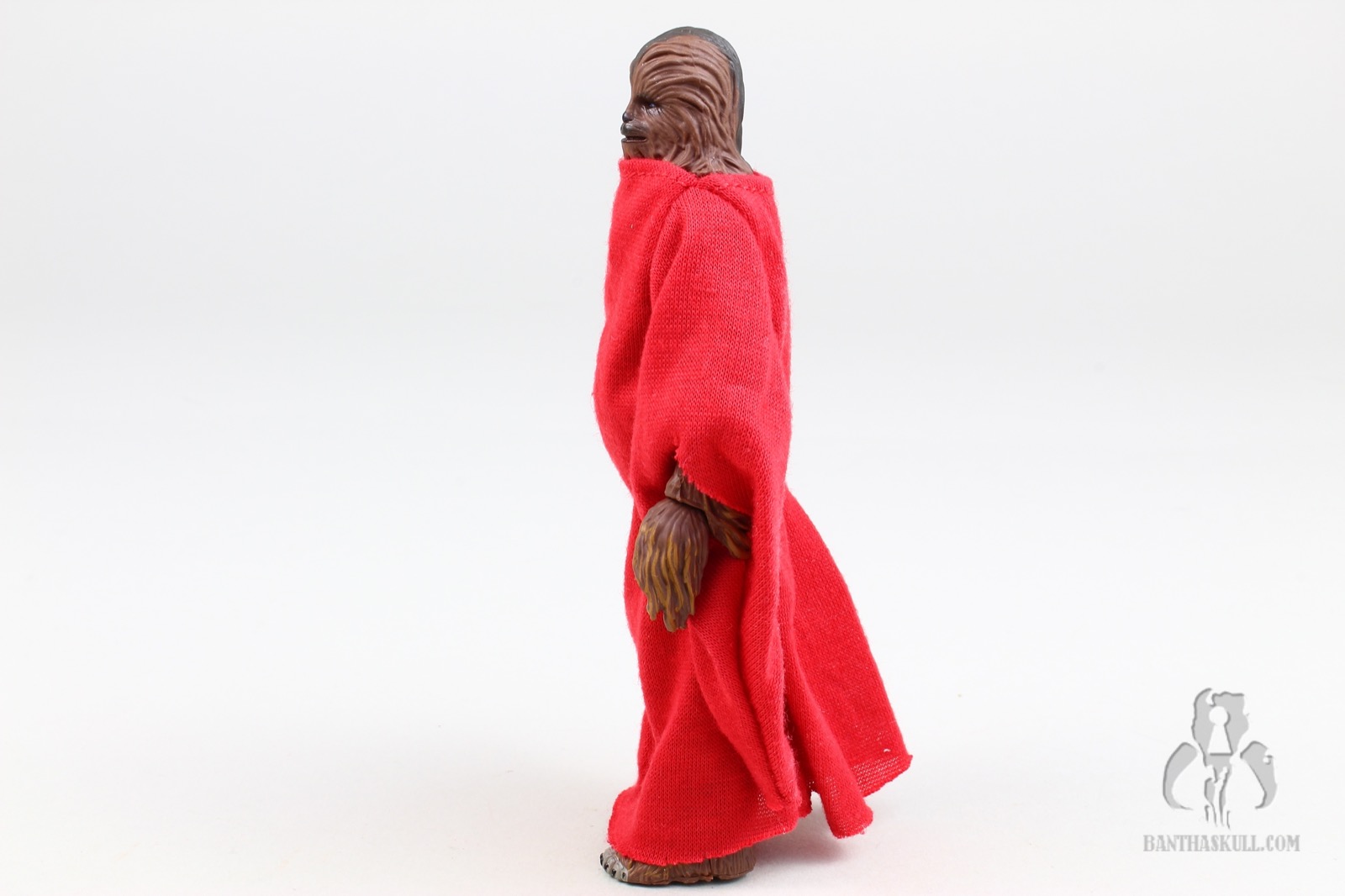 Another piece of newness is the included red robe. It is made out of a thin, but nicely draped soft goods material. The forearms hang very low, and are a bit reminiscent of Palpatine’s robes. They fit Chewy perfectly, and don’t really hinder the range of motion of the arms or legs. Perhaps if the figure had ball jointed hips, that might make a difference, but otherwise it’s very well done. Also included is the aforementioned Life Day Orb, which fits perfectly in Chewy’s open right hand. The bottom of the orb is flat, so that you can put it on a surface without it rolling away. Finally, there’s an all new paint job, which is distinctive from most of the other variants in the figure’s 20 year history.