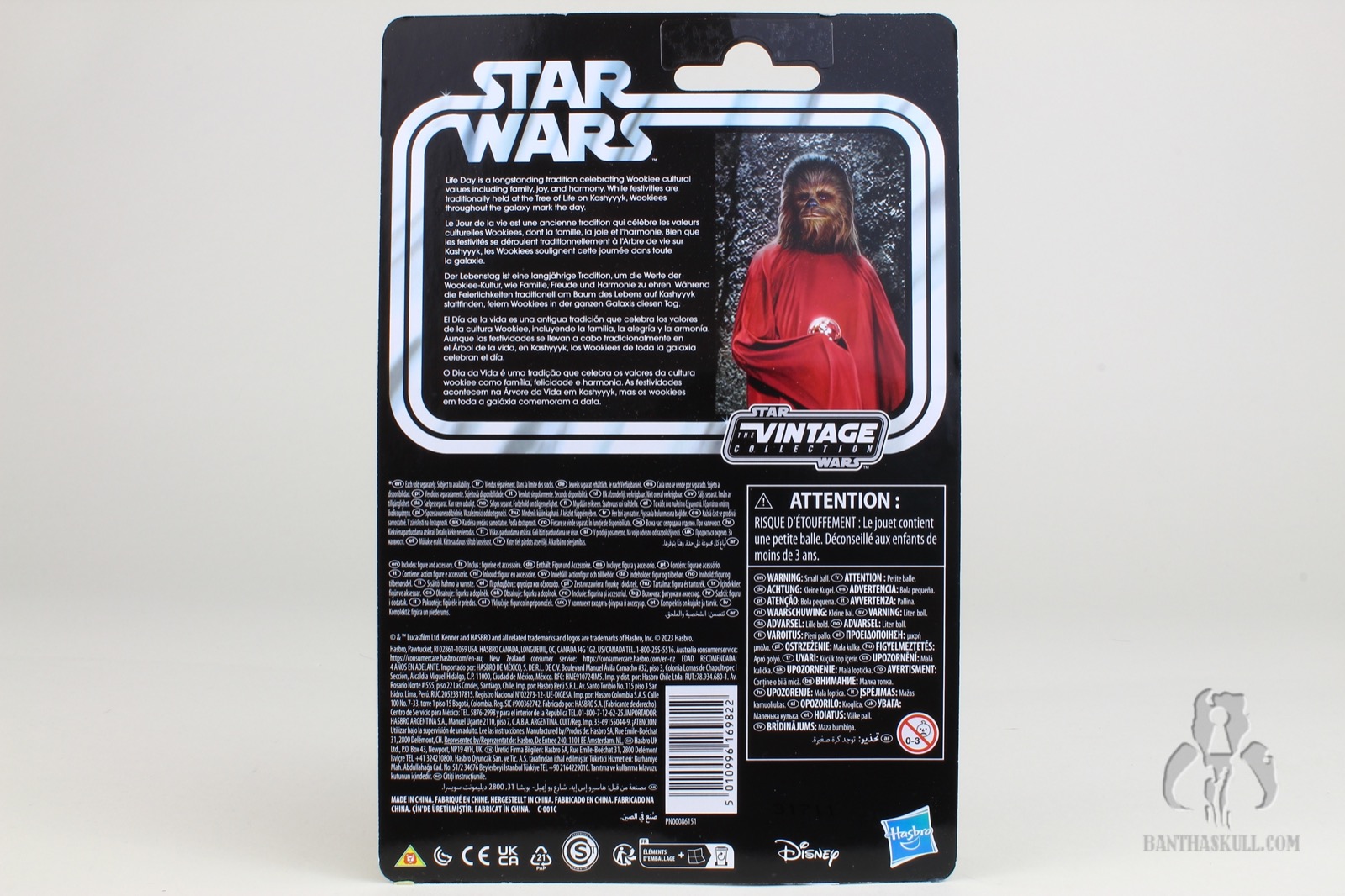 Now in reality, this is actually the third such figure in the modern 3.75” line and all 3 are pretty low key in their approach to acknowledging the source. In 2001, we got Zutton in the Power of the Jedi line. It was labeled as Zutton, with no mention of the Holiday Special on the packaging, but the image of the character is that of fellow Snivvian Zutmore from that source. A few years later, we got Boba Fett (Animated Debut) from the 2007 Thirtieth Anniversary Collection. While it is clearly sourced from the character’s first appearance in the animated short that was part of The Special, no specific mention is made on the front of the card. However if you read the fine print bio on the card back, it does mention The Holiday Special. Recently, this 9 minute short was put on Disney+, but the rest of the horror show is still MIA. So now we get to 2023, 45 years after it aired, and Hasbro gives us VC Chewbacca (Life Day). Nowhere on the card front or back does it mention The Holiday Special. Even “Life Day” is now canon, as it was mentioned in passing in The Mandalorian.