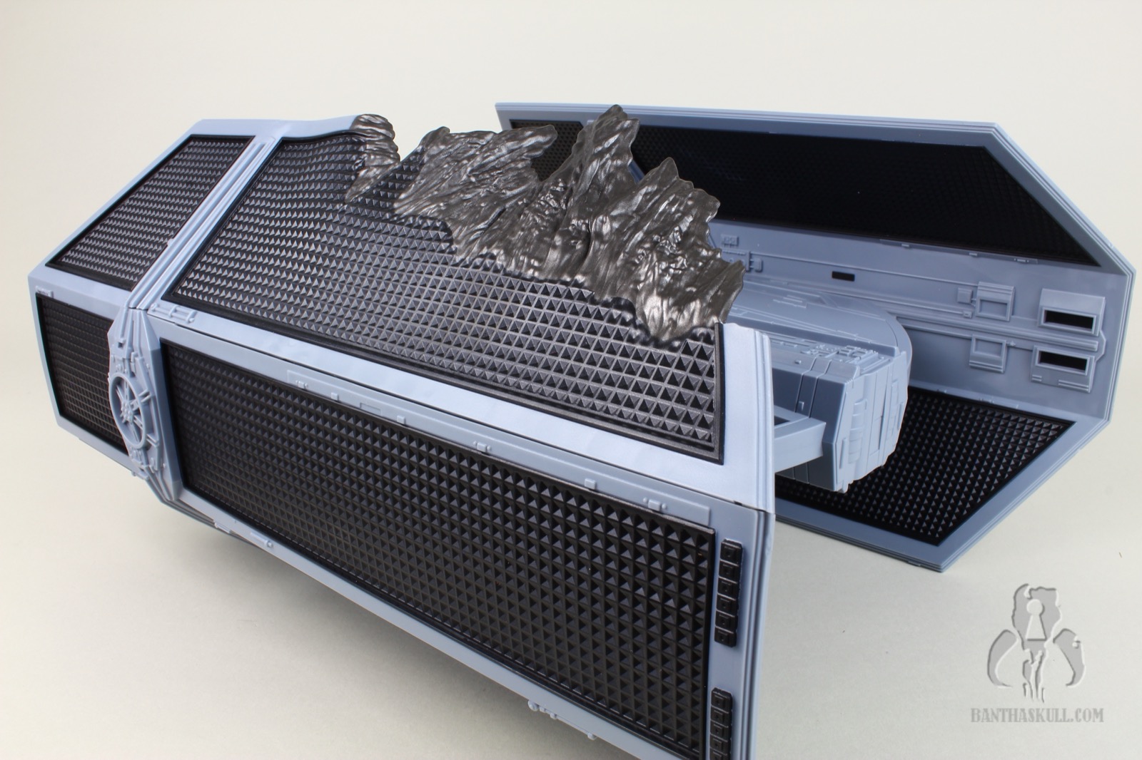 The biggest change here, is interesting to me mostly because I learned something new about Star Wars. I had never noticed the actual damage sustained by Vader’s TIE after it was crashed into by one of his wingmates in the trench after Han Solo’s attack. Never noticed it, and never thought about it. But you can make out the damaged wing in the film if you look closely. Hasbro provided an alternate panel for the left wing that allows you to recreate this moment, if you so desired. It’s a nice touch, for sure, even though I’ll likely never display it that way.
