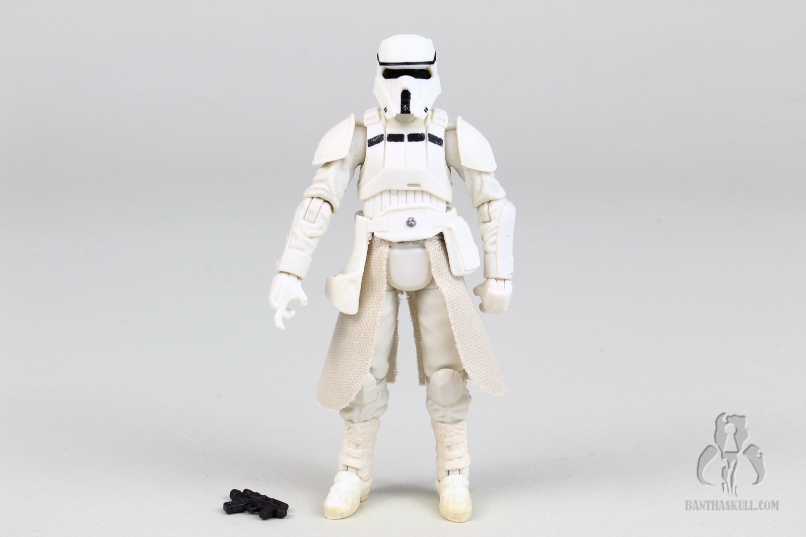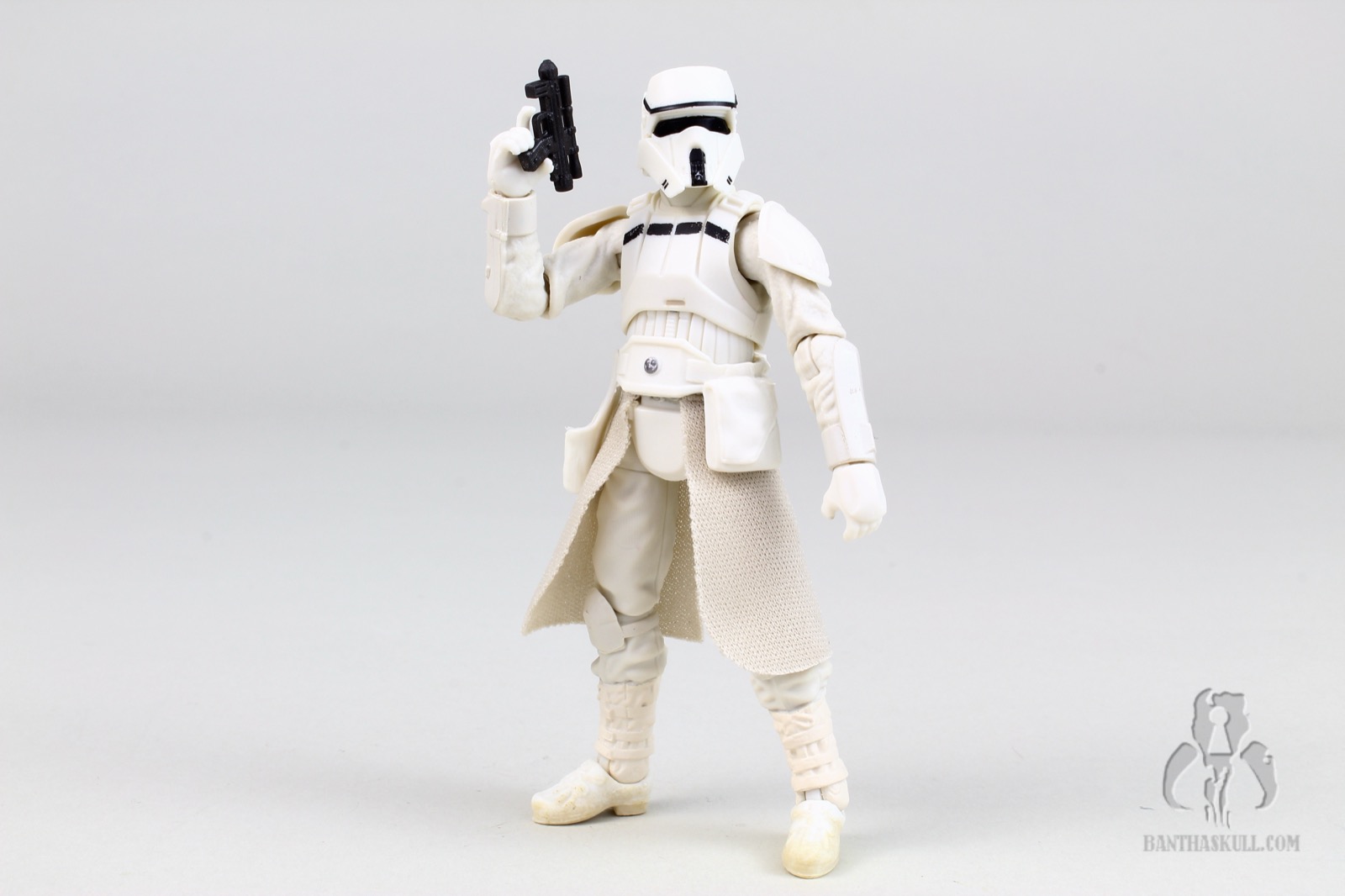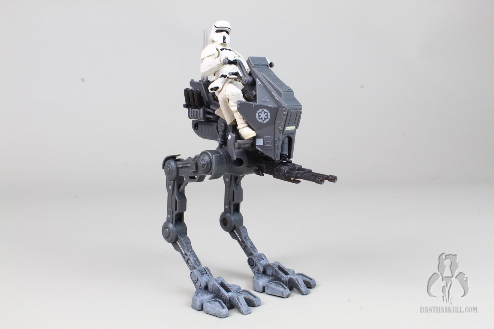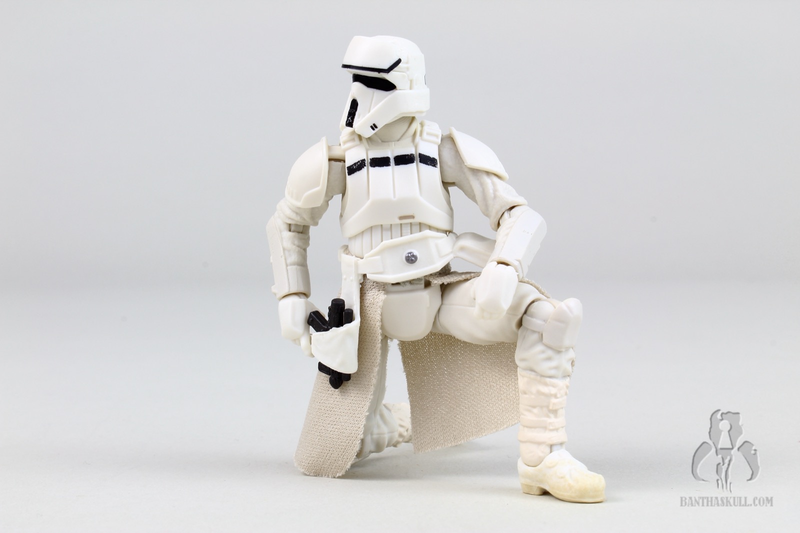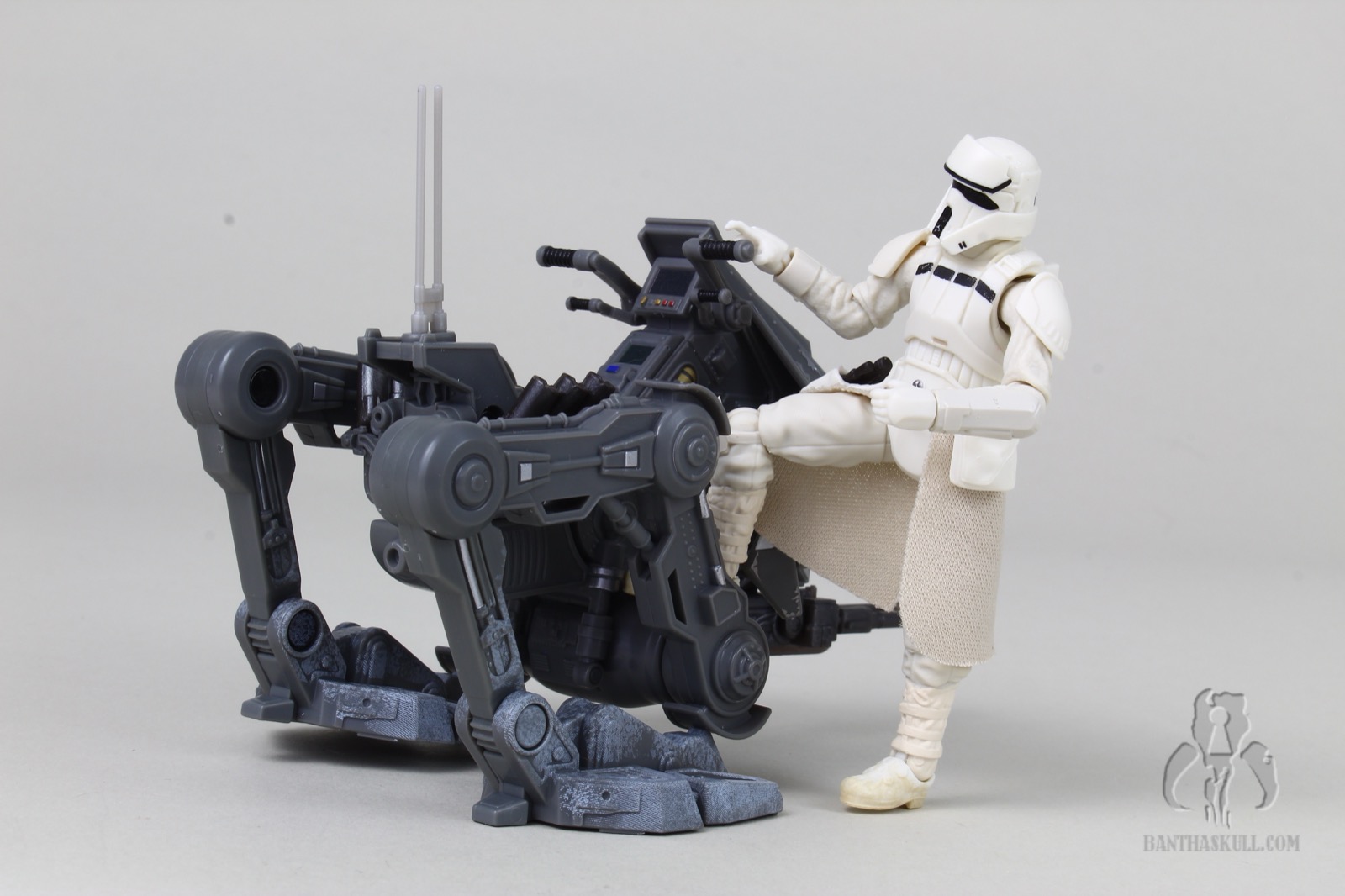 The figure is about as good as you’d expect. It looks like a kit bash of the recent Snowtrooper, along with a new chest and helmet (which may be retooled from the decade-old Shore Trooper - I can’t tell). He’s got a new belt/holster accessory (different from the Snowtrooper Commander), and includes a blaster. The blaster fits nicely in the holster, but it’s a little loose in the right hand of the figure. He’s also got a floating trigger finger that doesn’t make it inside the trigger guard. But even though it’s familiar, it’s still feels different. The articulation is basically the same as the Snowtrooper. He’s got the wrists with opposite plane joints, which actually doesn’t help when he’s trying to grip the controls. With a small amount of patience, the driver can grip both handles and put both feet onto the pedals. The grips and pedals are all articulated to assist with a decent enough fit - it just takes a minute to get it done the way you might want. Surprisingly the pedals do not have pegs for the feet, so they don’t exactly “lock” into place. But it all comes together well enough.