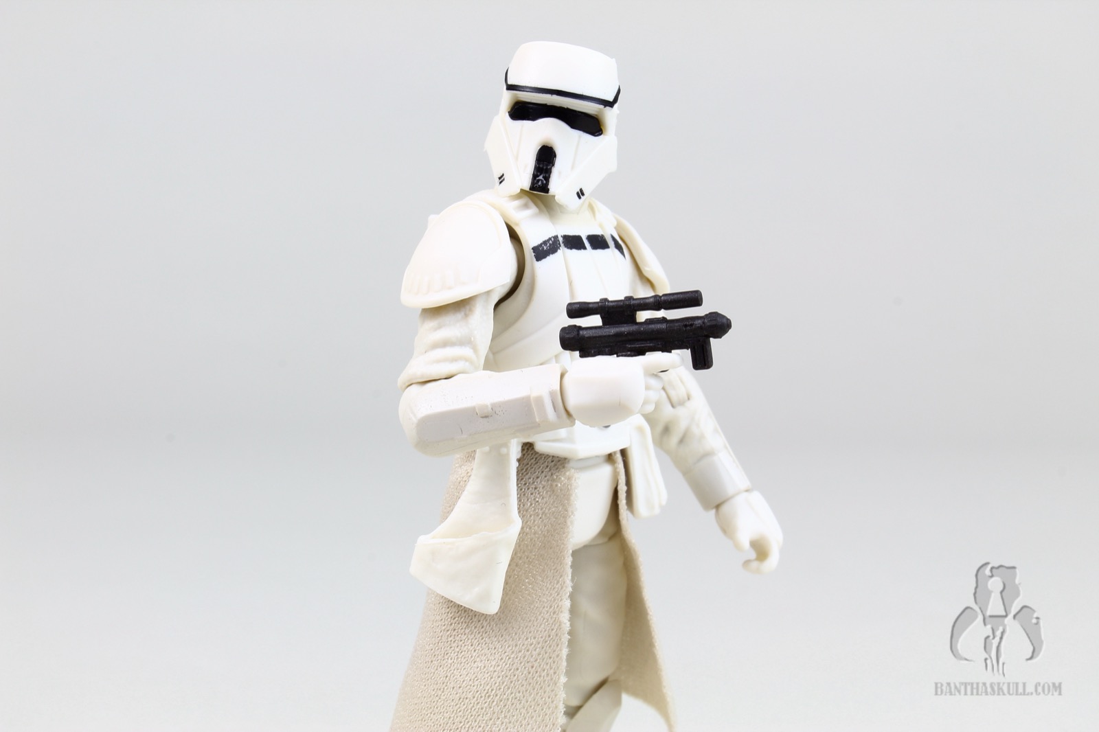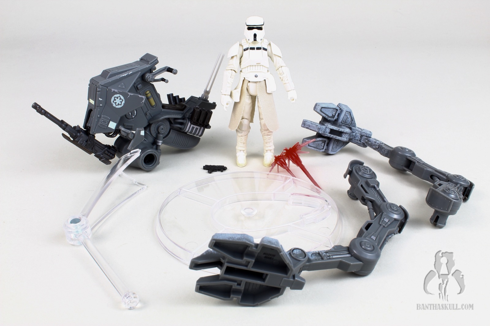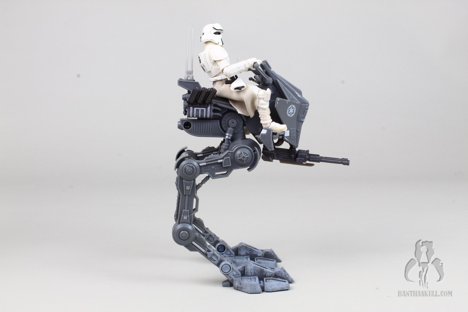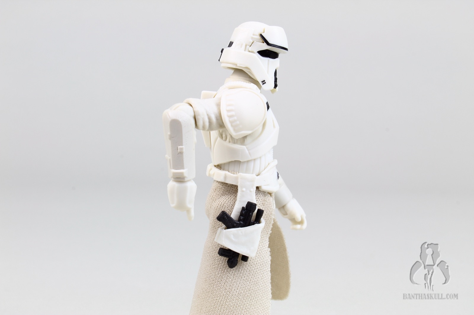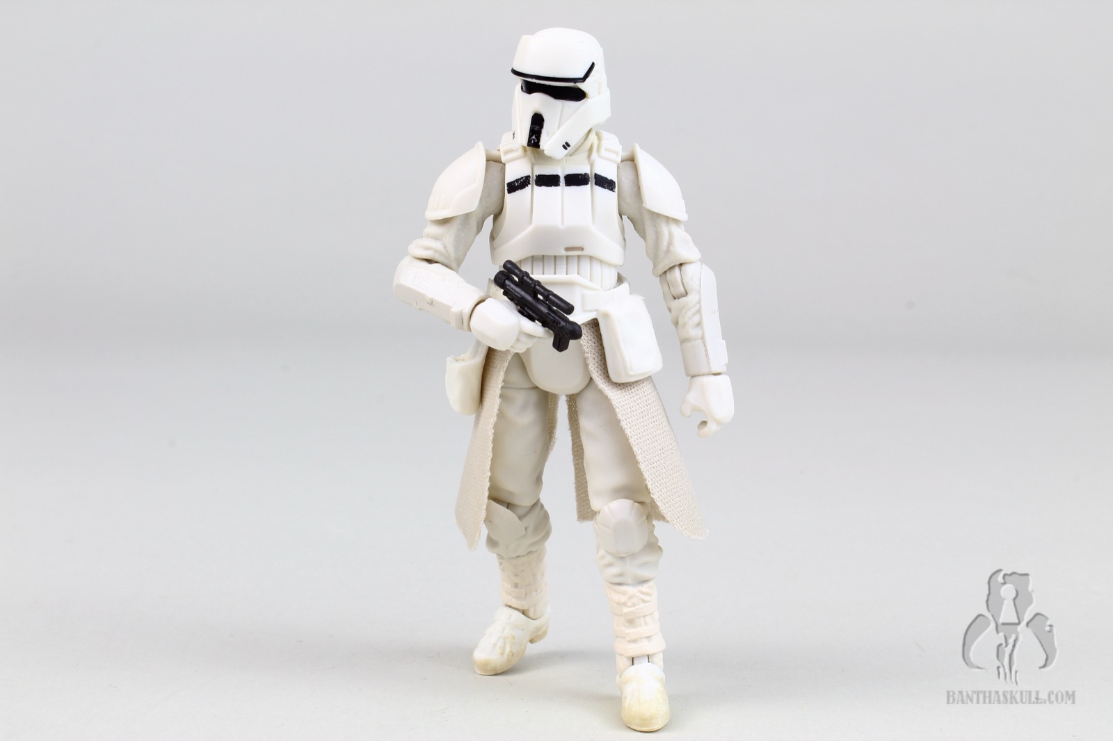 The figure is about as good as you’d expect. It looks like a kit bash of the recent Snowtrooper, along with a new chest and helmet (which may be retooled from the decade-old Shore Trooper - I can’t tell). He’s got a new belt/holster accessory (different from the Snowtrooper Commander), and includes a blaster. The blaster fits nicely in the holster, but it’s a little loose in the right hand of the figure. He’s also got a floating trigger finger that doesn’t make it inside the trigger guard. But even though it’s familiar, it’s still feels different. The articulation is basically the same as the Snowtrooper. He’s got the wrists with opposite plane joints, which actually doesn’t help when he’s trying to grip the controls. With a small amount of patience, the driver can grip both handles and put both feet onto the pedals. The grips and pedals are all articulated to assist with a decent enough fit - it just takes a minute to get it done the way you might want. Surprisingly the pedals do not have pegs for the feet, so they don’t exactly “lock” into place. But it all comes together well enough.