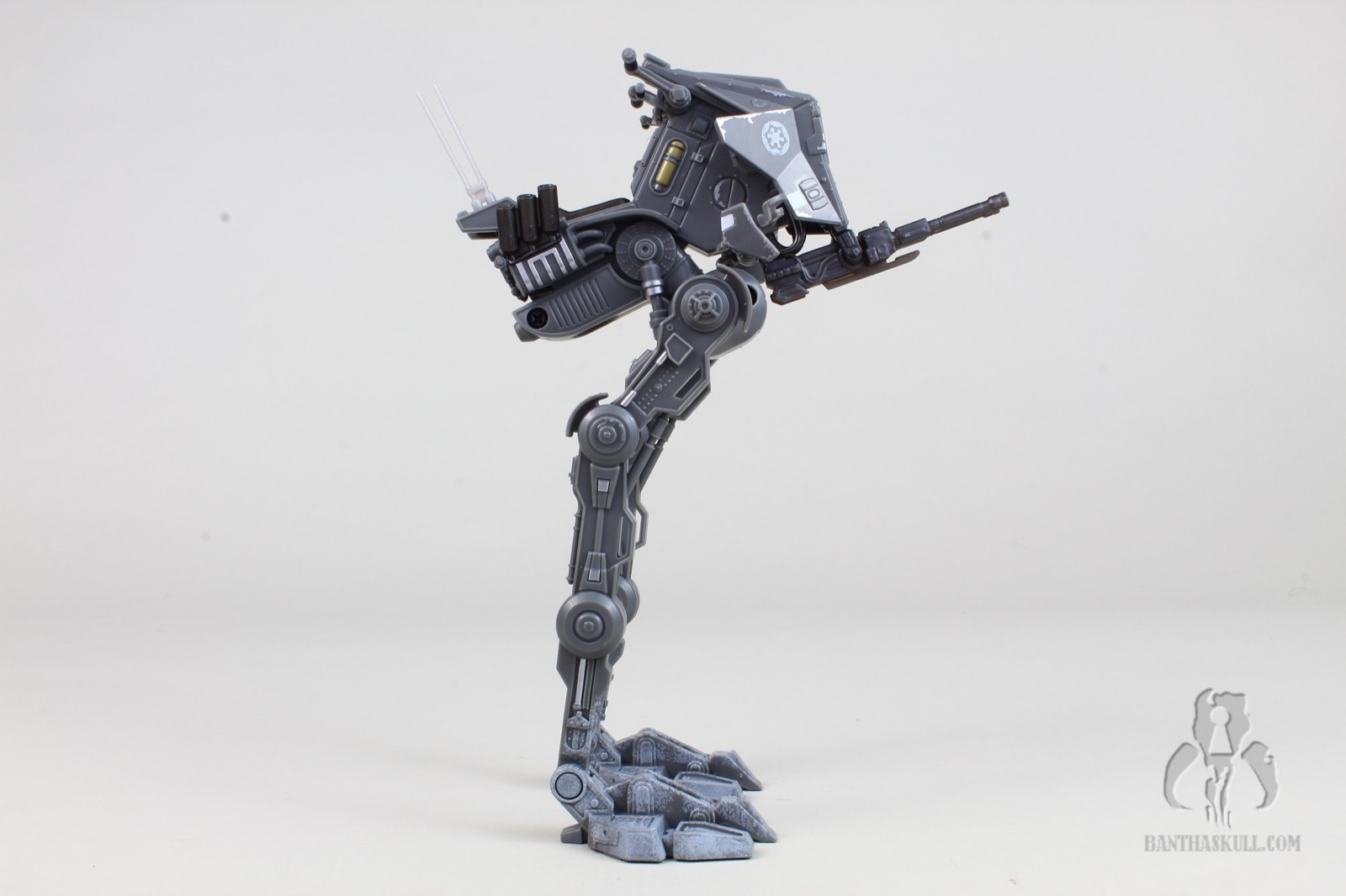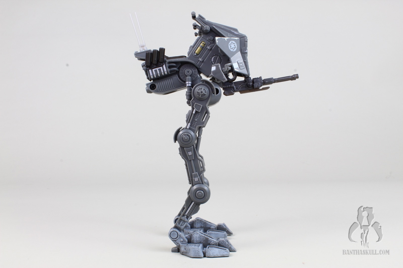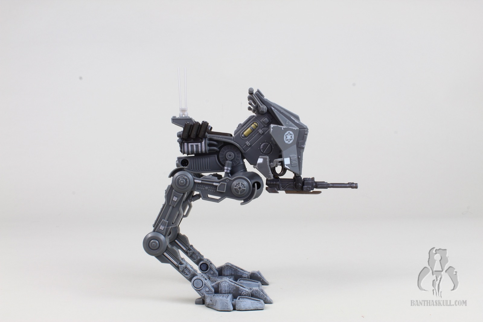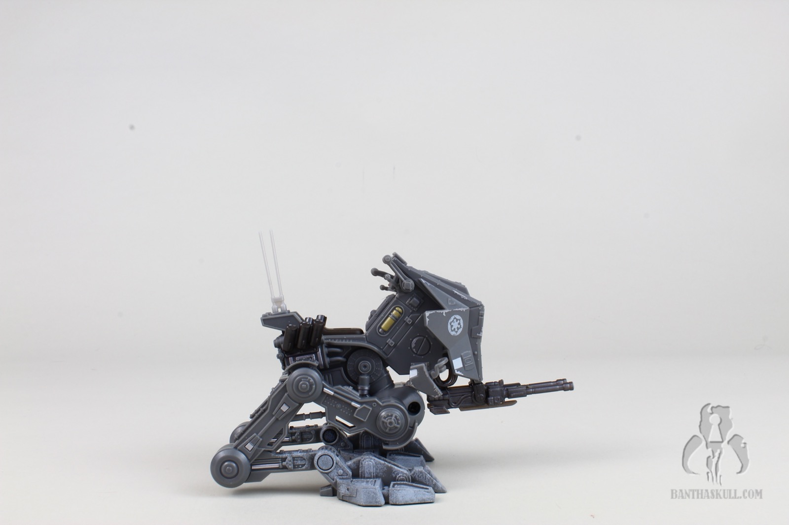 The vehicle is painted fairly simply. It looks like it was cast in some dark gray, and that’s like 95% of the color. There are a few silver highlights added to the machinery, as well as a few nice wear-and-tear marks of silver on the main armor. The feet and lower legs are covered in what I assume is meant to be snow, but it looks really good.