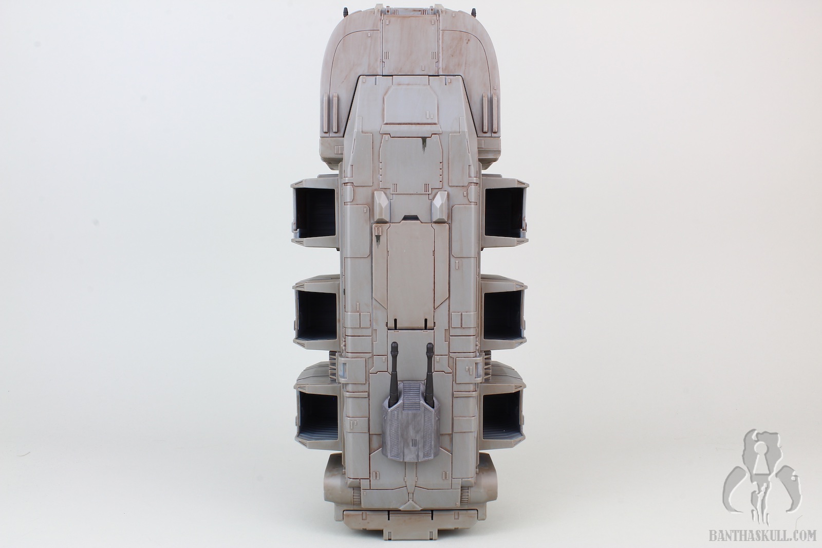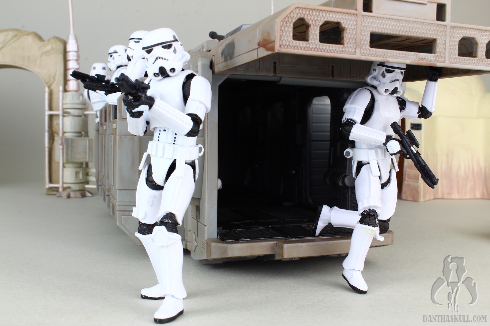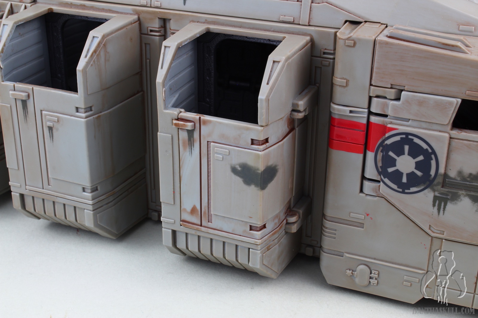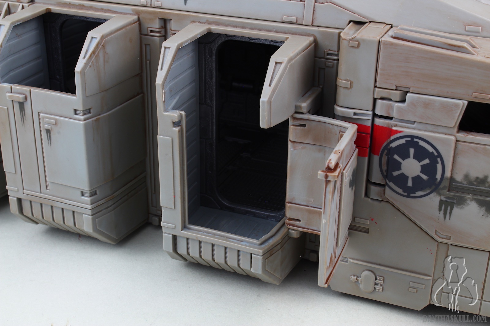 This release was a surprise to be sure. Along with Baby Yoda, it seems that The Mandalorian is full of top secret reveals. With barely any leaks (save a rumor of something codenamed “duck boat”), online retailers posted the Imperal Troop Transport on February 4, 2020. That same day, Hasbro made its official announcement and product reveal. And just like that, pre-orders were being fulfilled and shipped. I received my sample via Entertainment Earth (Sponsored Link) a mere 7 days later. And on that 7th day, there was no rest for Banthaskull. We quickly put this gallery together so that if you haven’t already made this purchase, you may decide to do so after perusing our photos and review. Or, you could just be a terrible human being, and decide not to.