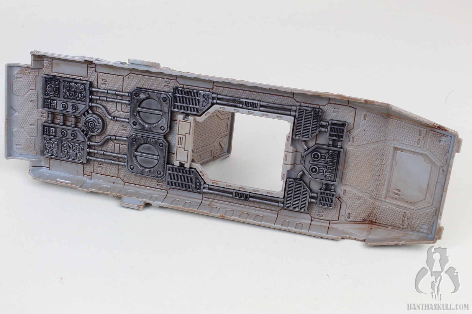 Seriously this thing is awesome. It’s solidly built, and rather hefty. The sculpt is tremendous, as is the weathering applied throughout. Hasbro has really upped its game on the details in the past couple of years with its vehicle offerings. The Rogue One Combat Assault Tank, The Khetanna, and others have been tremendous collector-grade offerings in the current iteration of TVC. And the trend continues with the Imperial Troop Transport.