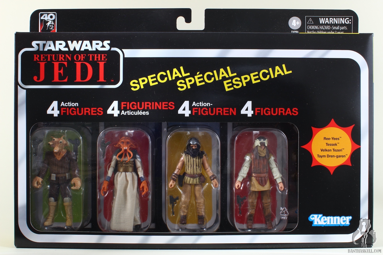 When this set was announced, most long-time collectors either collapsed onto the floor in sheer joy, or thought it was some kind of cruel prank. It is comprised of 4 background aliens - Tessek is an overdue update to a classic, Velken Tezeri and Taym Dren-garen are character debuts, and Ree-Yees is Ree-Yees. It was the first three that got all of the positive attention, and the last that got whatever hate people managed to muster during the moment of adulation. It seemed to take forever, but in October of 2023, it has finally arrived.
