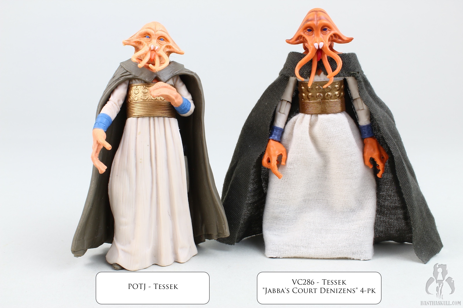 I saved this for the last review of the 3 new figures in the Jabba’s Court Denizens 4-pack [An overview of the set, including the repacked Ree-Yees, will be up tomorrow.] because I feel this one is the most important as to what it means for TVC. VC286 Tessek is great because it updates a character that we’ve had for 40 years since Kenner in 1983. Many of us remember it from childhood, and even if you’re too young for that, you at least are aware of its status as one of the root figures of world-building. Squid Head was a nameless, weird, background alien with no speaking lines, and yet Kenner made him, keeping strong the tradition started by the cantina alien figures 6 years earlier. The version not only updates even the more recent POTJ figure, but also brings it home for the O96 folks. Meanwhile, VC287 Taym Dren-garen is an incredible release because not only does he speak no lines, he doesn’t even have the desirability of being a weird alien. He’s just a guy that has never been made before. But he is all over the palace, and he does have an iconic moment on the Khetanna as the guy who shoots Luke, and for that alone, he is a key addition to the line.