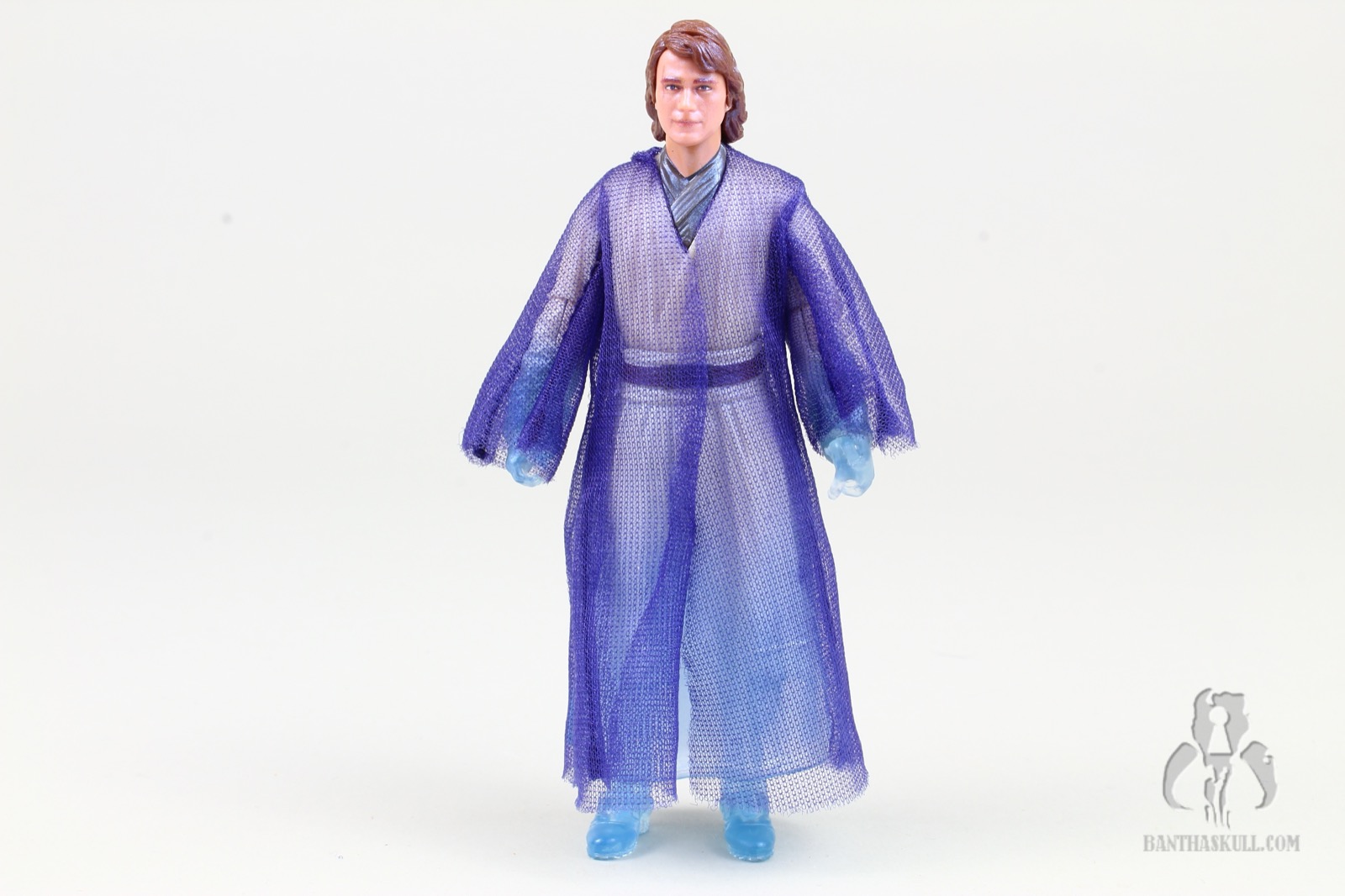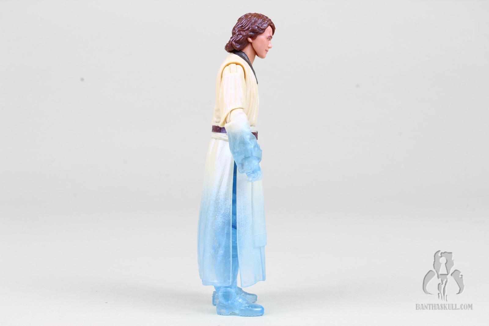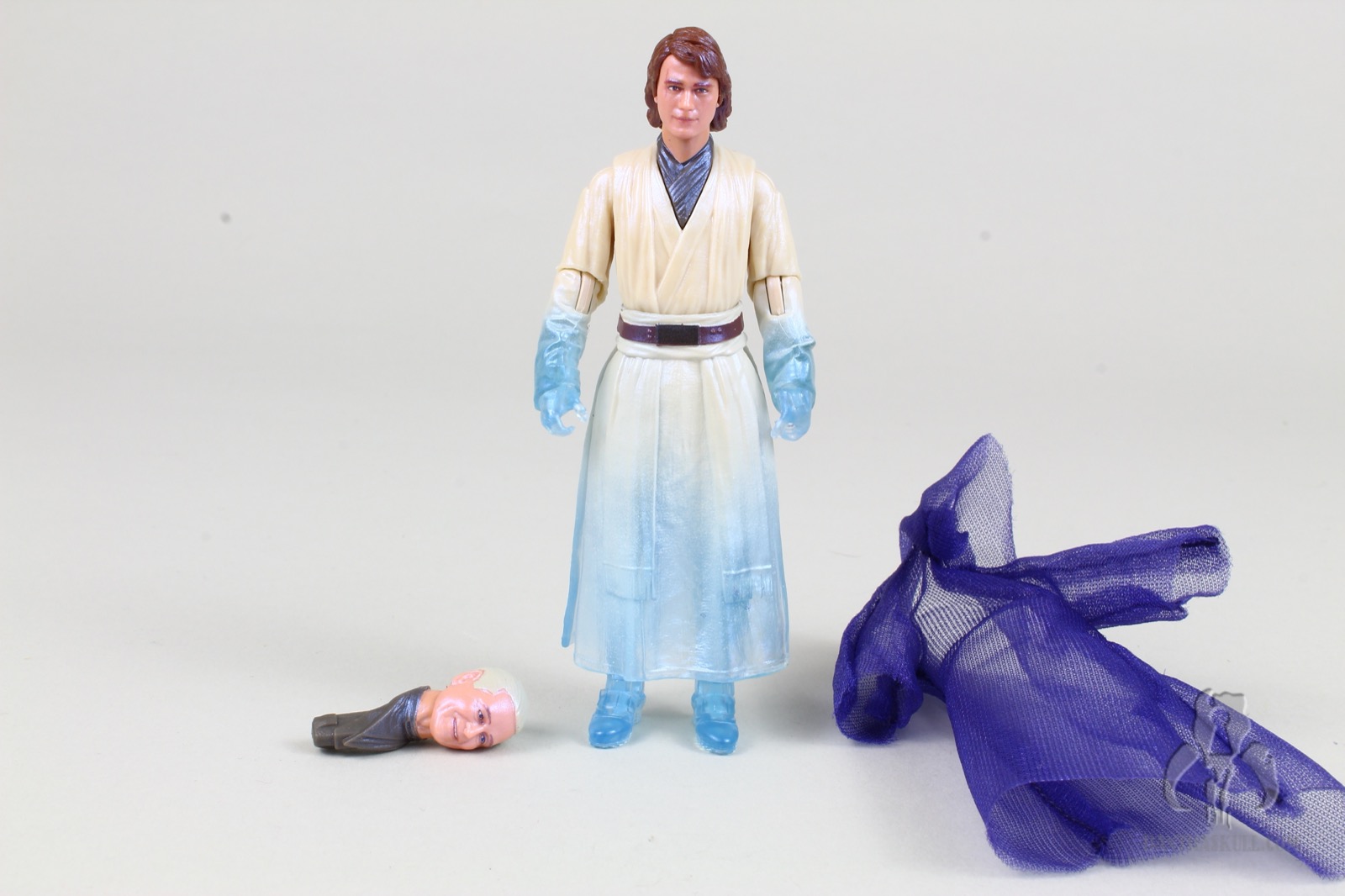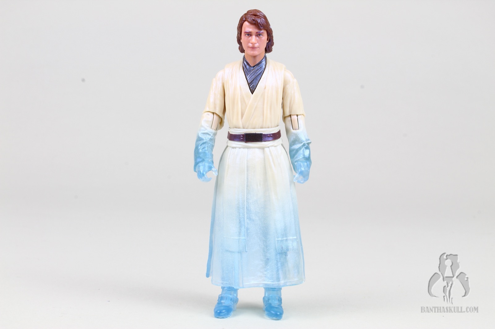 Anakin’s spirit has a convoluted history, of course. The first release was from 1998, as part of the POTF2 (Phase 3) Jedi Spirits Cinema Scene. The 3 figures were essentially statues cast in a translucent plastic and had no paint apps to speak of. My set has a “dusting” of white paint on the figures. I was never sure if this was intentional, or if I got a bad set. But otherwise, the the mini-statues are just solid, and the limited articulation (heads and arms) seem to be glued in place and I never wanted to test out potential movement for fear of breakage.